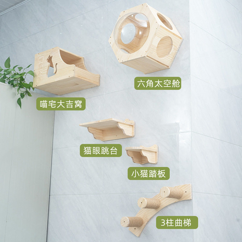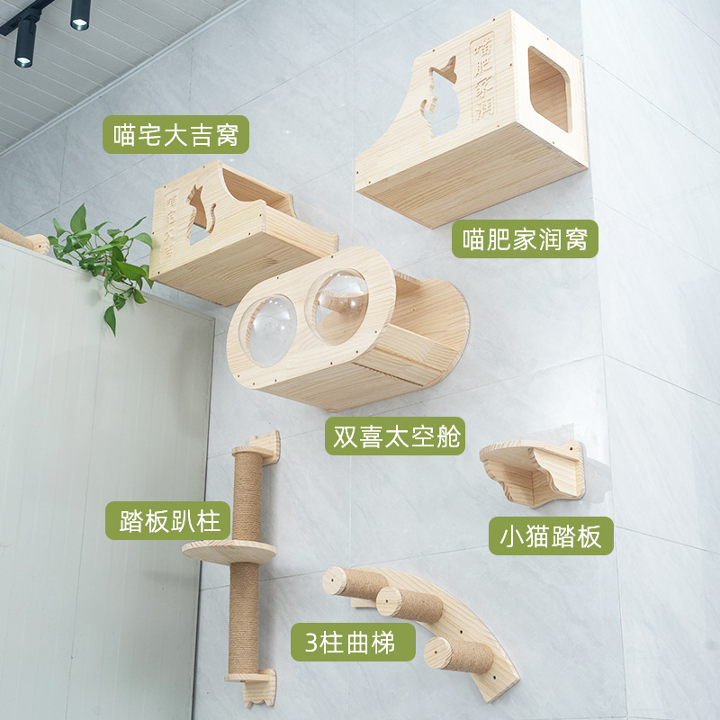 단단한 나무 고양이 벽 고양이 등산 랙 사이 잘삼 벽걸이 형 원통형 고양이 등반 랙 통합 등산 사다리 발판스토어 가기