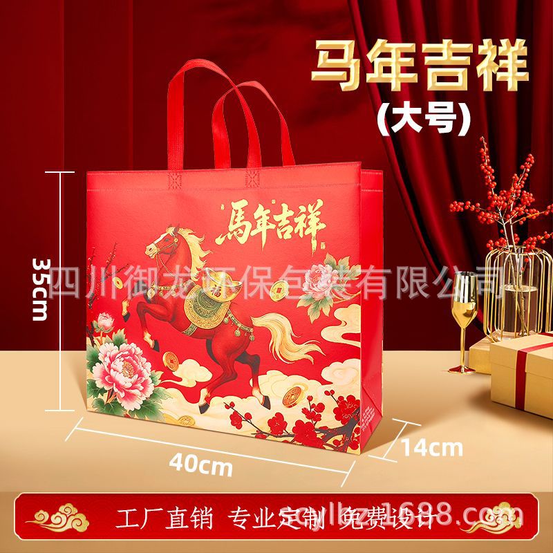 2026년 새해 말년용 부직포 선물 가방, 로고 인쇄, 설날 포장, 라미네이팅 처리된 핸드백, 도매 및 추가 인쇄