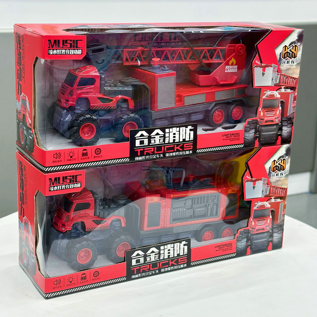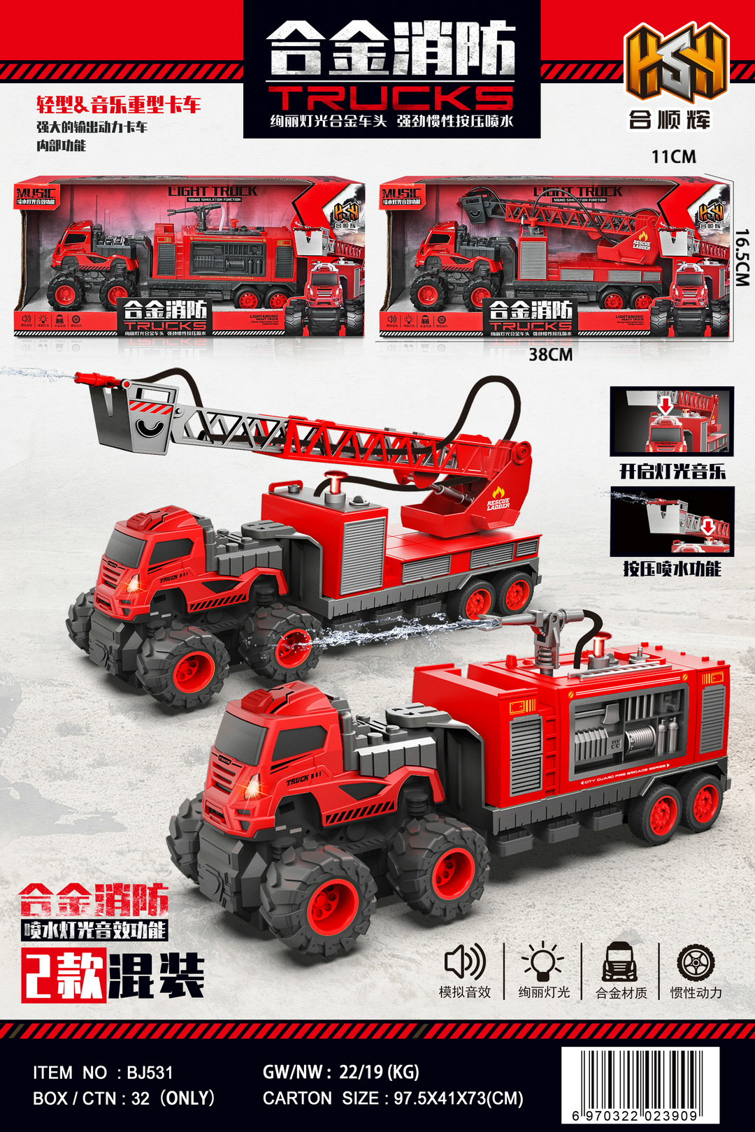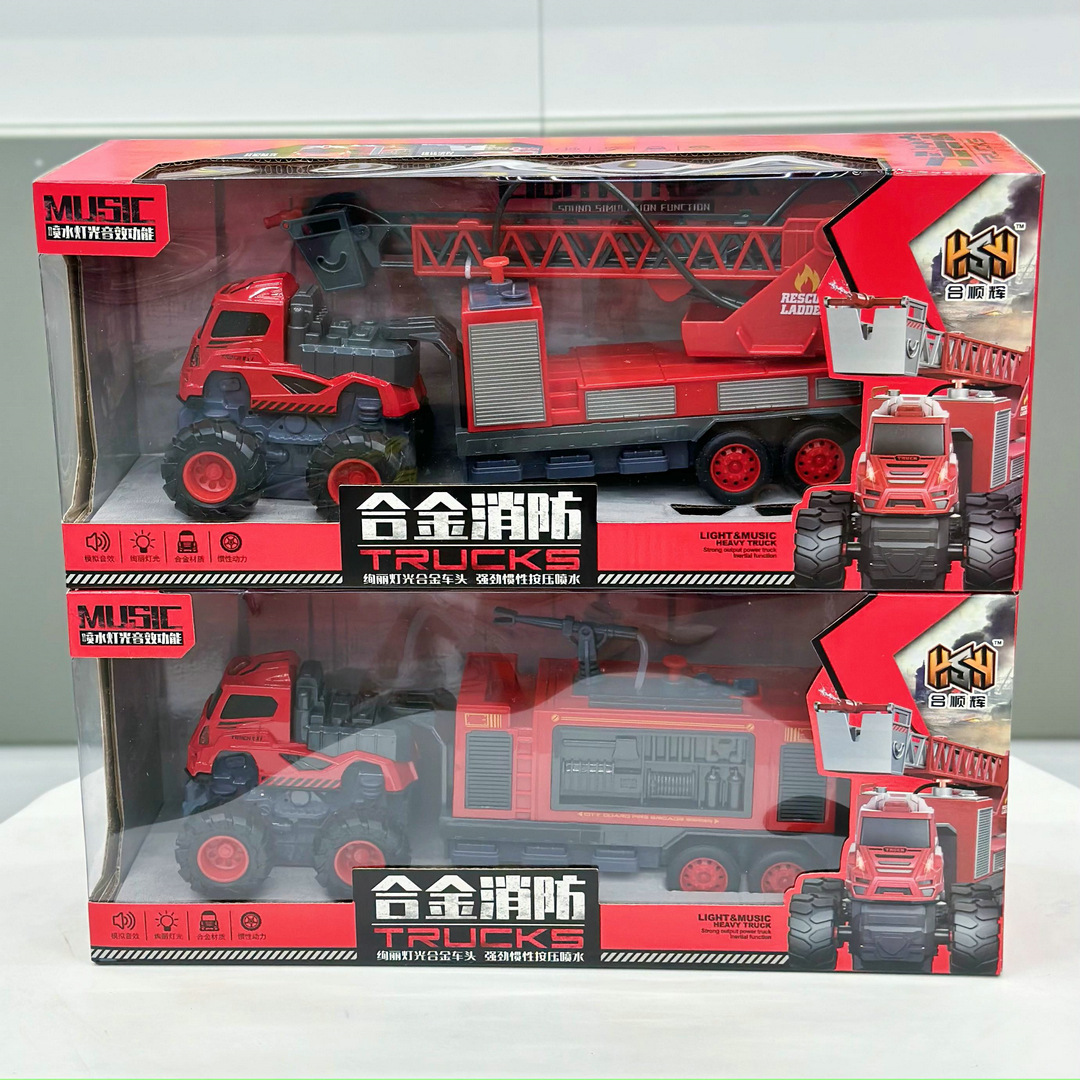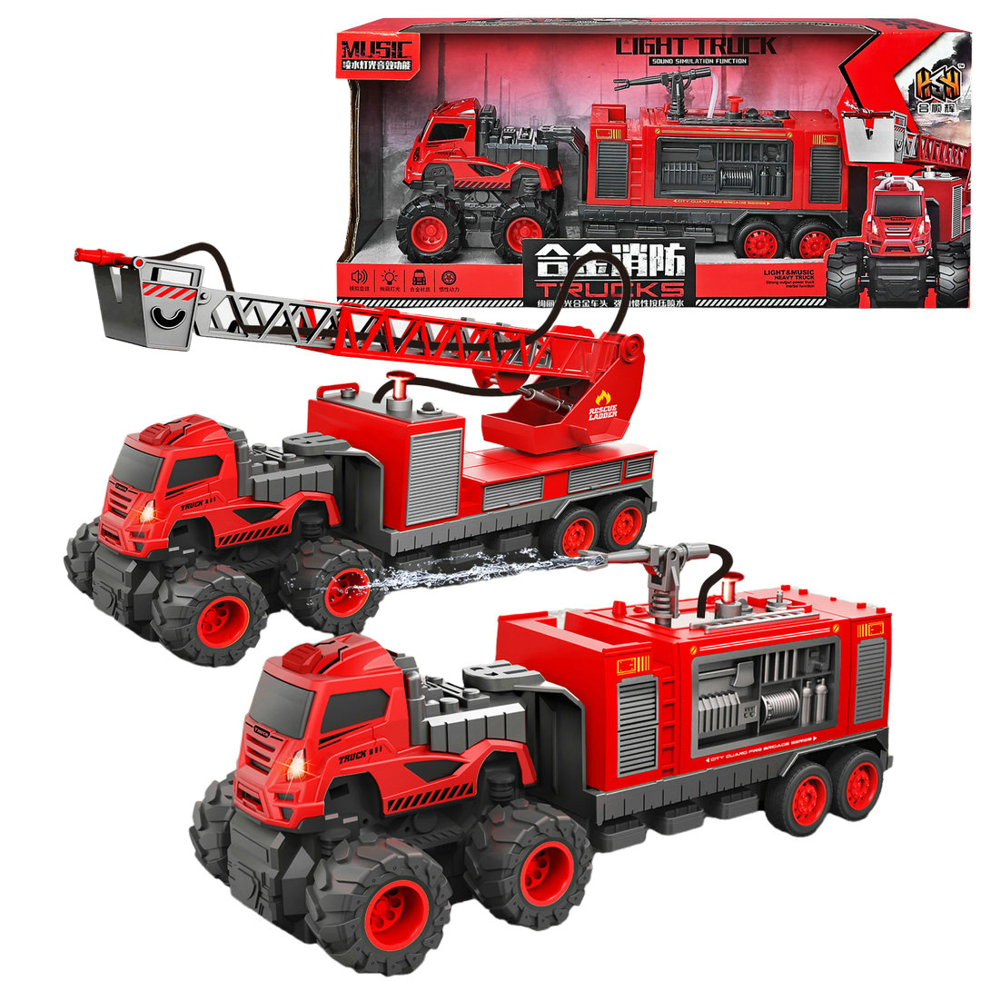 합금 물 스프레이 음악 관성 소방차 531 소년 사다리 자동차 모델 부모-자식 상호 작용 어린이 장난감 도매스토어 가기