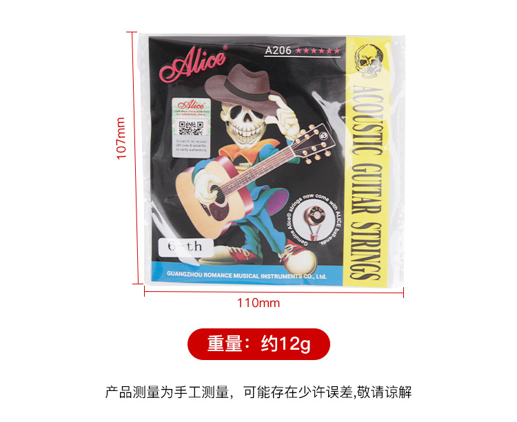 정품 앨리스 A206 포크 우드 기타 현악기 1 현 23456 현 벌크 스트링 액세서리를 설정스토어 가기