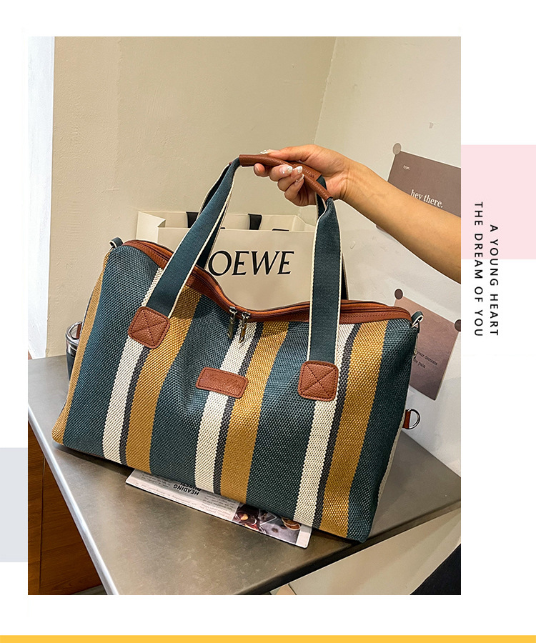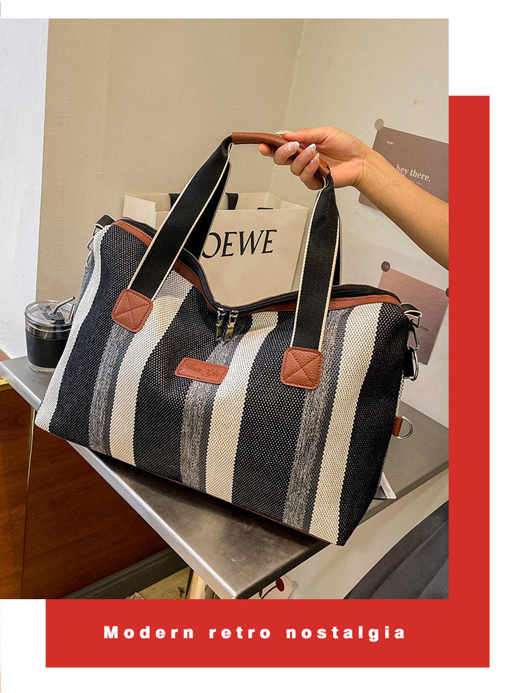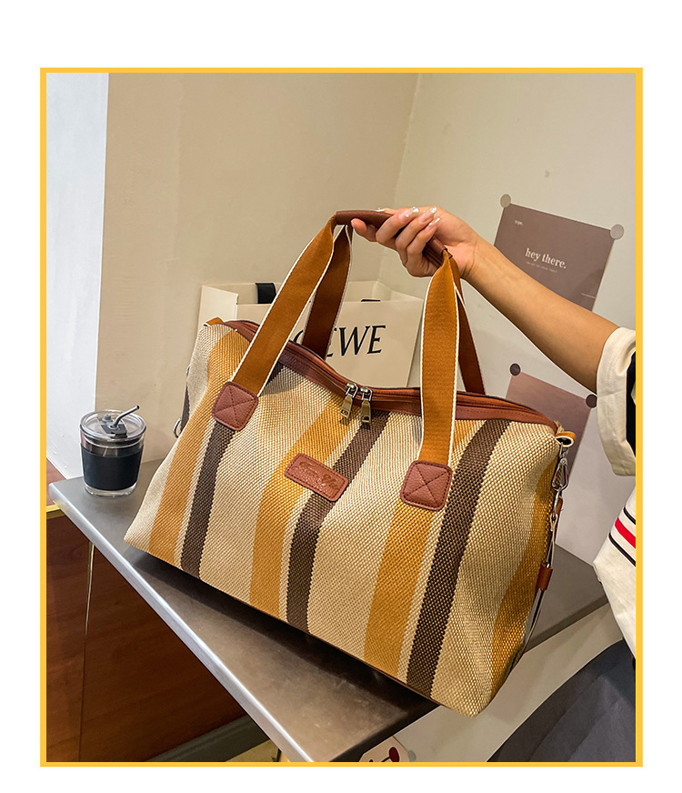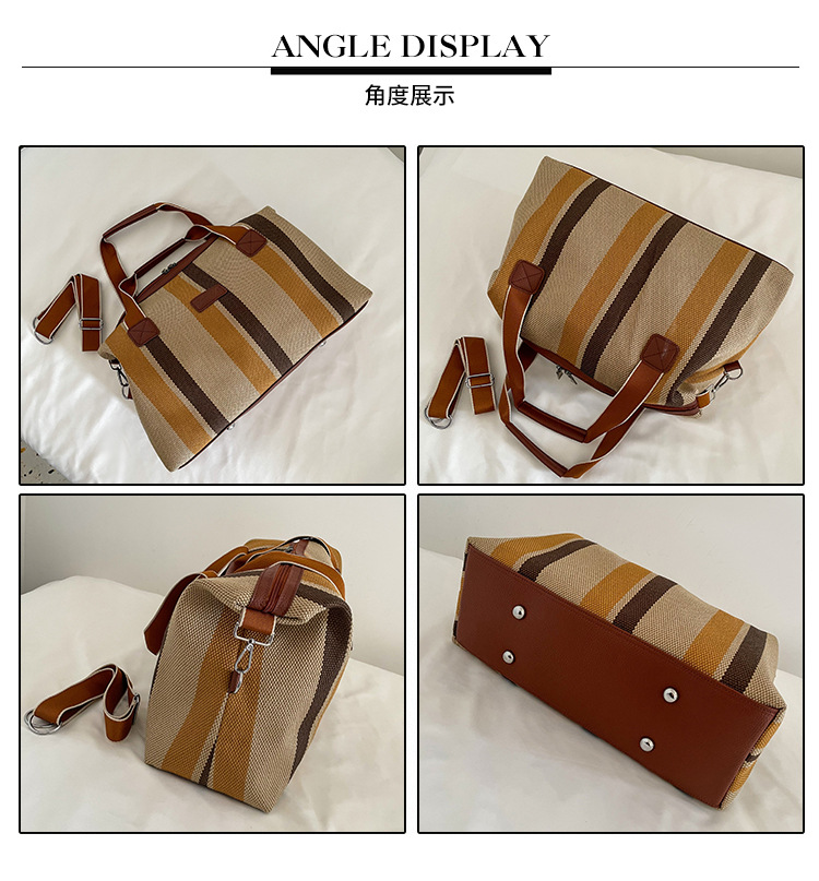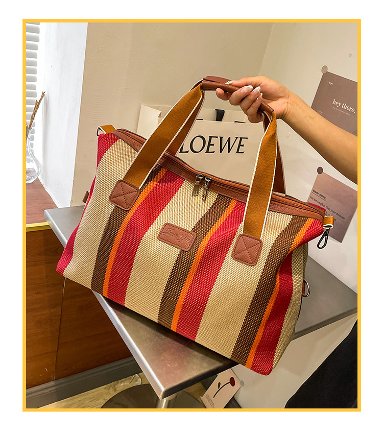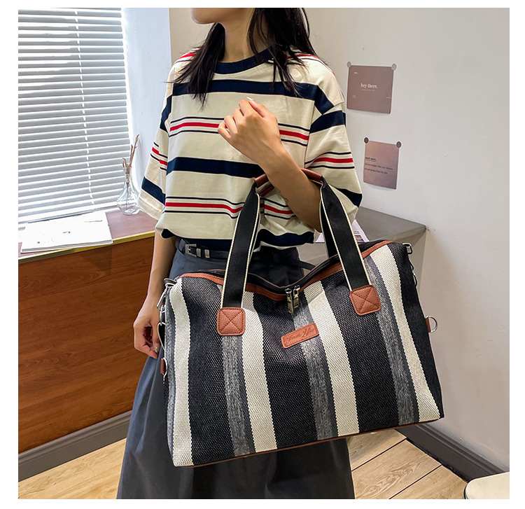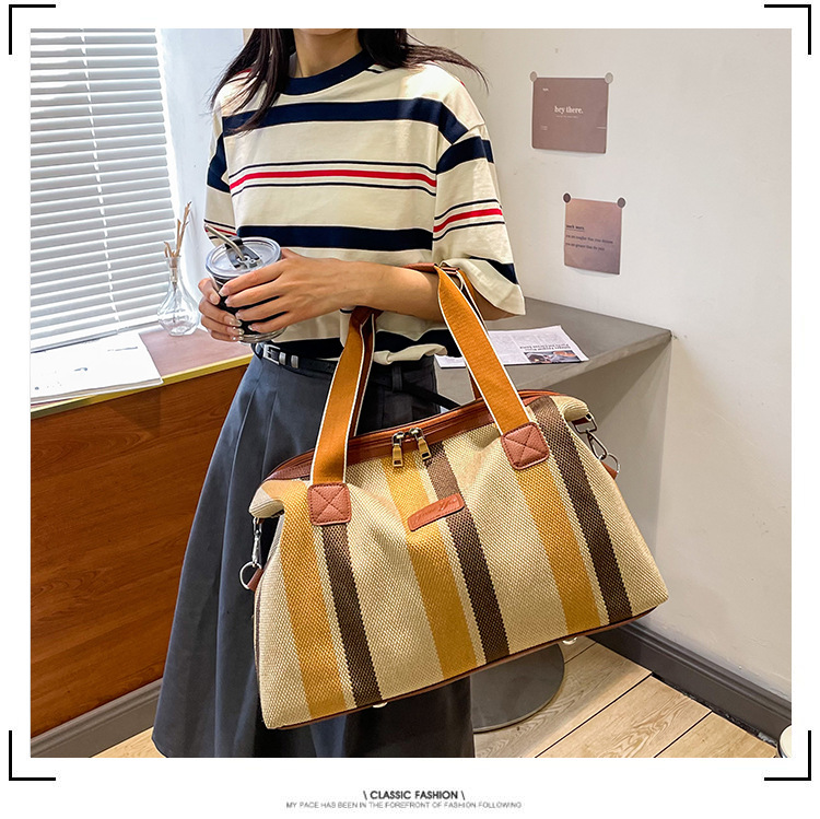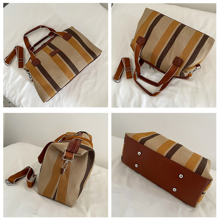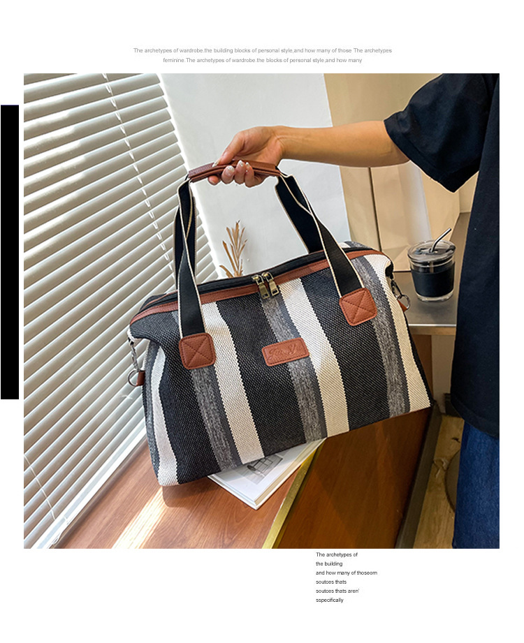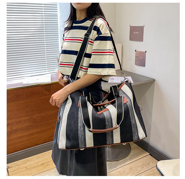 트렌디한 대용량 스트라이프 캔버스 가방 여성용 2023 새로운 패션 통근 휴대용 토트백 숄더 크로스바디 백