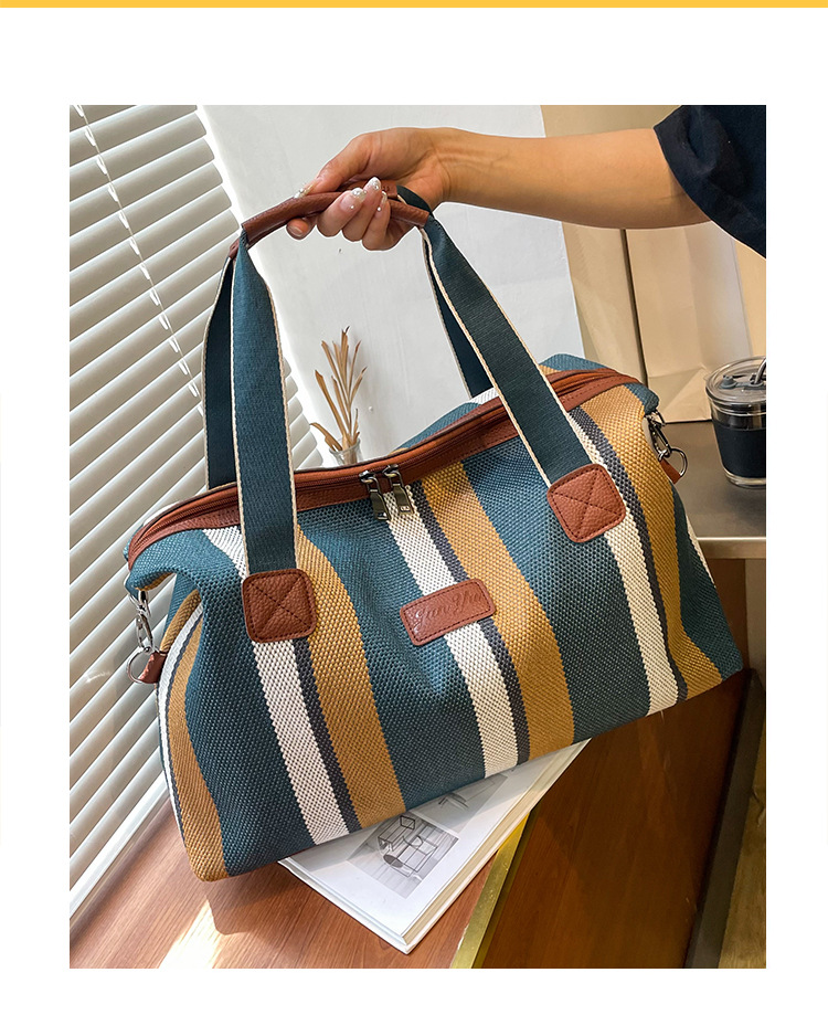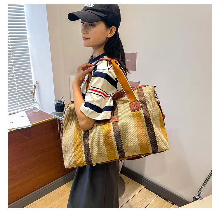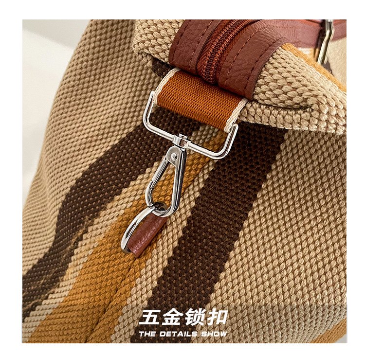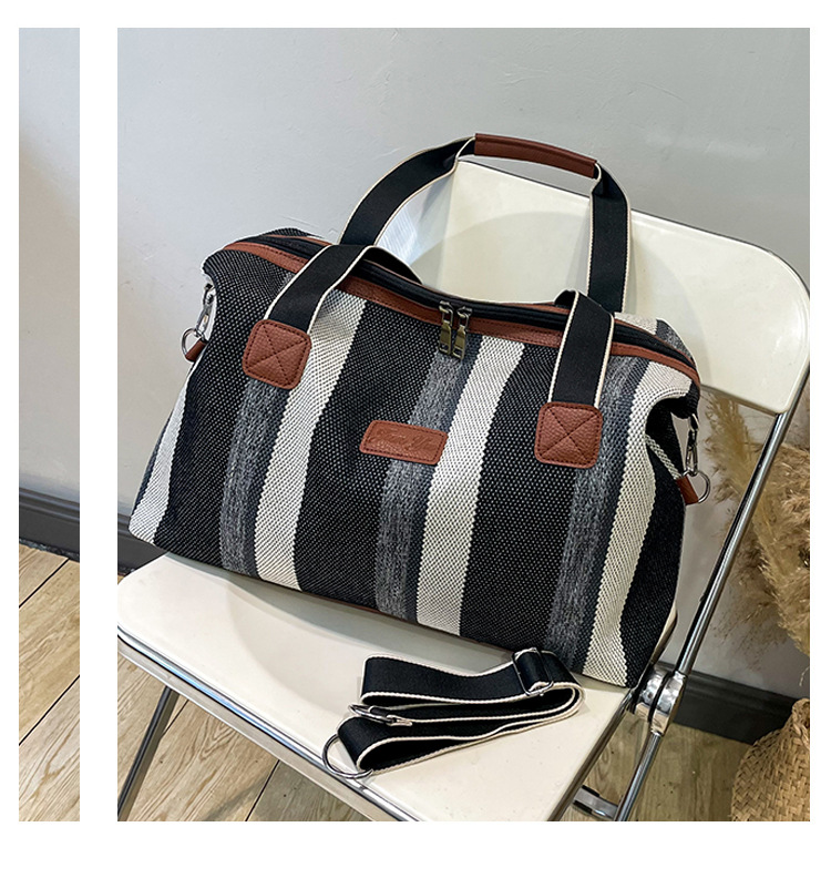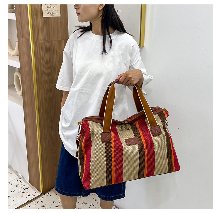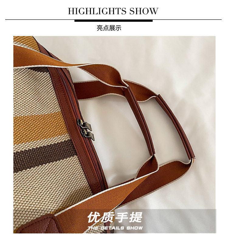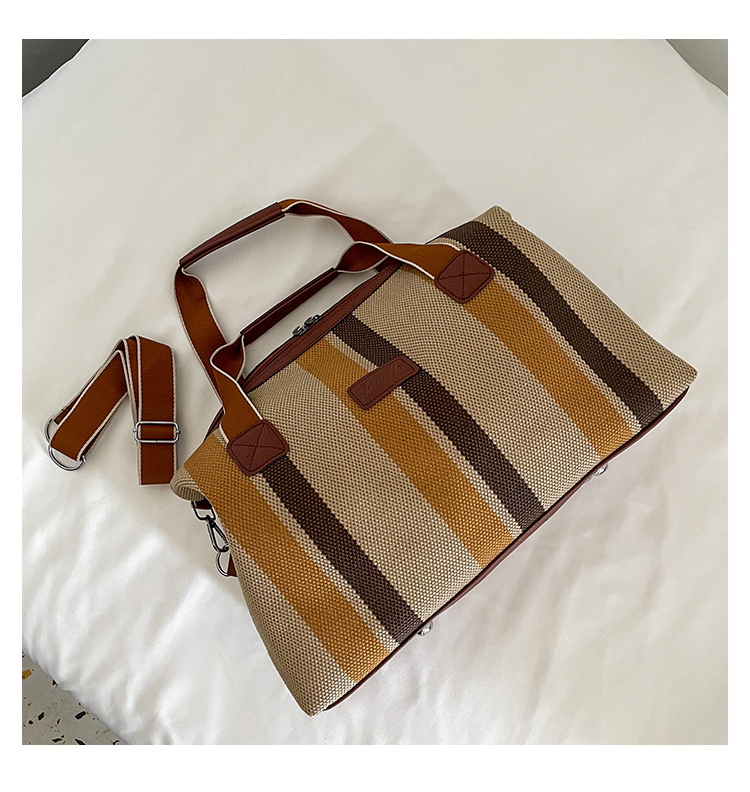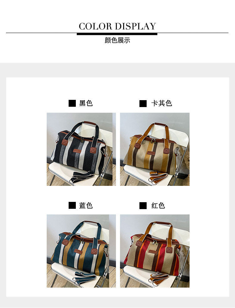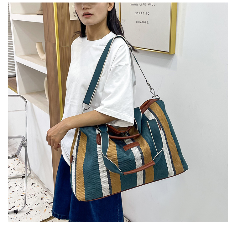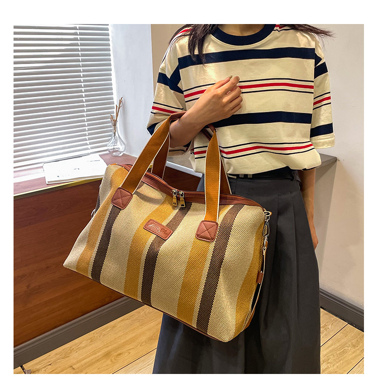 트렌디한 대용량 스트라이프 캔버스 가방 여성용 2023 새로운 패션 통근 휴대용 토트백 숄더 크로스바디 백