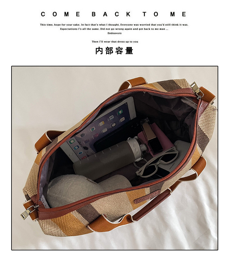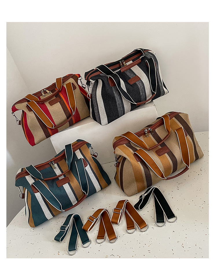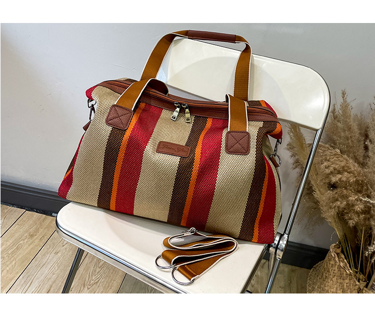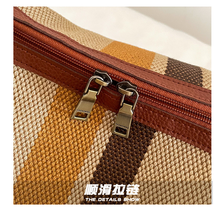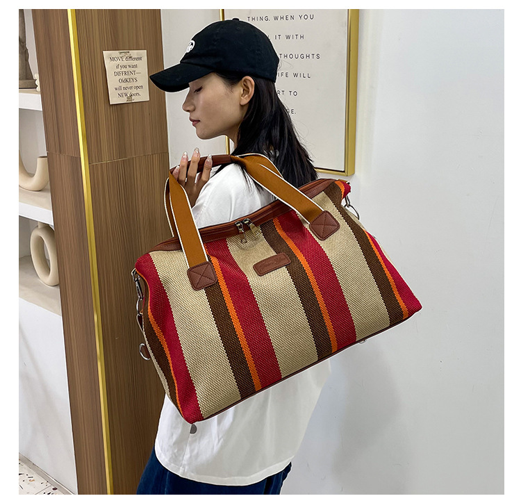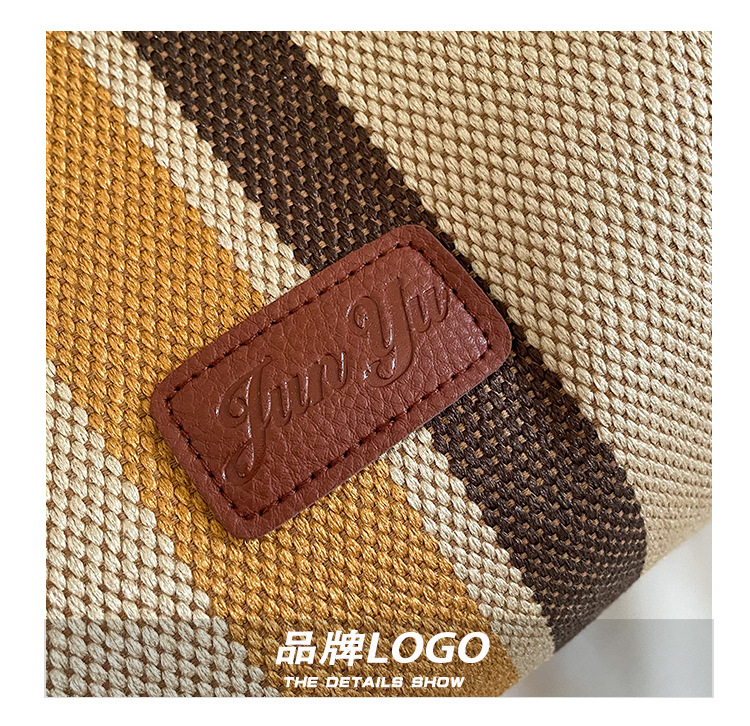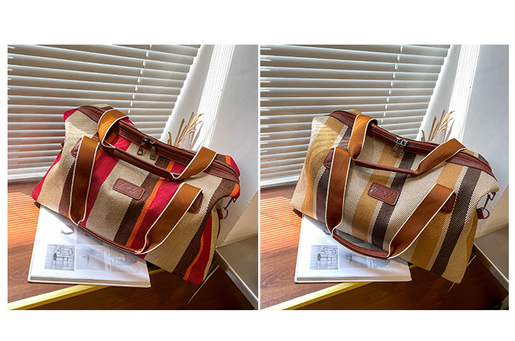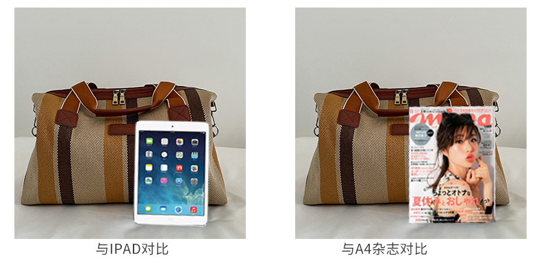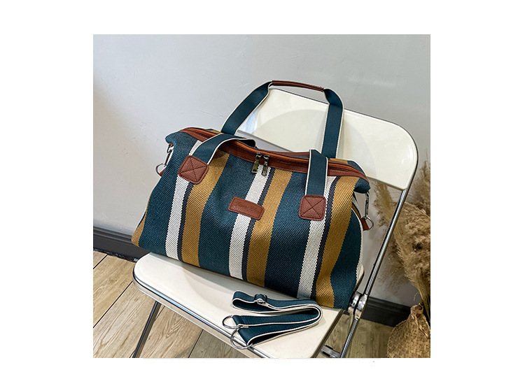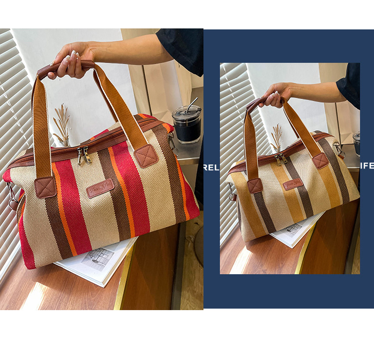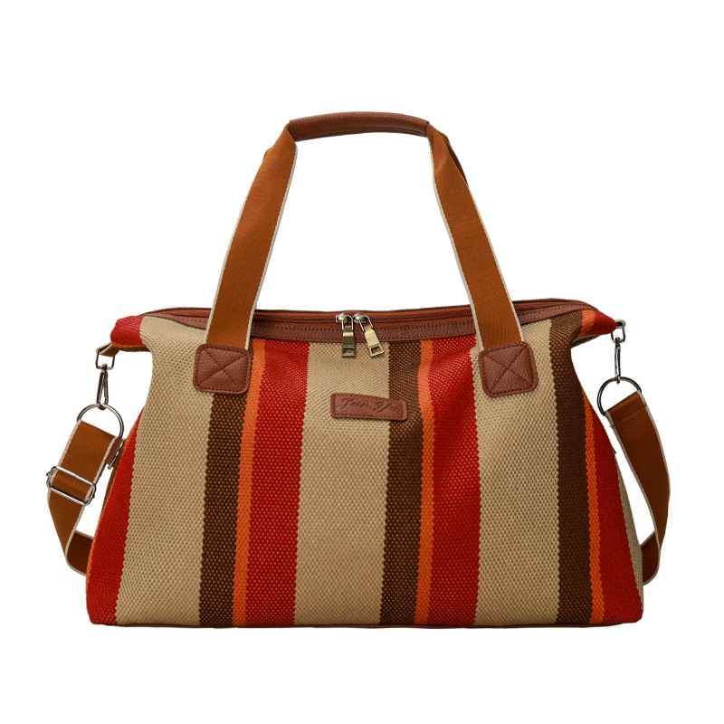 트렌디한 대용량 스트라이프 캔버스 가방 여성용 2023 새로운 패션 통근 휴대용 토트백 숄더 크로스바디 백