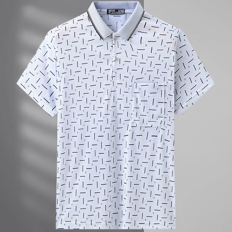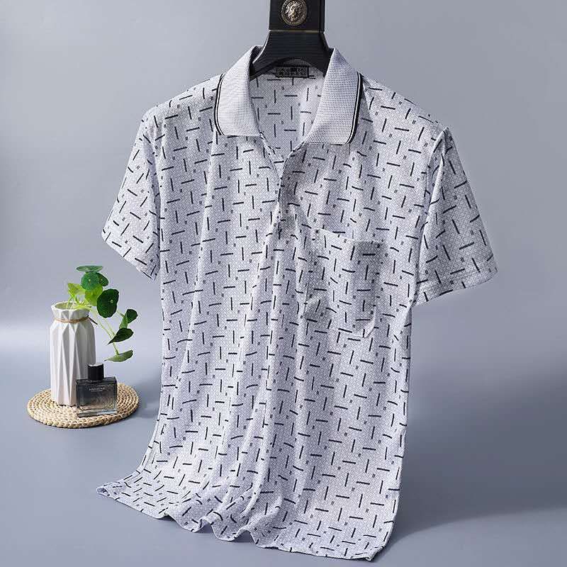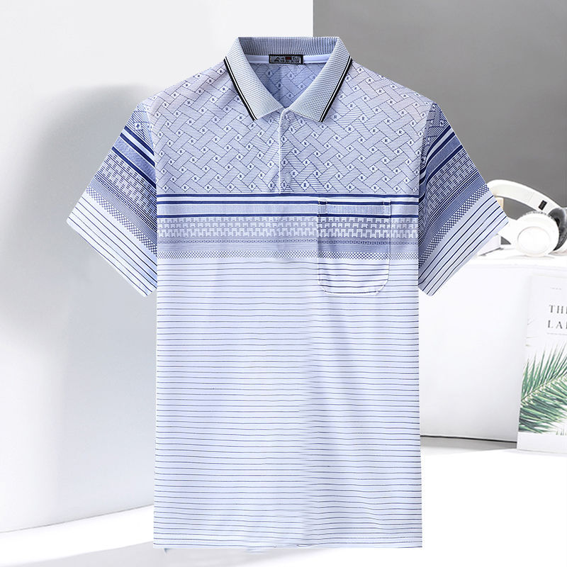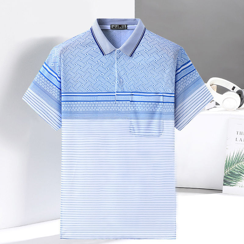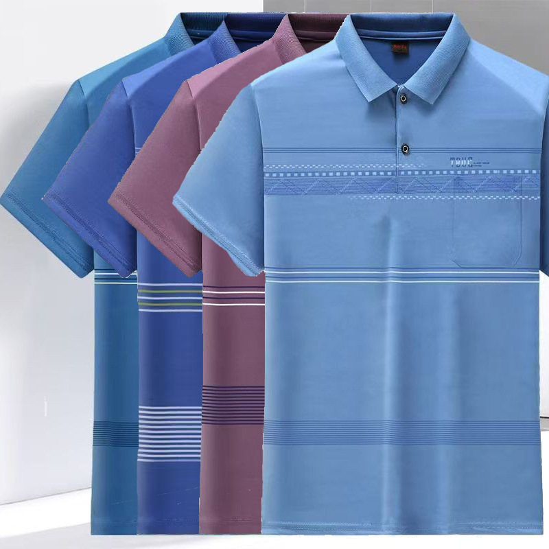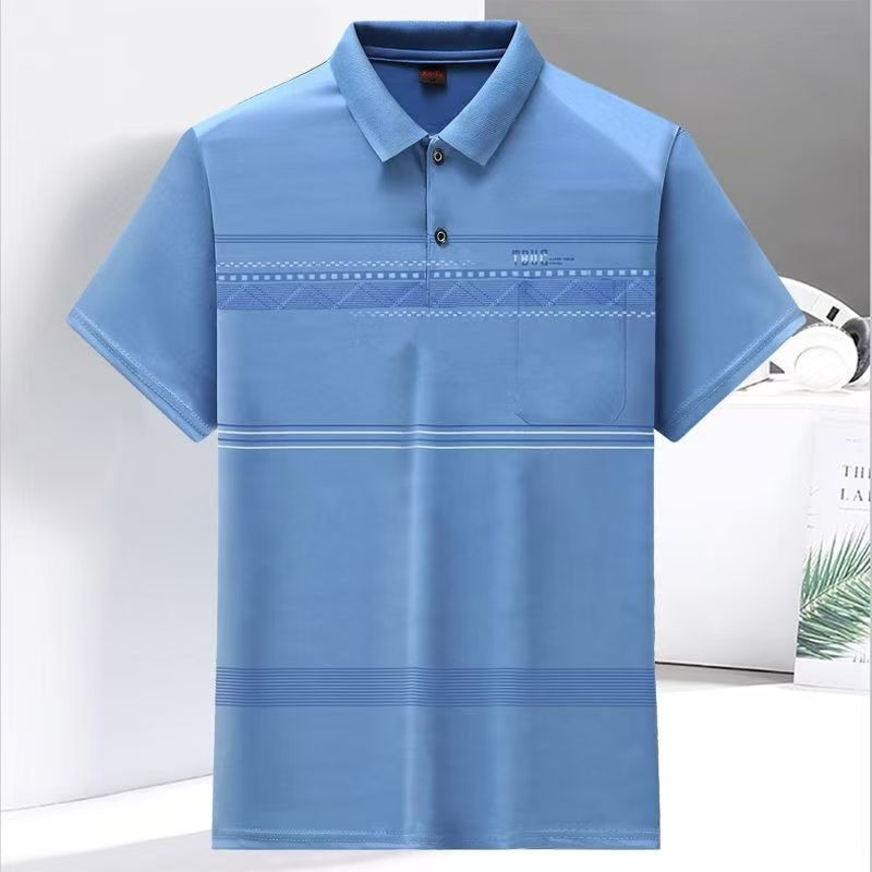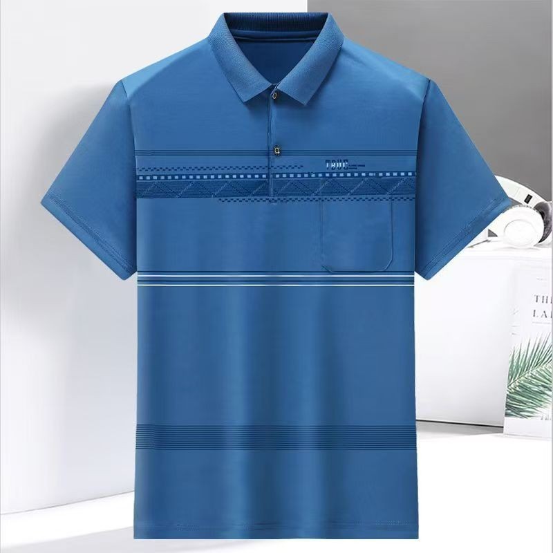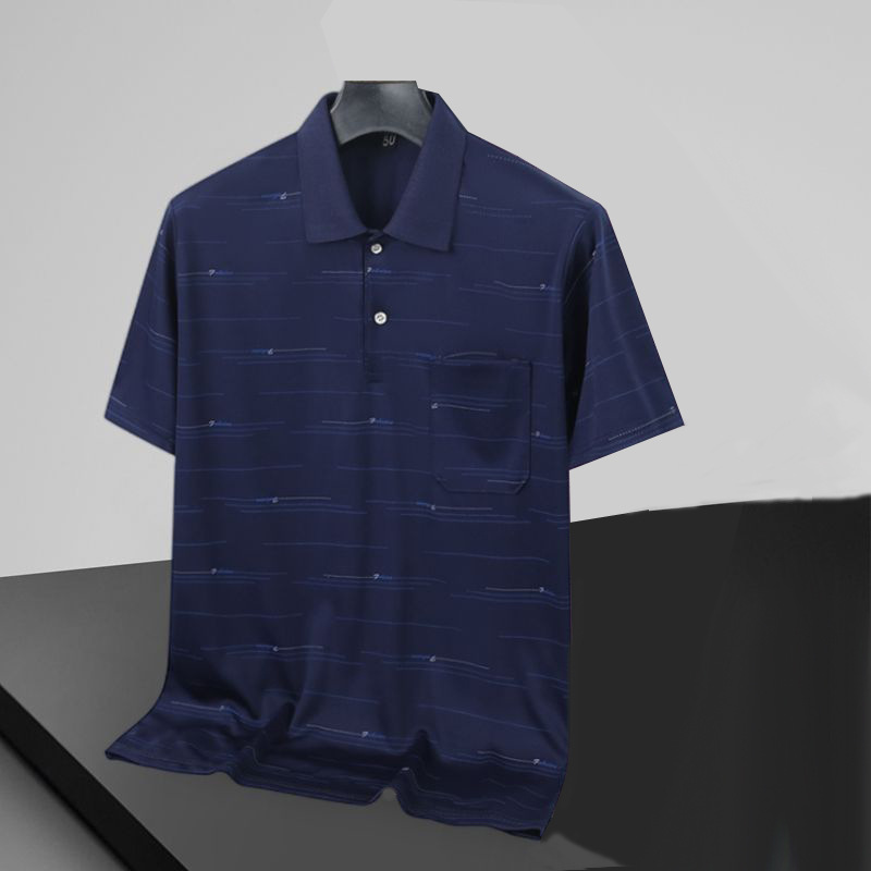 2023 새로운 여름 스타일 반팔 옷깃 중년 아빠 폴로 셔츠 느슨한 모조 얼음 실크 풀오버 노인 셔츠 남성 의류스토어 가기