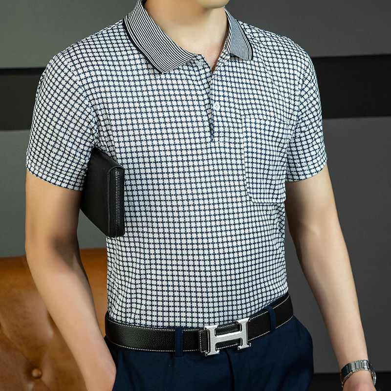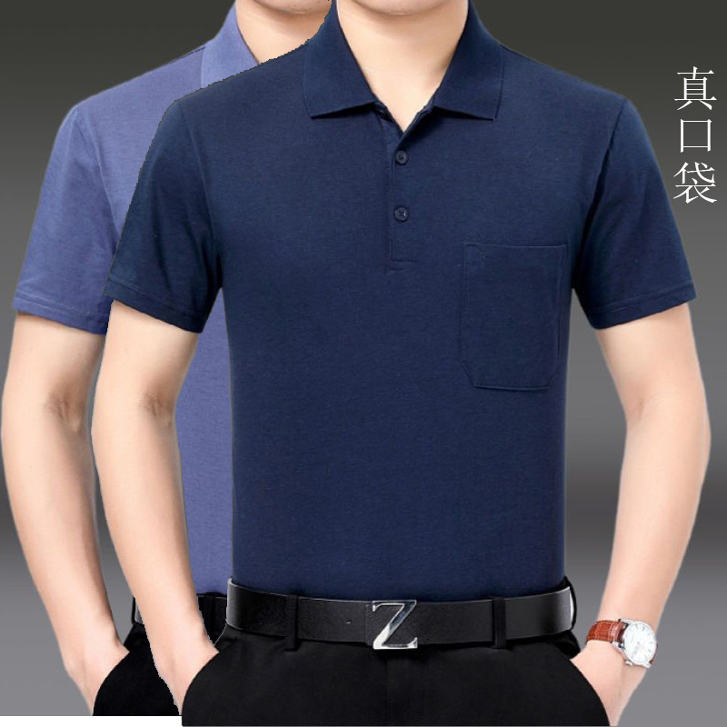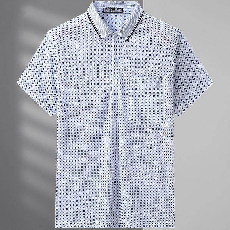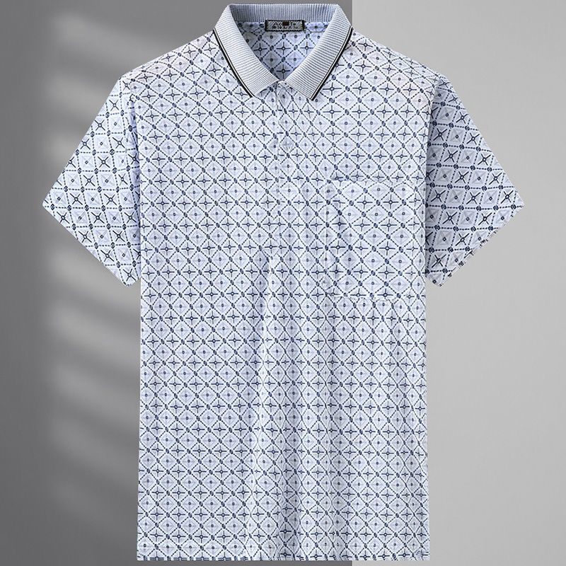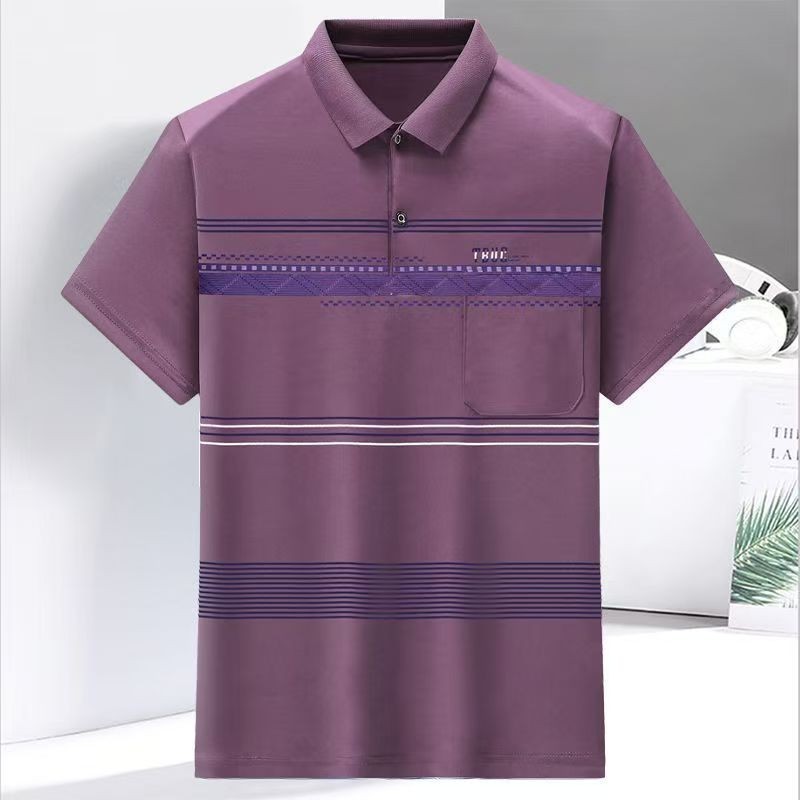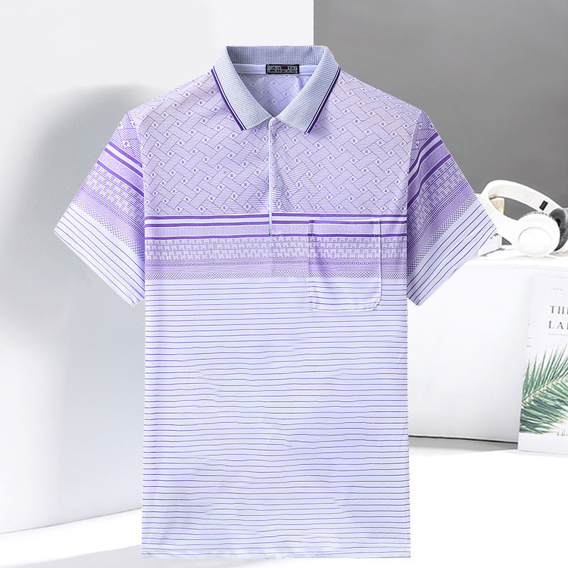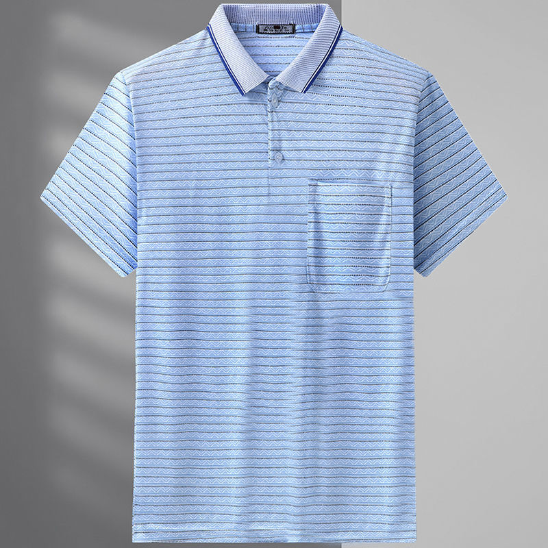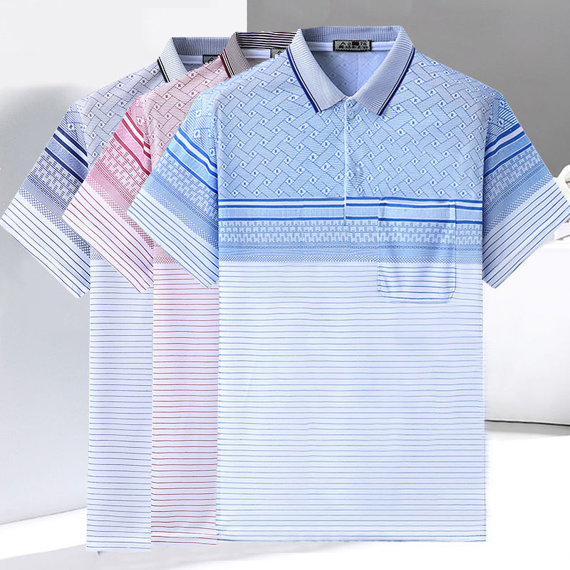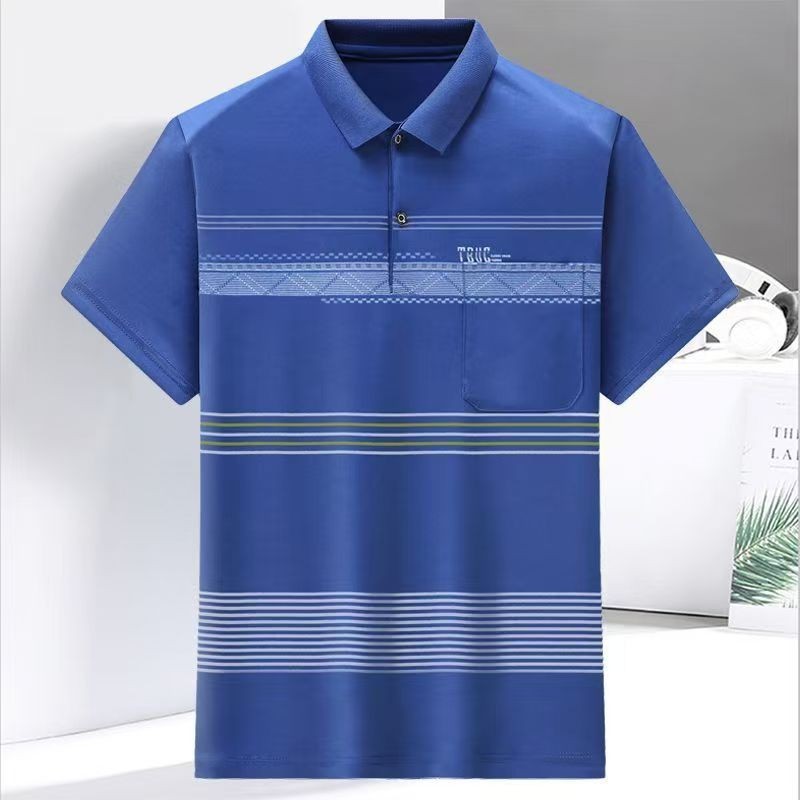 2023 새로운 여름 스타일 반팔 옷깃 중년 아빠 폴로 셔츠 느슨한 모조 얼음 실크 풀오버 노인 셔츠 남성 의류스토어 가기