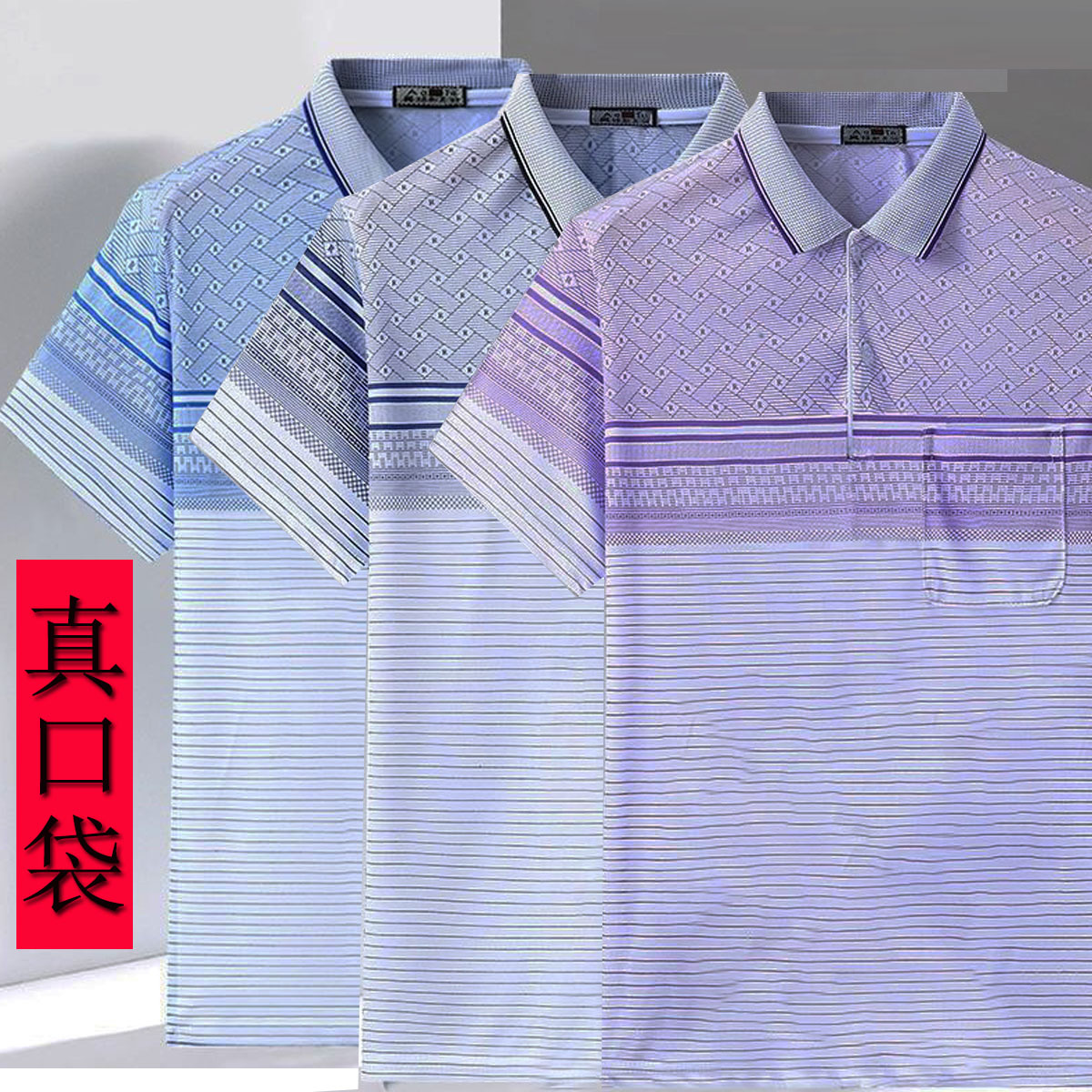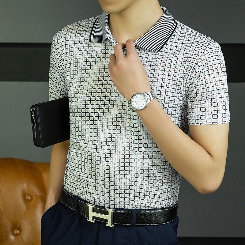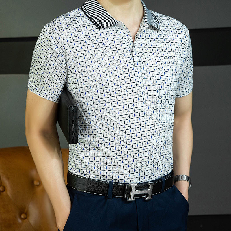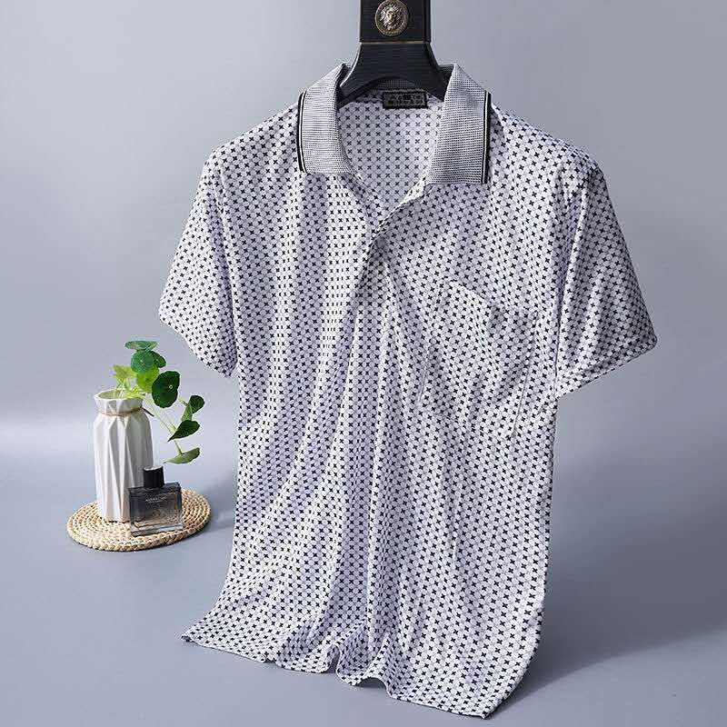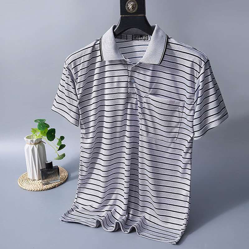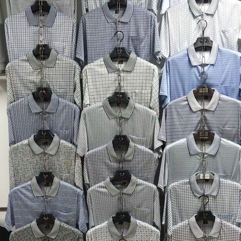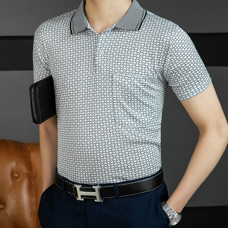 2023 새로운 여름 스타일 반팔 옷깃 중년 아빠 폴로 셔츠 느슨한 모조 얼음 실크 풀오버 노인 셔츠 남성 의류스토어 가기