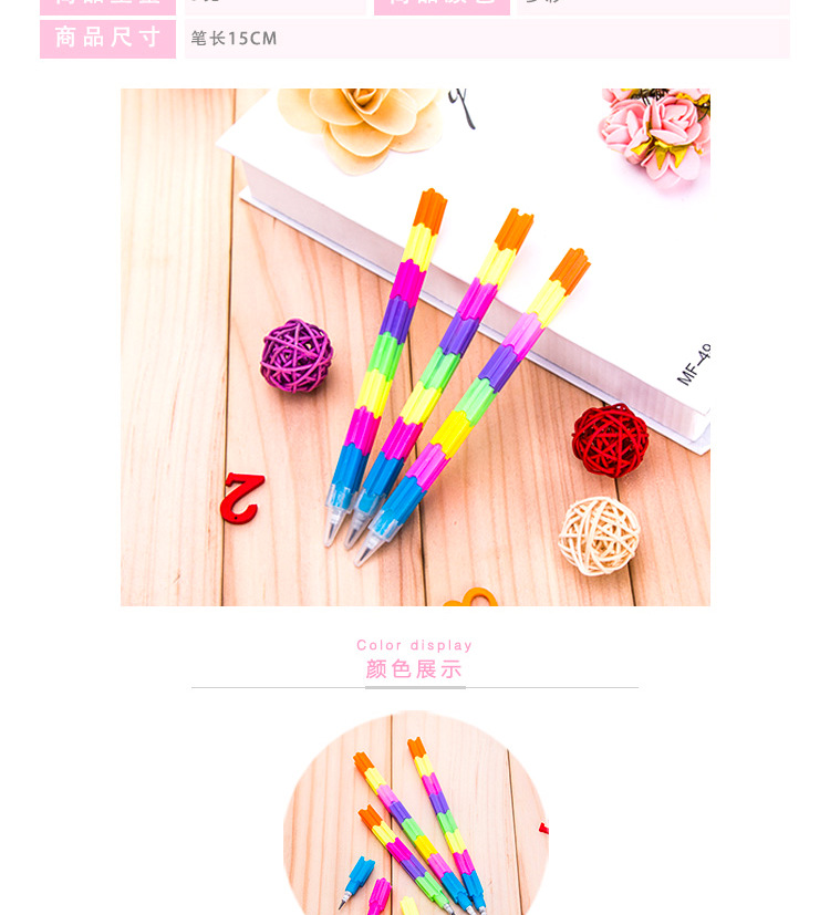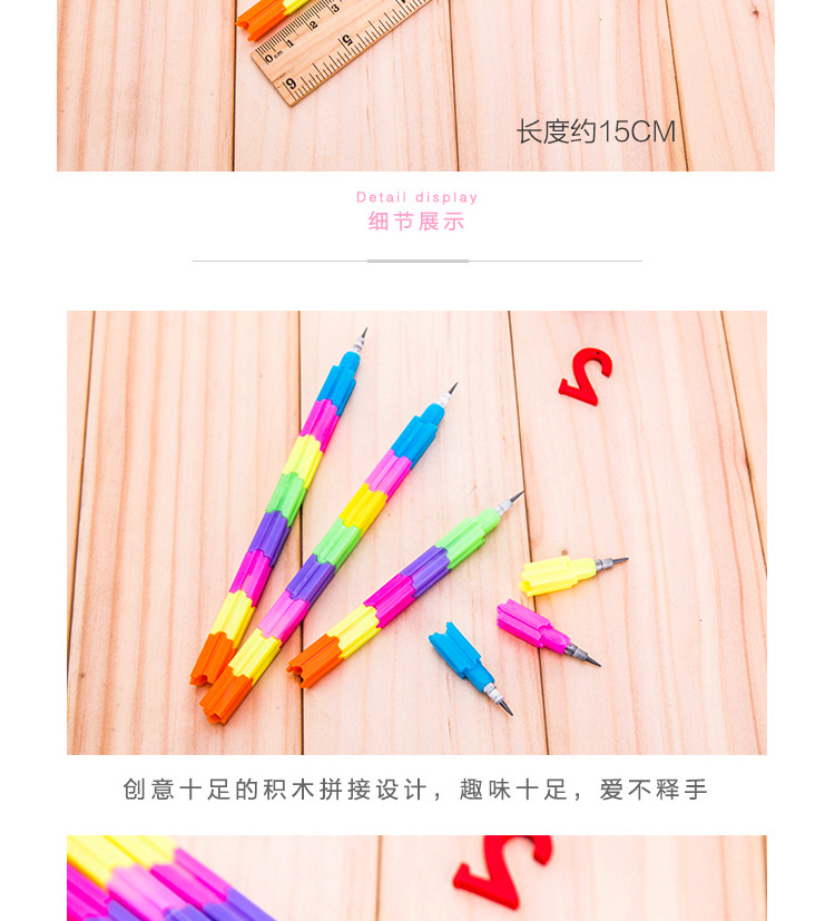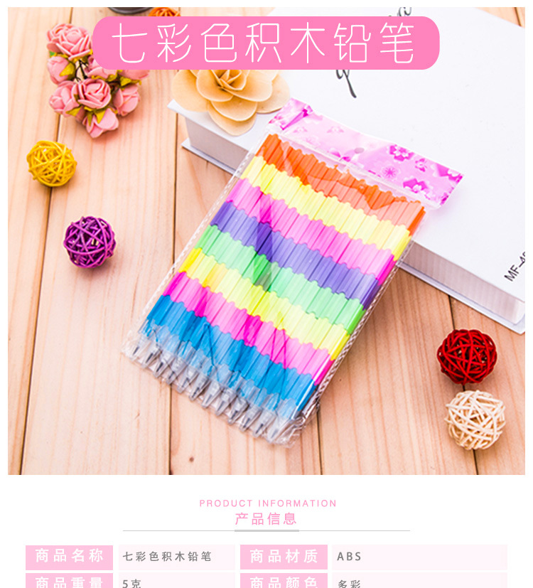 공장 직판 어린이용 재미있는 무지개 블록 연필 초등학생 조립식 연필 HB펜 유치원 필기용 펜스토어 가기