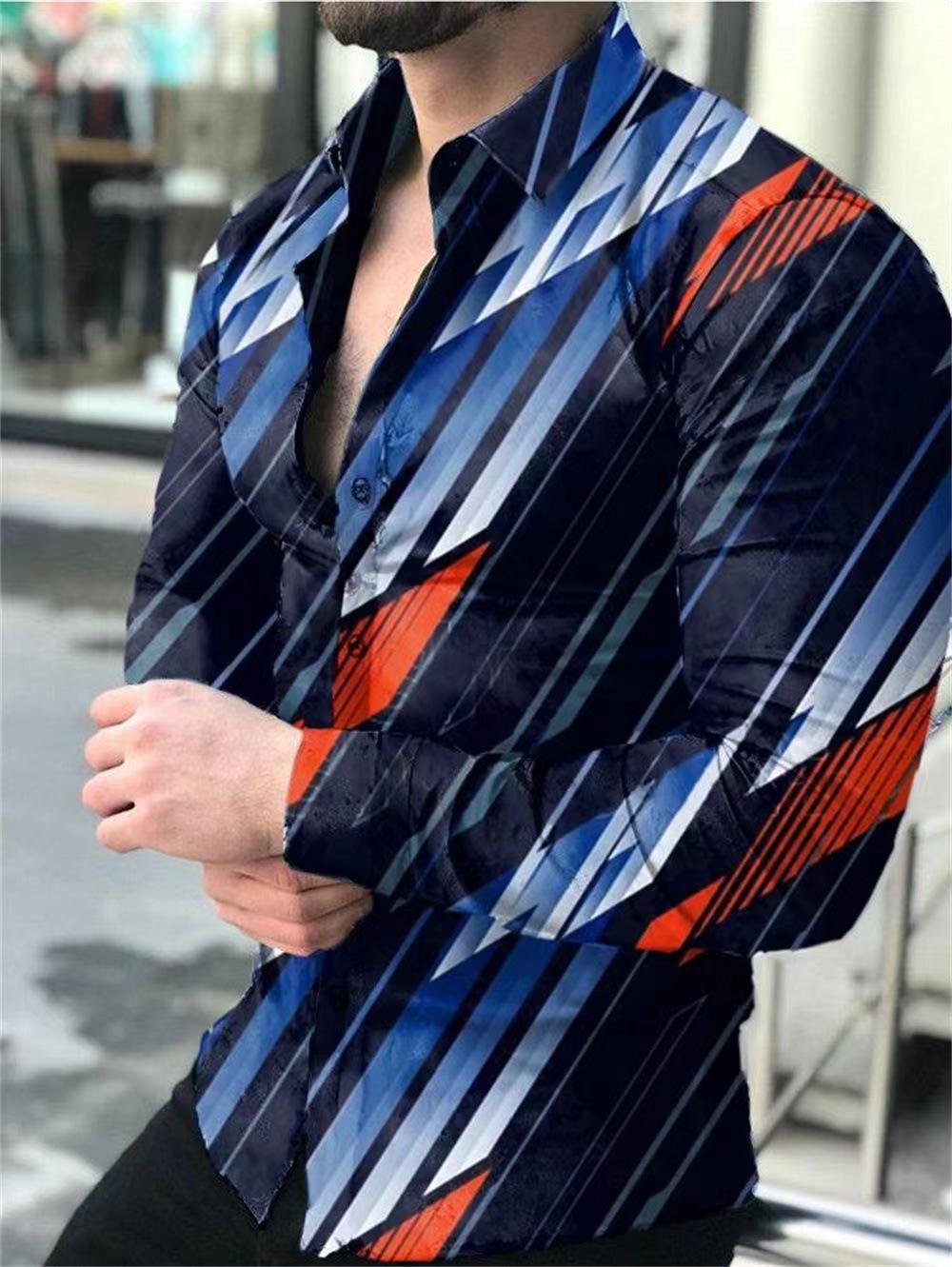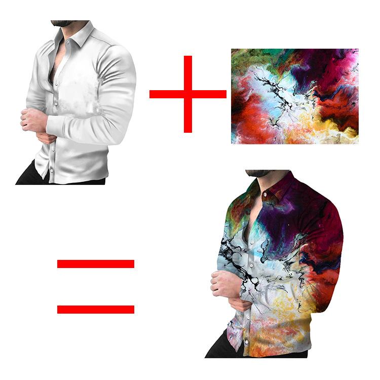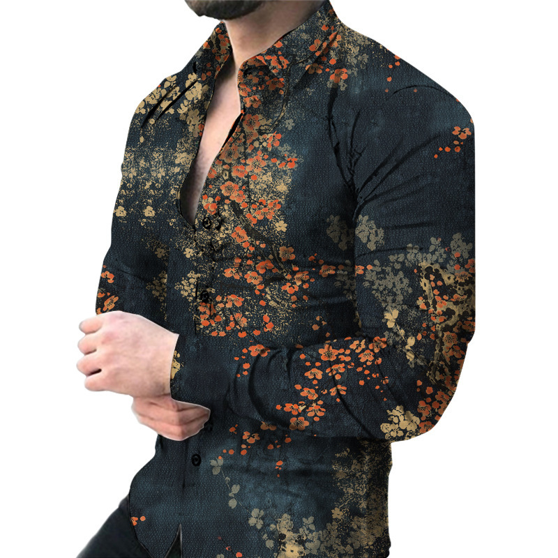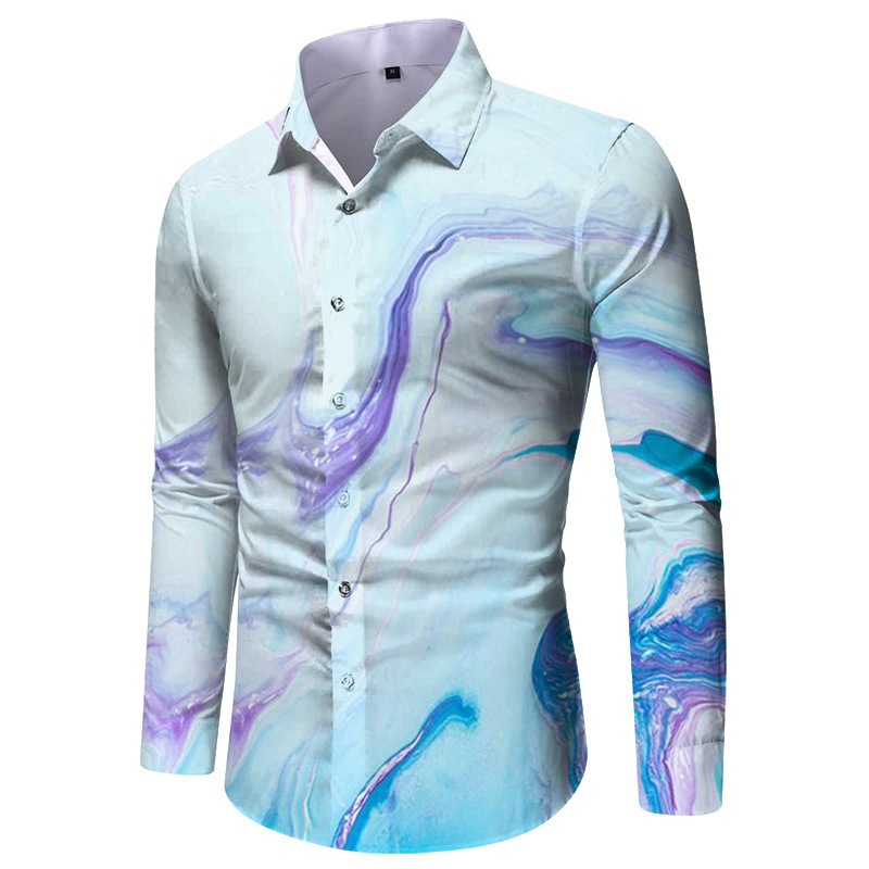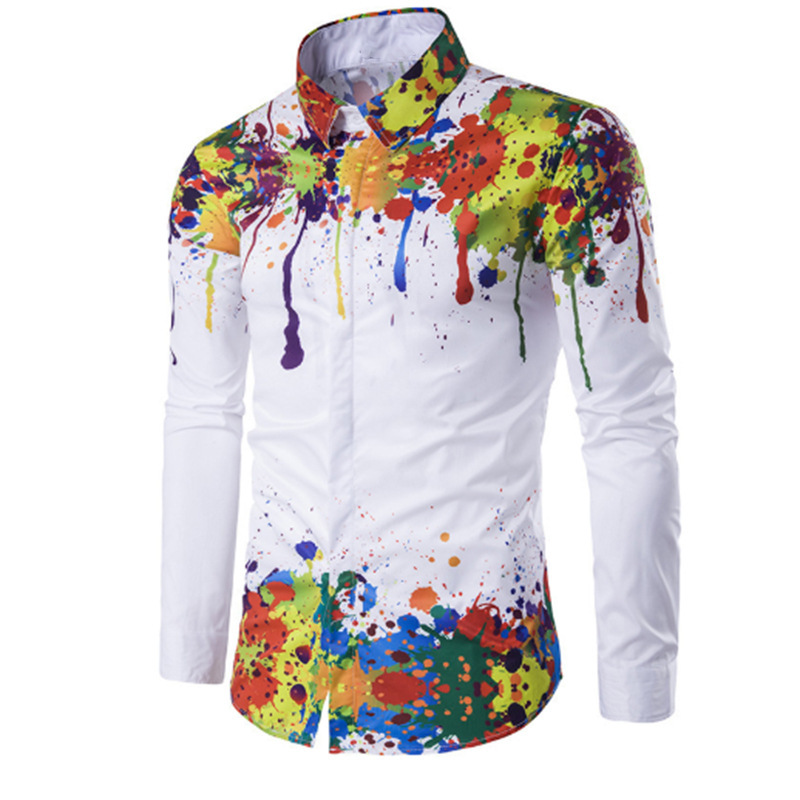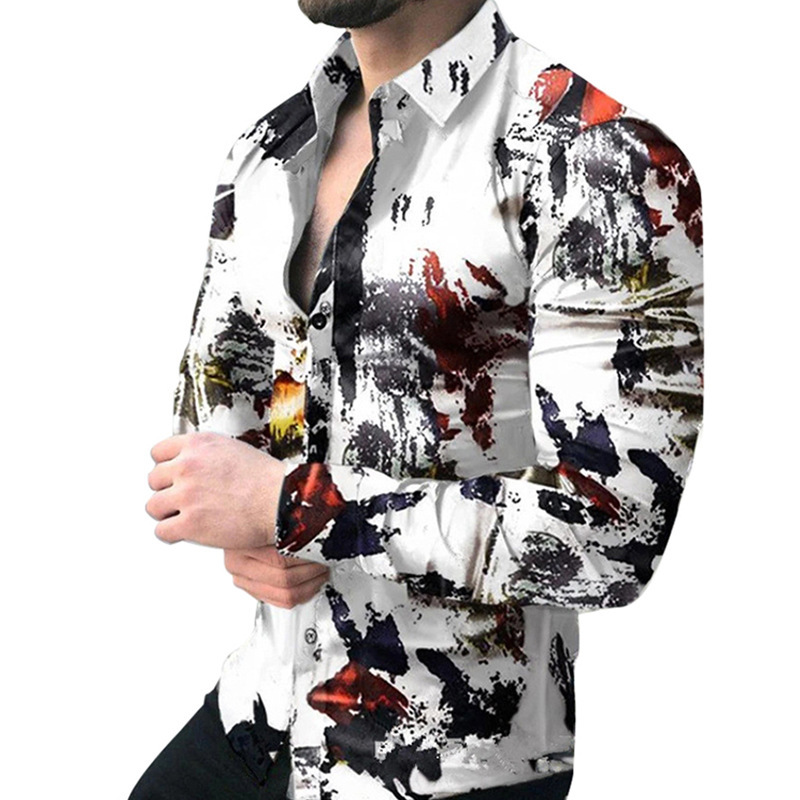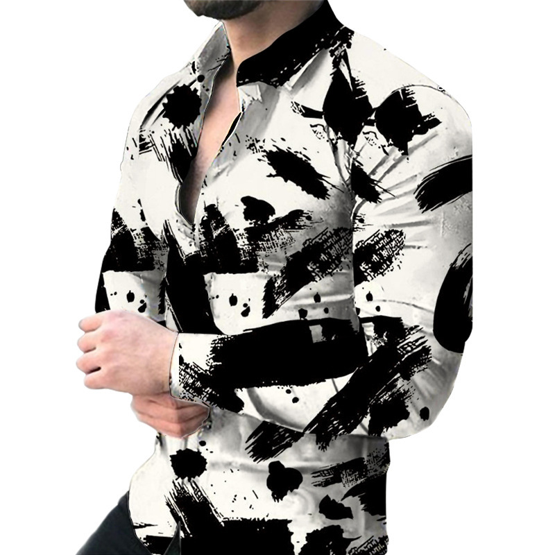 외국 무역 스타일 봄 남자의 4 면 탄성 성격 스플래시 잉크 3D 긴 소매 셔츠 남자의 플러스 사이즈 패션 캐주얼 셔츠 유행스토어 가기