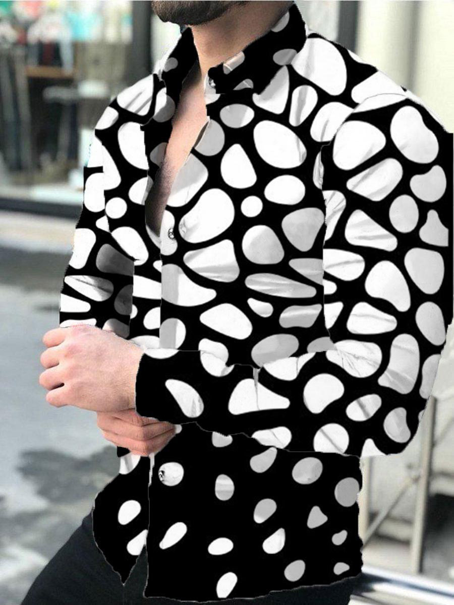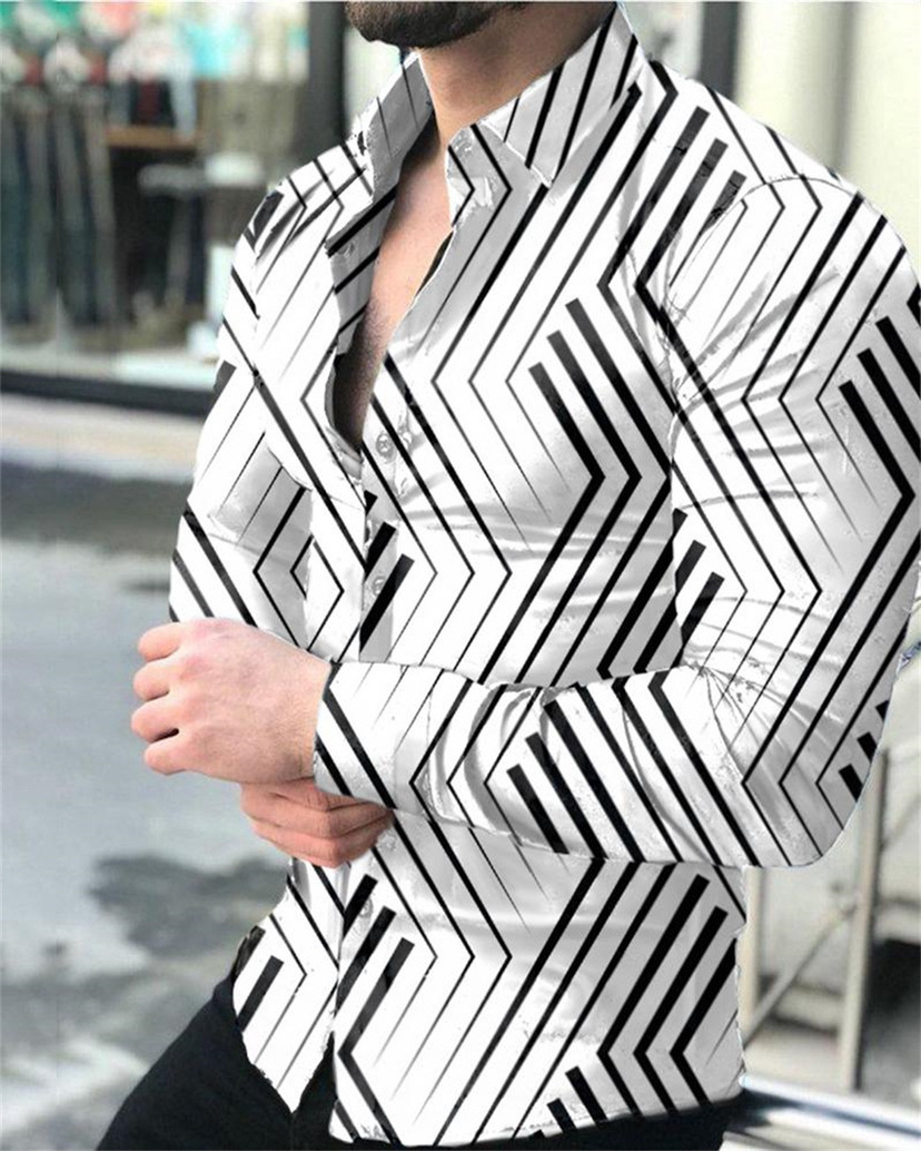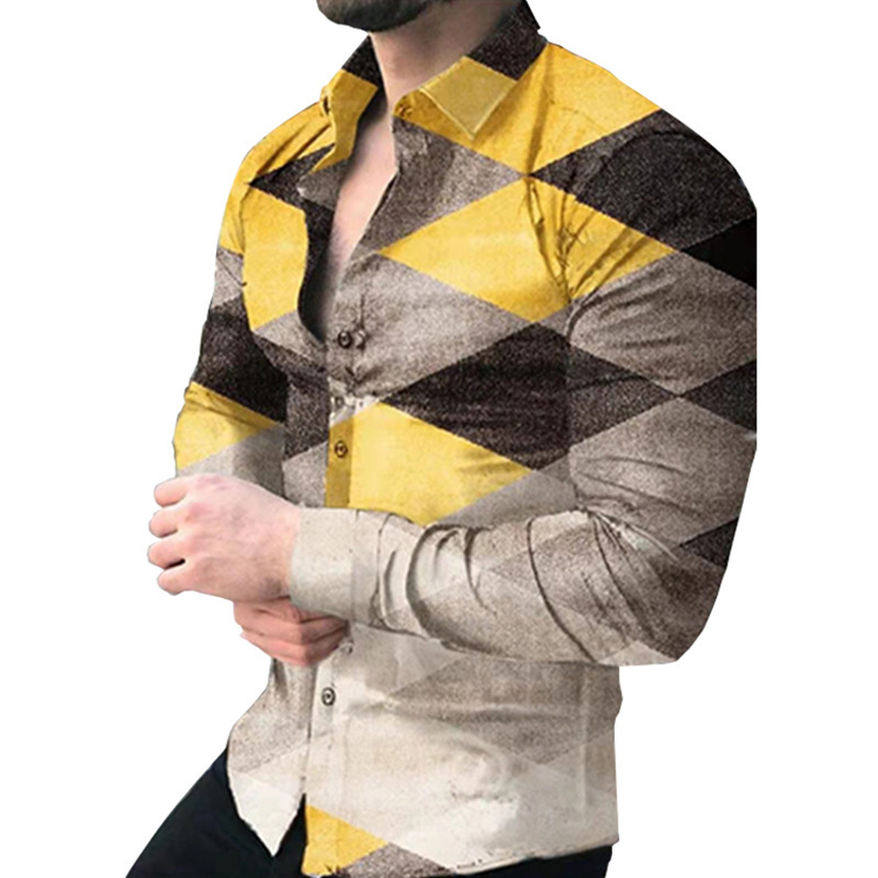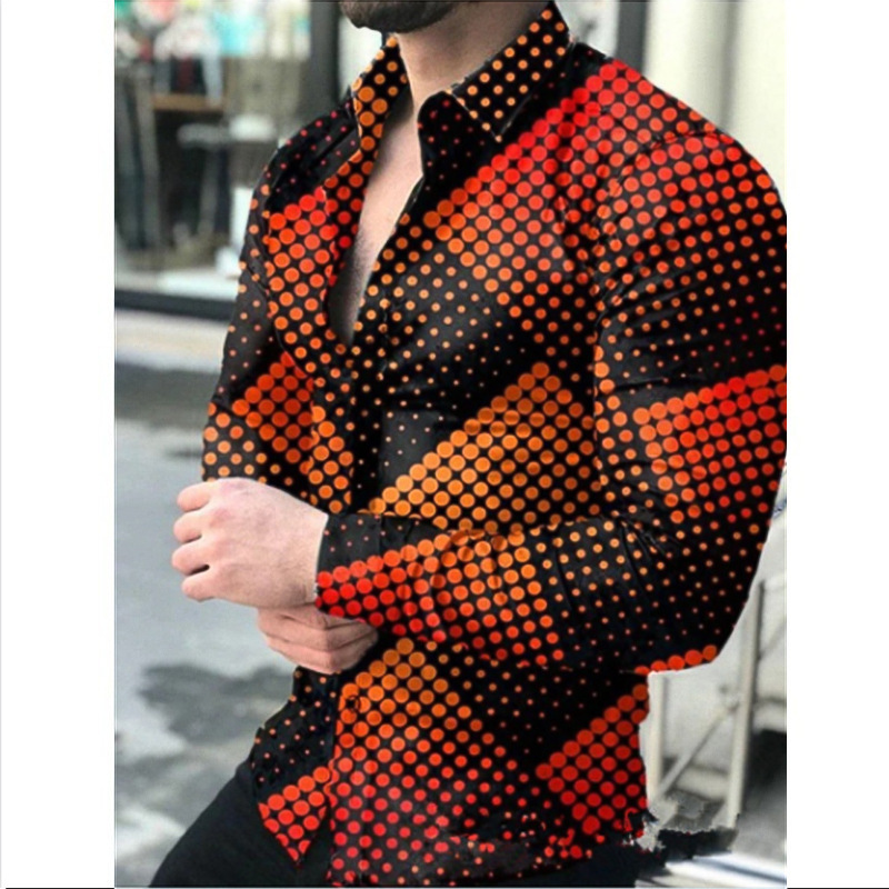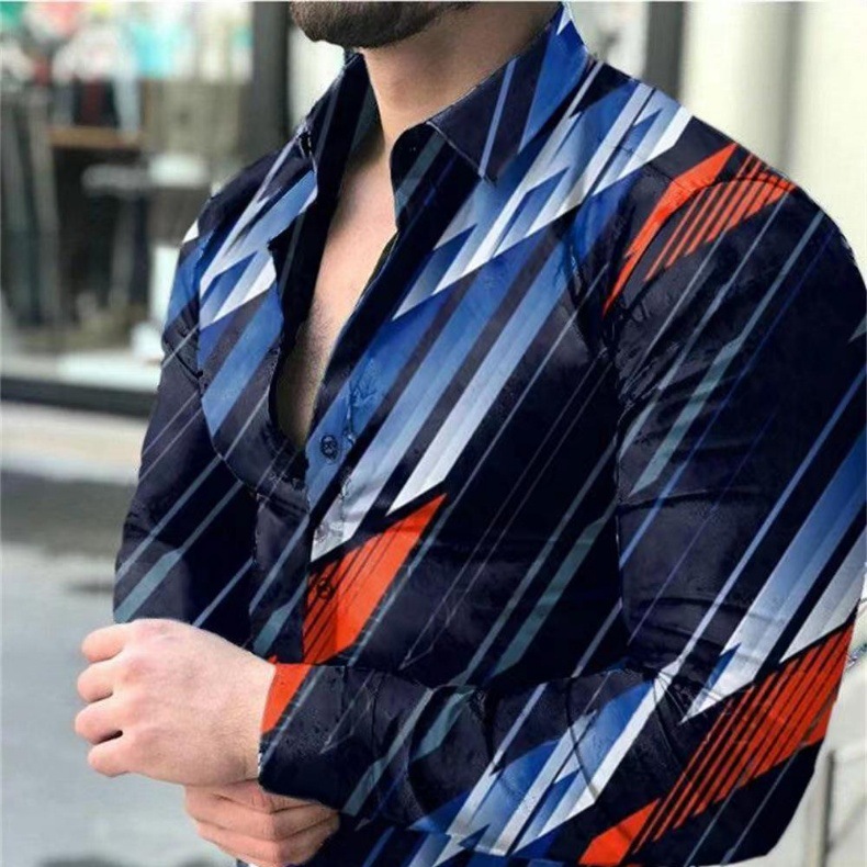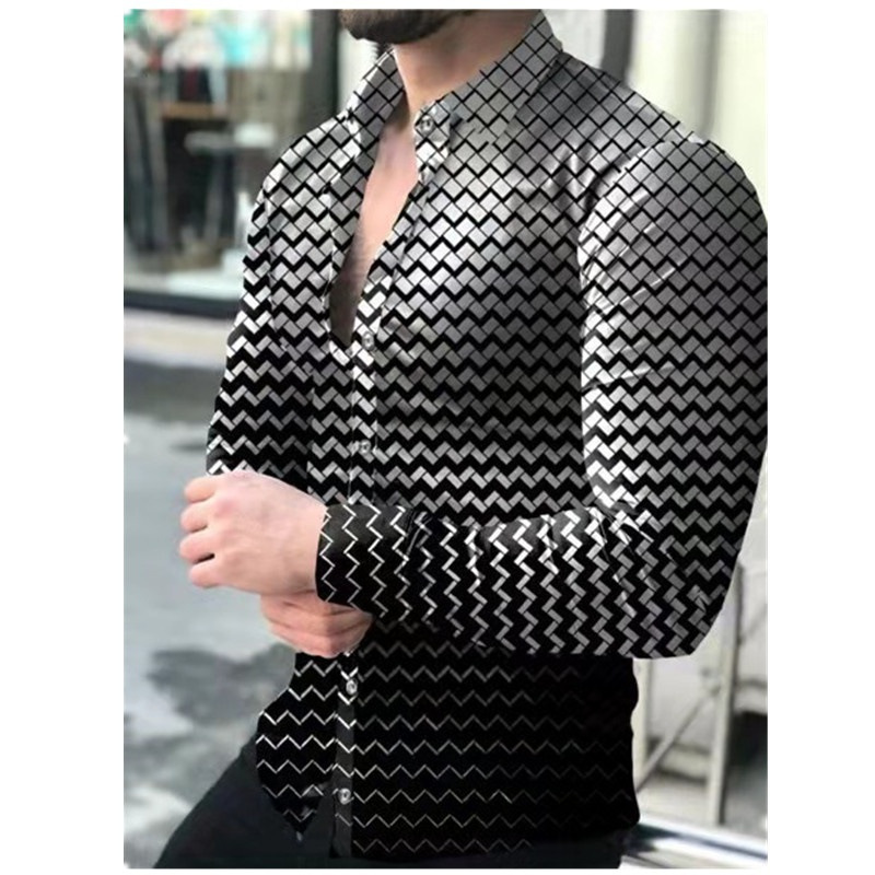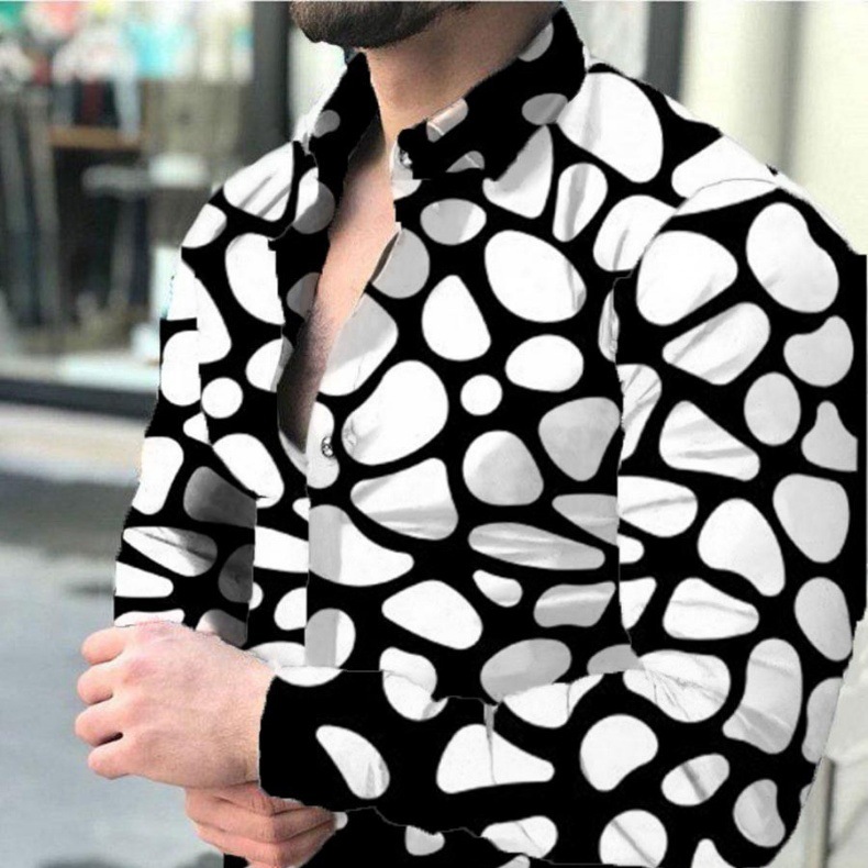 외국 무역 스타일 봄 남자의 4 면 탄성 성격 스플래시 잉크 3D 긴 소매 셔츠 남자의 플러스 사이즈 패션 캐주얼 셔츠 유행스토어 가기