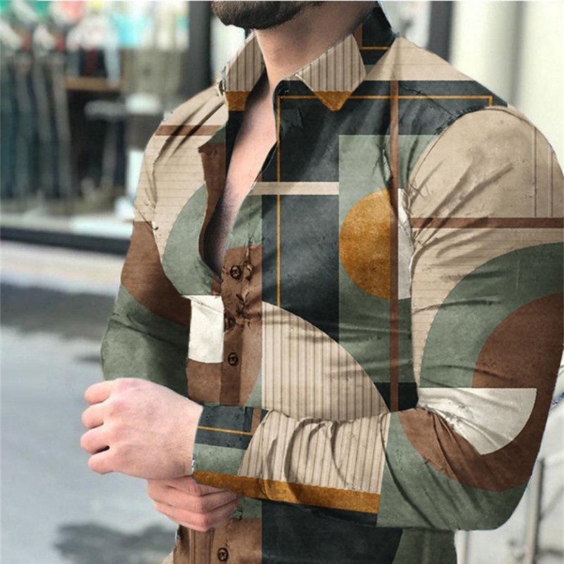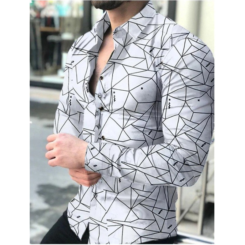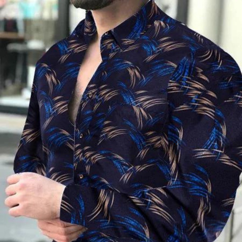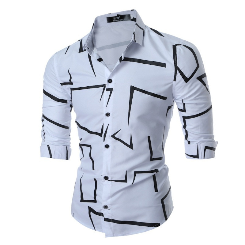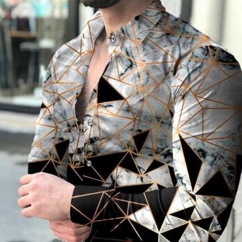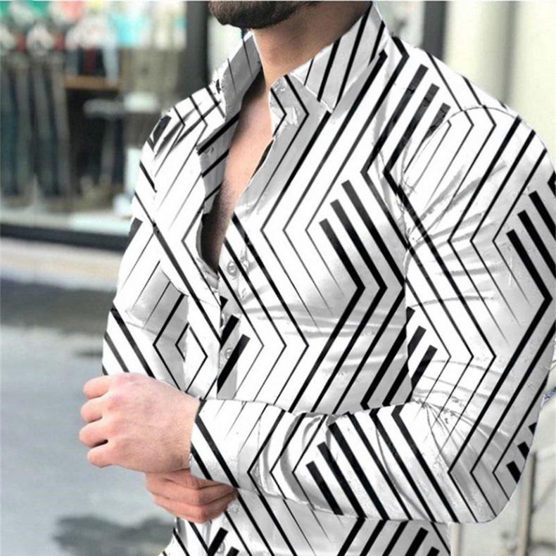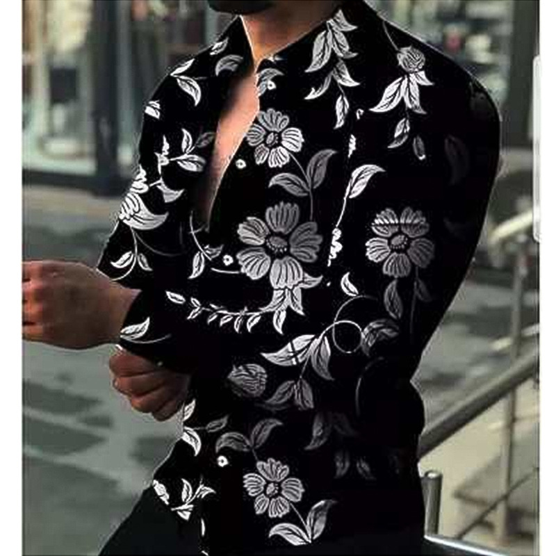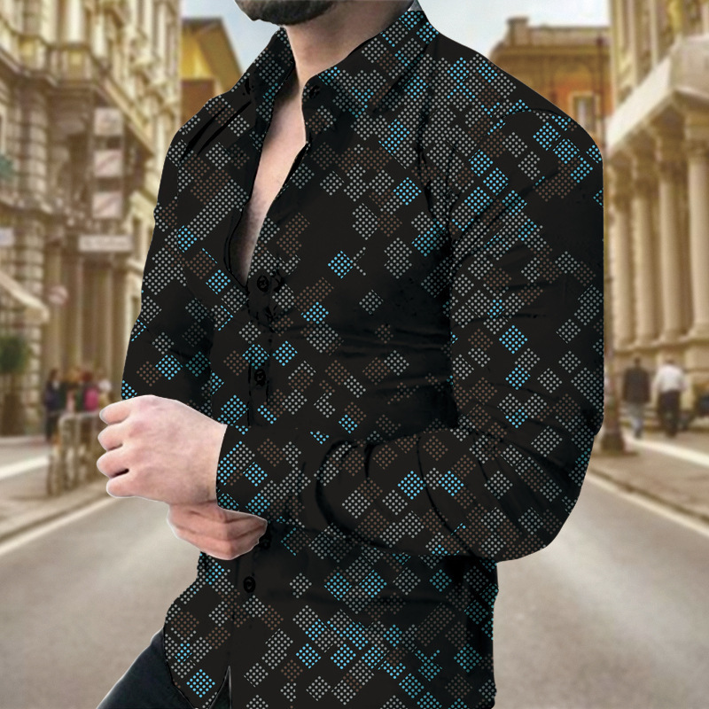 외국 무역 스타일 봄 남자의 4 면 탄성 성격 스플래시 잉크 3D 긴 소매 셔츠 남자의 플러스 사이즈 패션 캐주얼 셔츠 유행스토어 가기