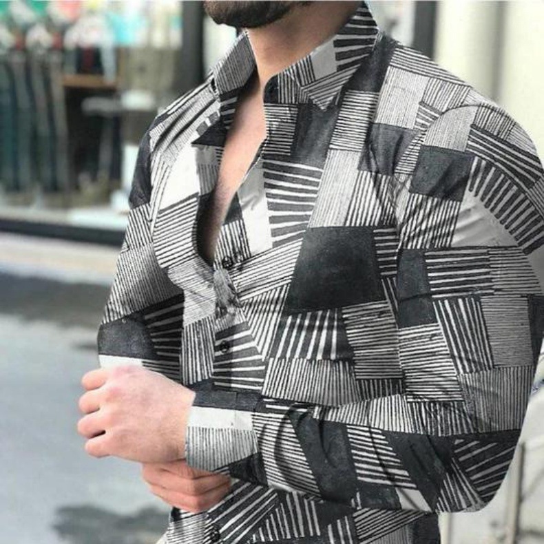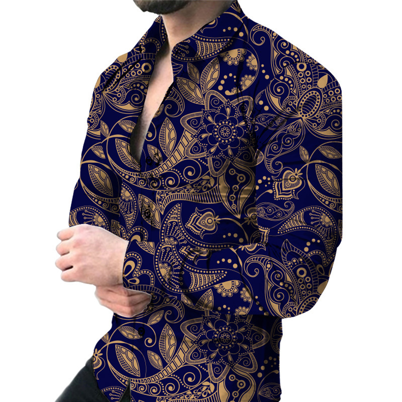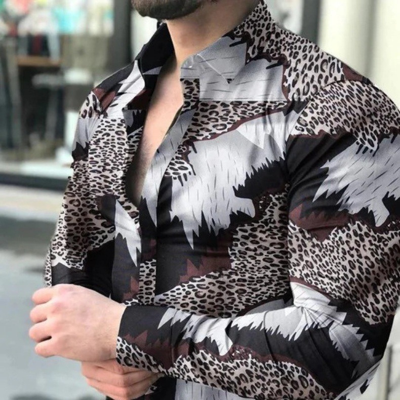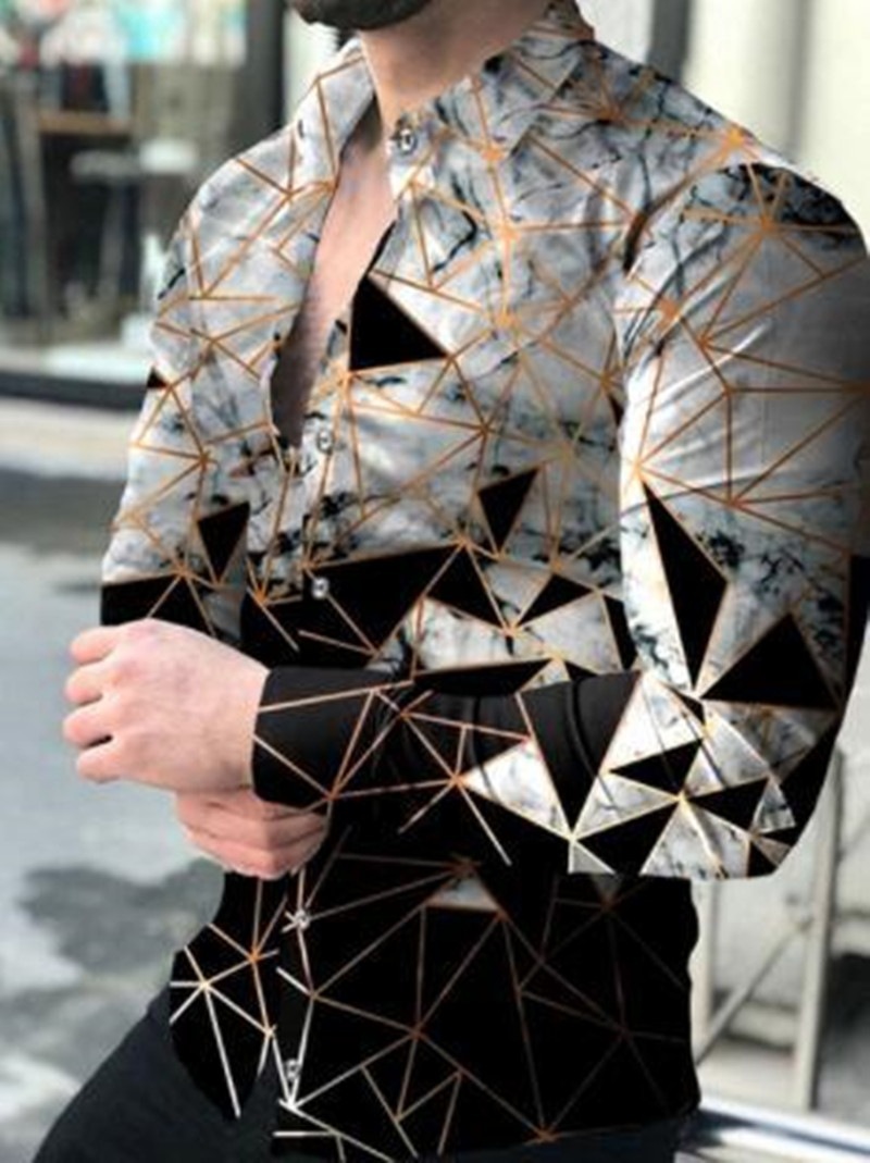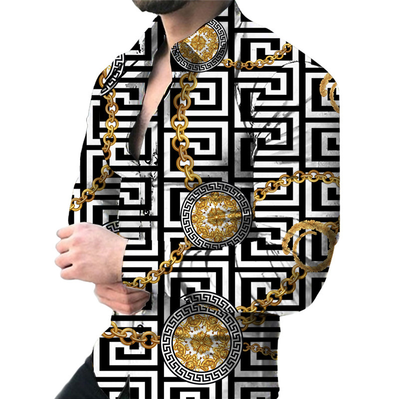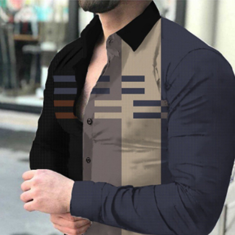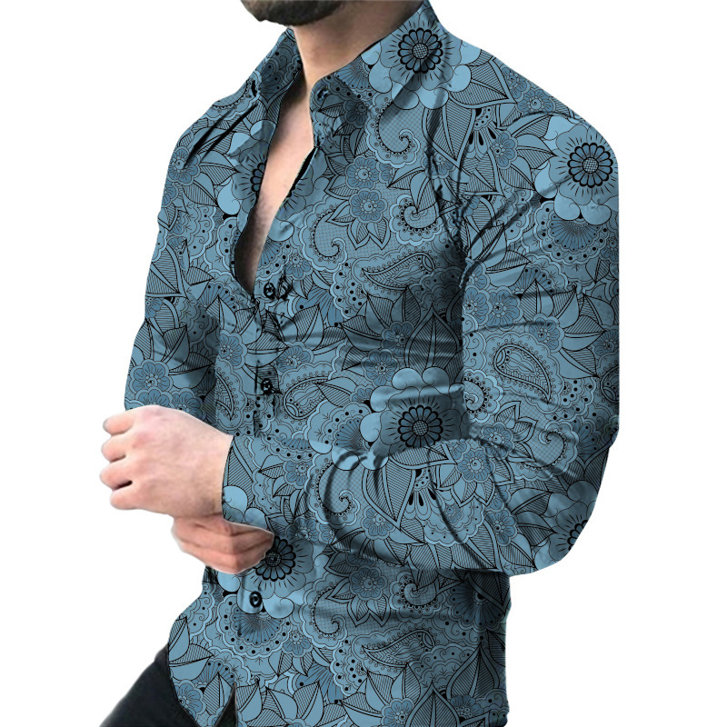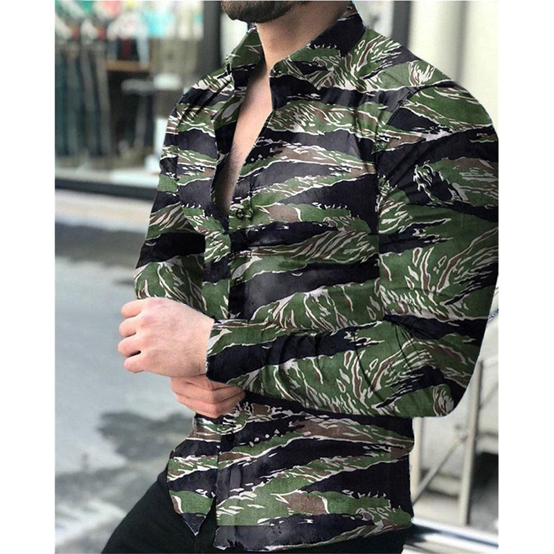 외국 무역 스타일 봄 남자의 4 면 탄성 성격 스플래시 잉크 3D 긴 소매 셔츠 남자의 플러스 사이즈 패션 캐주얼 셔츠 유행스토어 가기