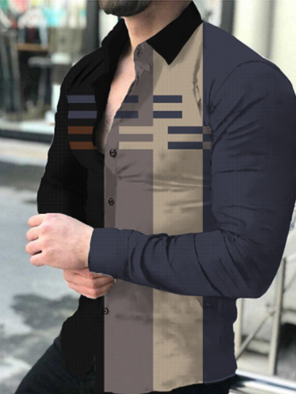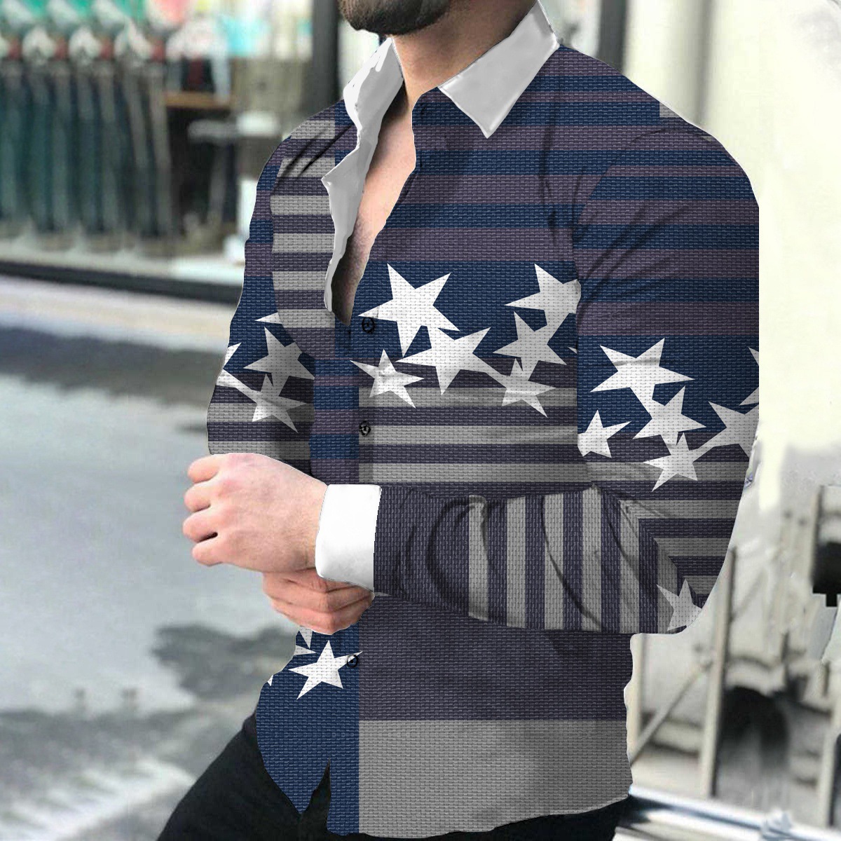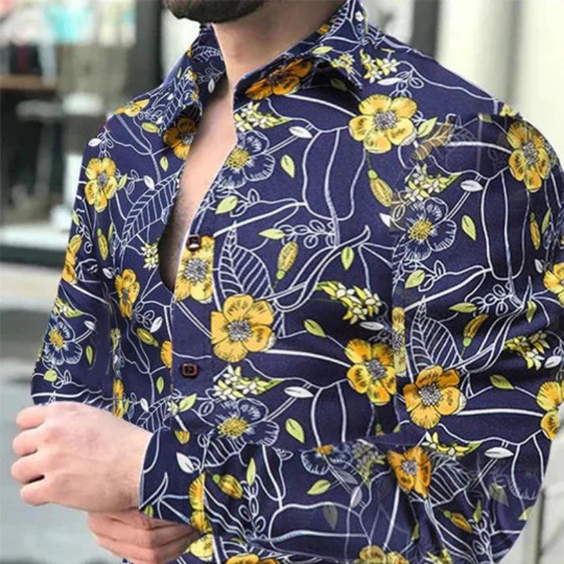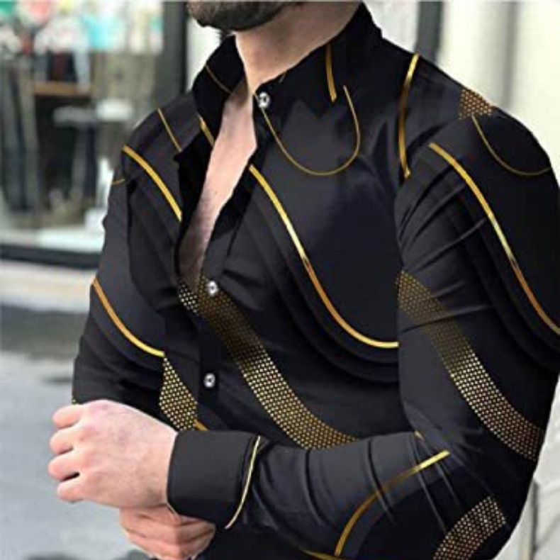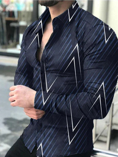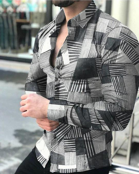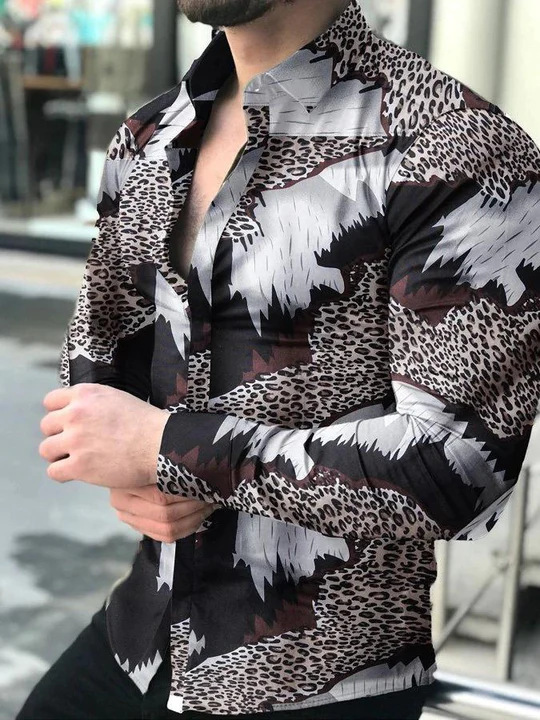 외국 무역 스타일 봄 남자의 4 면 탄성 성격 스플래시 잉크 3D 긴 소매 셔츠 남자의 플러스 사이즈 패션 캐주얼 셔츠 유행스토어 가기