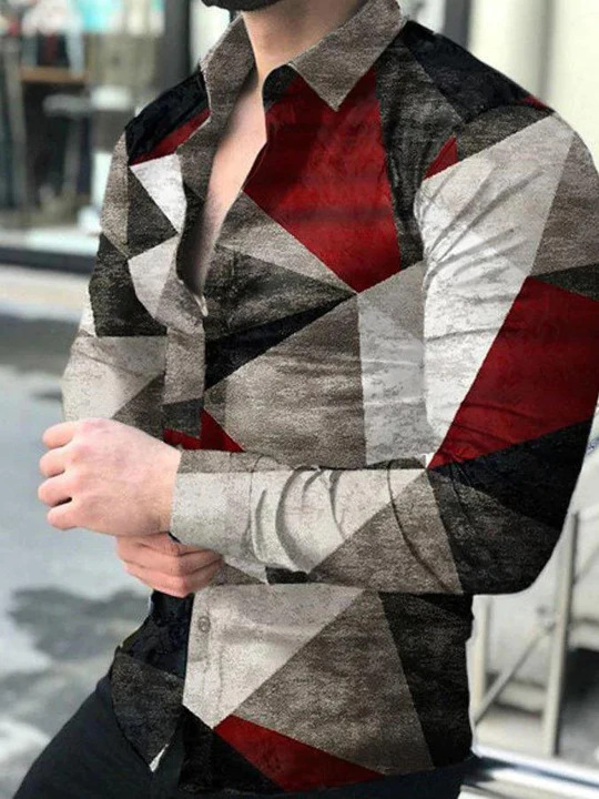외국 무역 스타일 봄 남자의 4 면 탄성 성격 스플래시 잉크 3D 긴 소매 셔츠 남자의 플러스 사이즈 패션 캐주얼 셔츠 유행