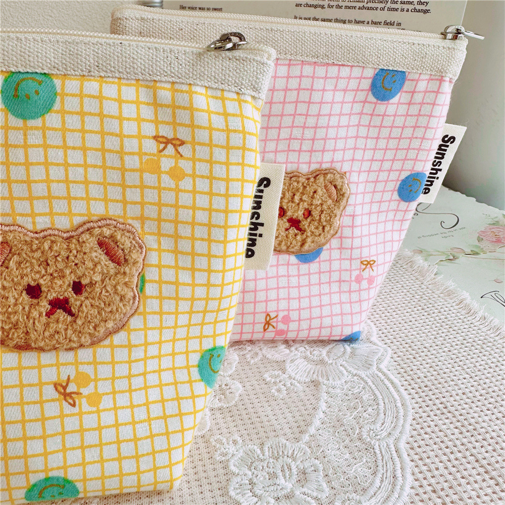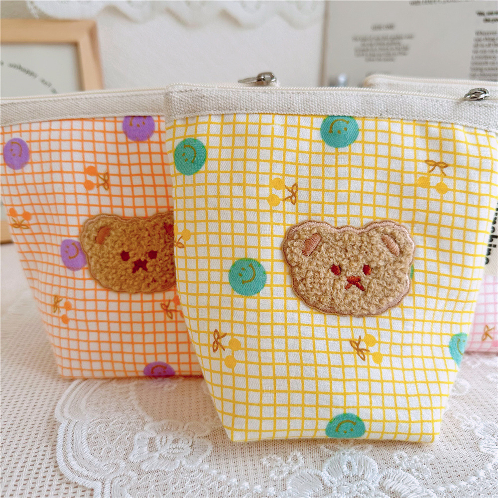 코튼 스마일리 플러시 베어 화장품 보관 가방 빨간 가방 일본 만화 화장품 가방