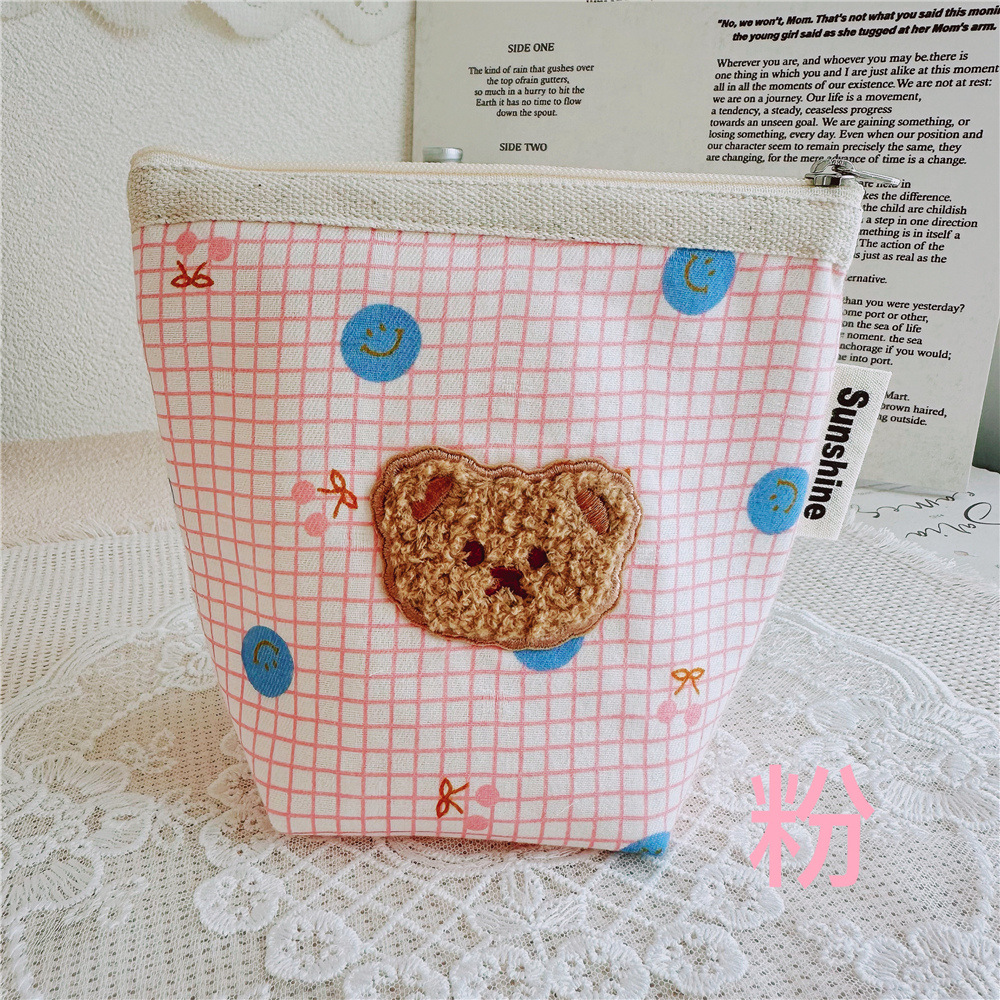 코튼 스마일리 플러시 베어 화장품 보관 가방 빨간 가방 일본 만화 화장품 가방스토어 가기