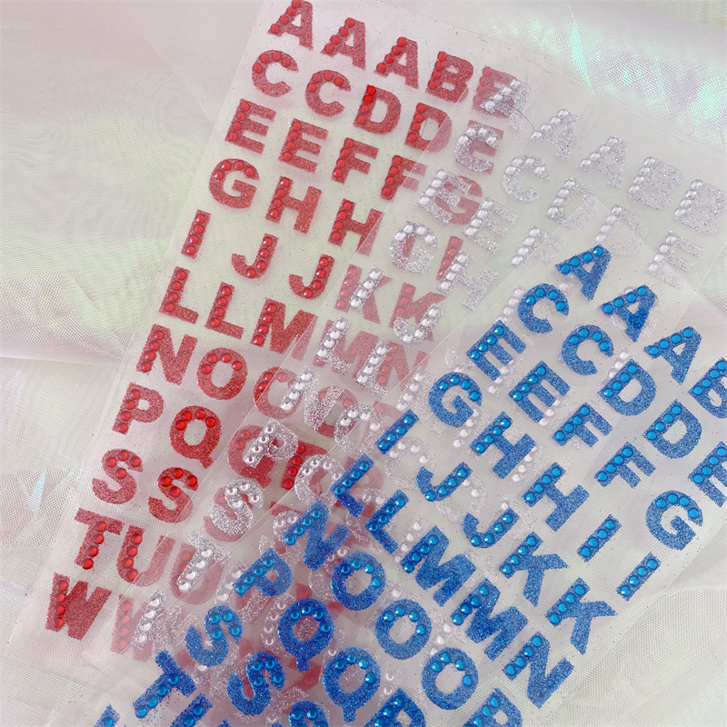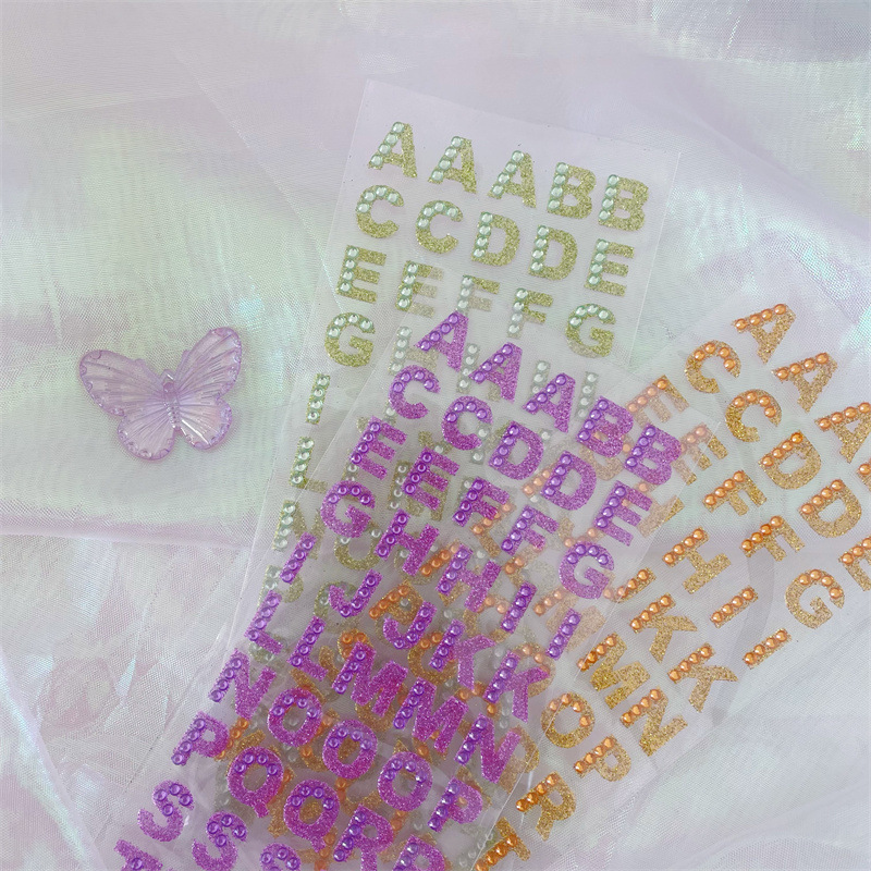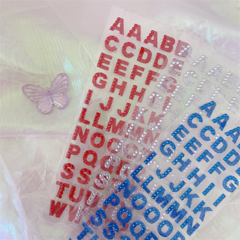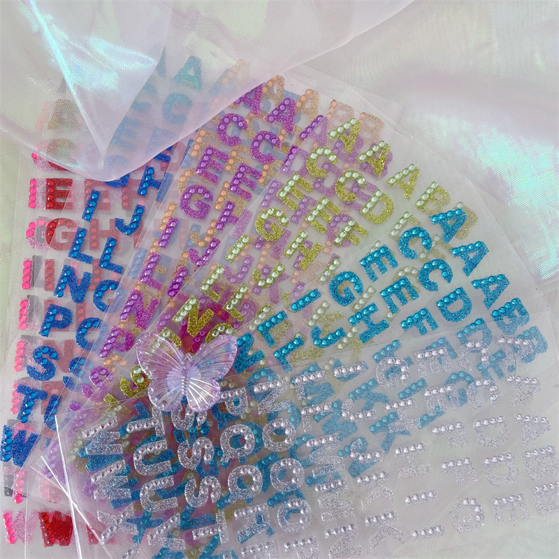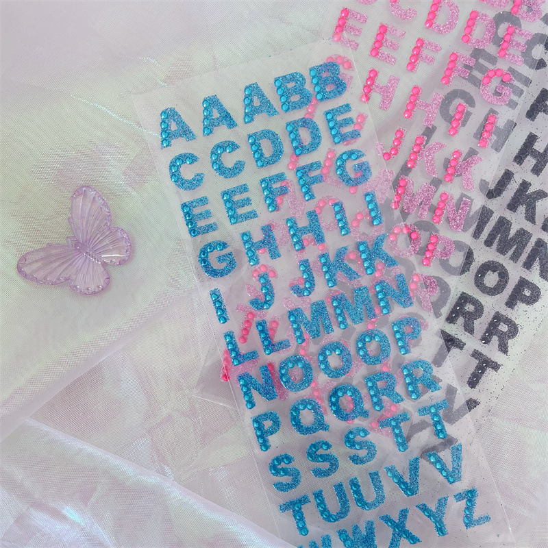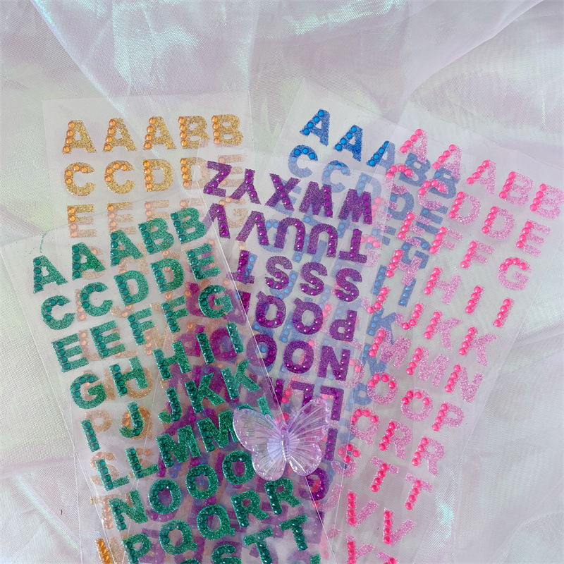 컬러 영어 편지 스티커 캔디 어린이 학습 다이아몬드 보석 스티커 수제 계정 자료 장식 크리스탈