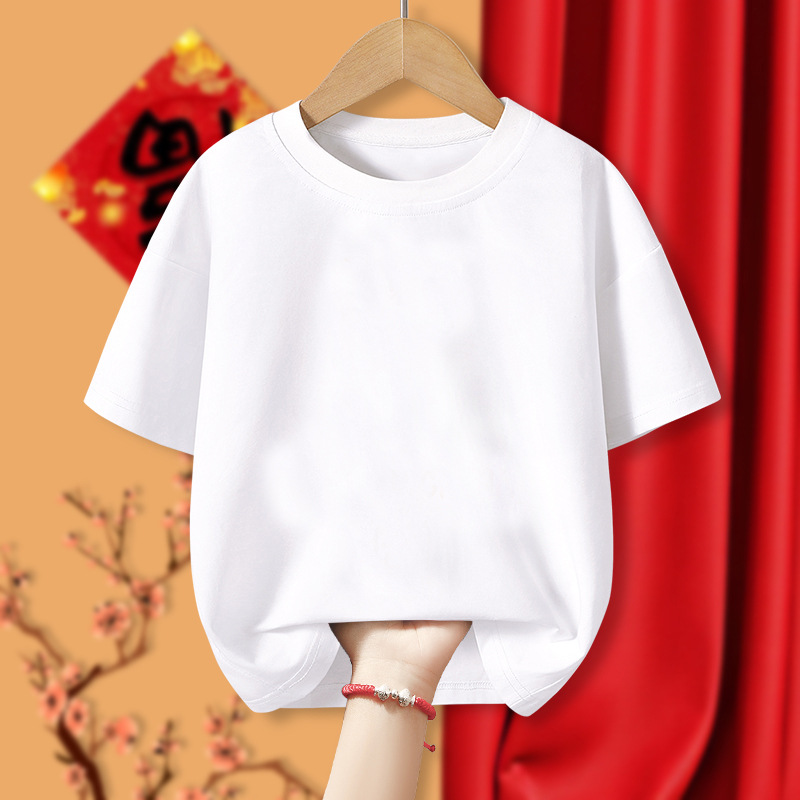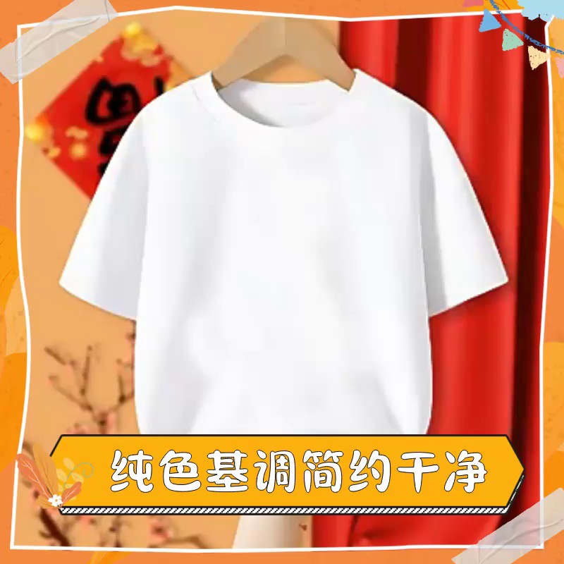 2024년 여름 신상 남녀 아동용 순면 땀 흡수 반팔 티셔츠, 중대형 아동용 루즈핏 순백색 이너웨어스토어 가기