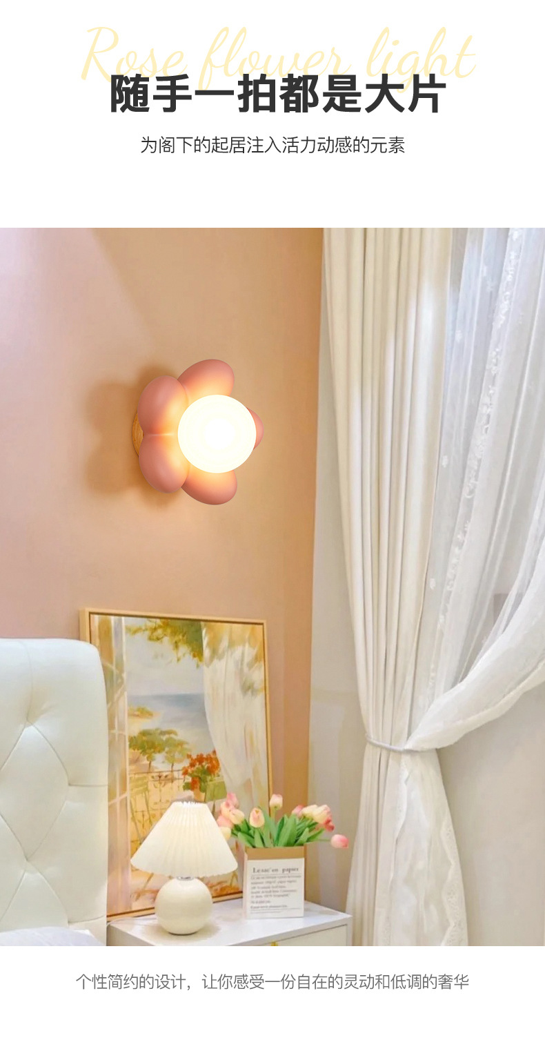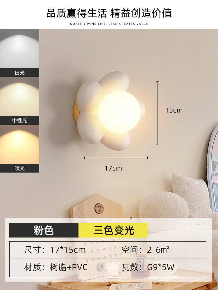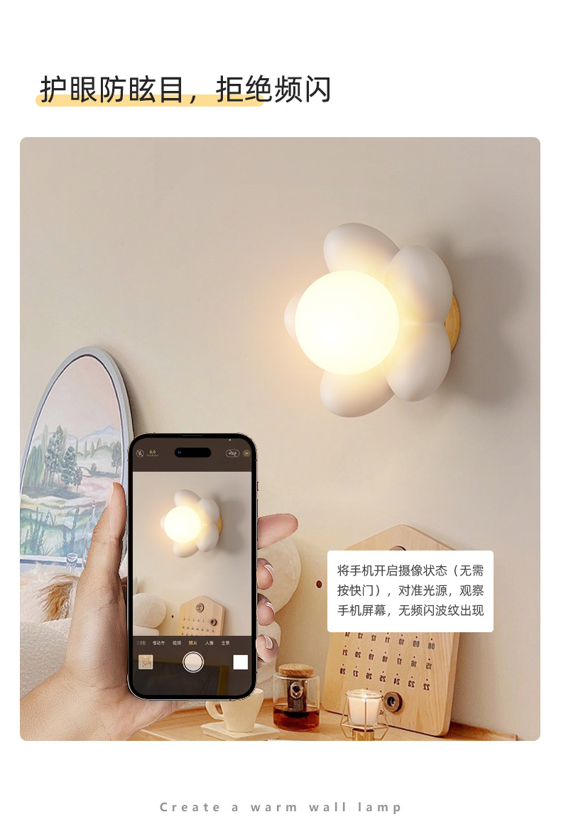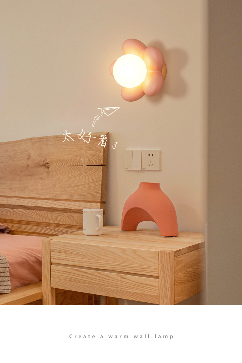 벽 램프 침대 옆 램프 어린이 침실 램프 간단한 현대 램프 크림 바람 꽃 통로 램프 거실 배경 벽스토어 가기
