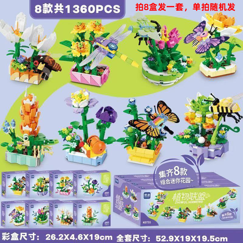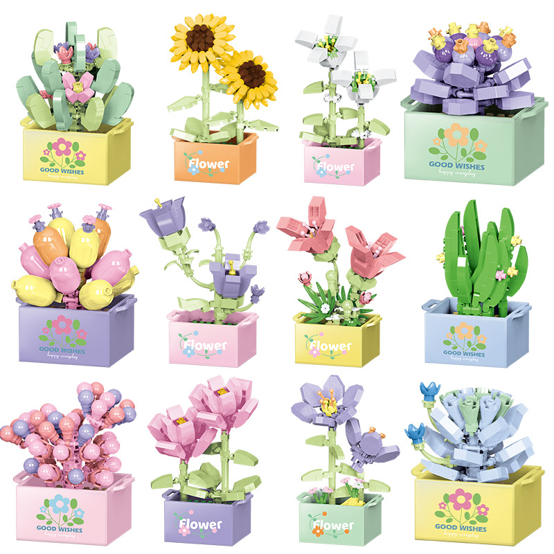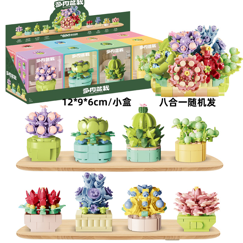 • [싱글 미니 박스] 다양한 스타일의 다육식물/꽃 빌딩 블록이 담긴 작은 상자
