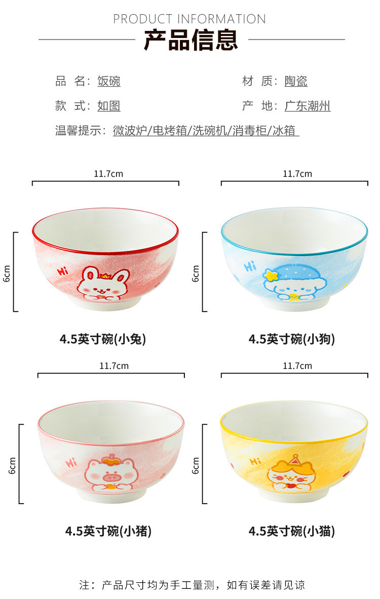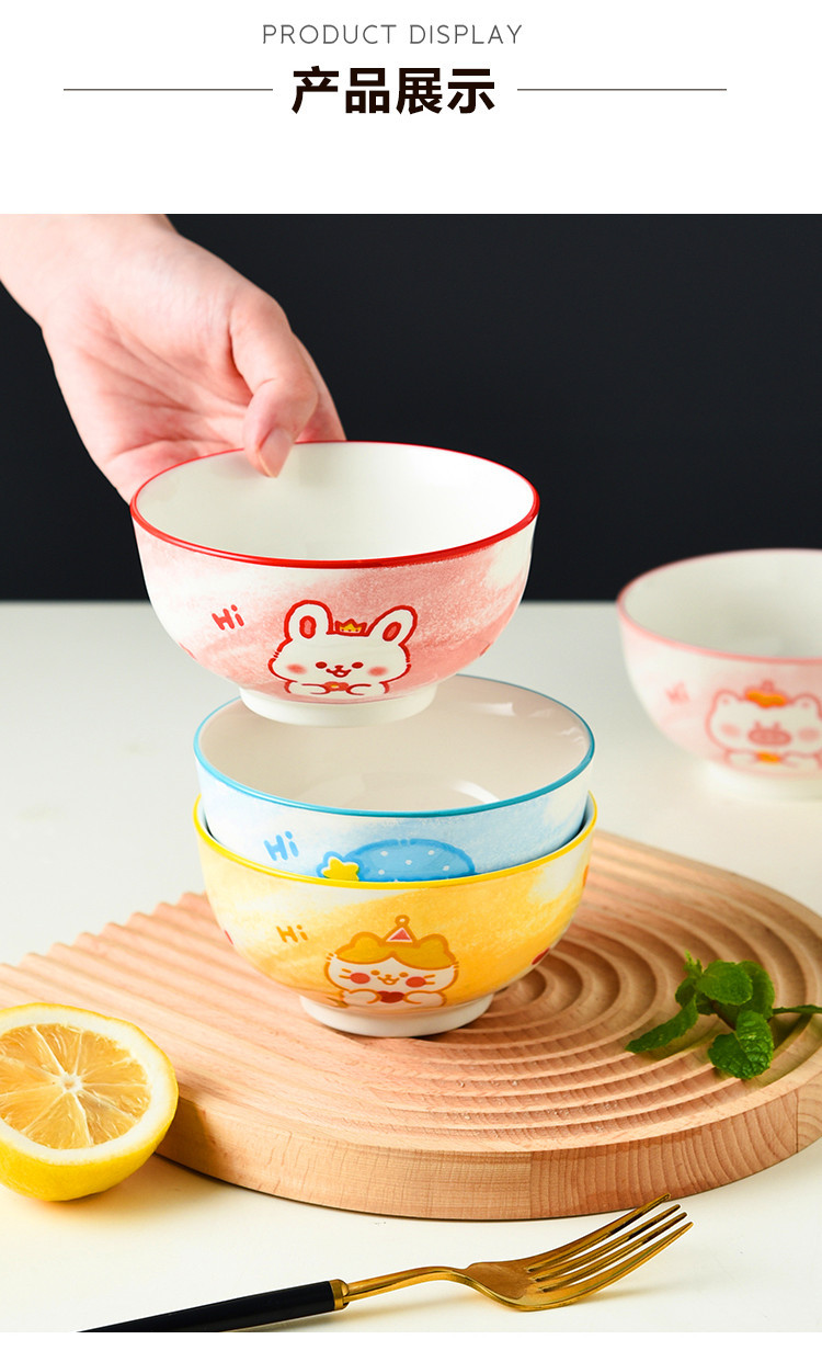 해저 식기 언더 글레이즈 컬러 밥그릇 가정용 도자기 밥그릇 귀여운 만화 고온 저항 작은 그릇을 먹는 아이들스토어 가기