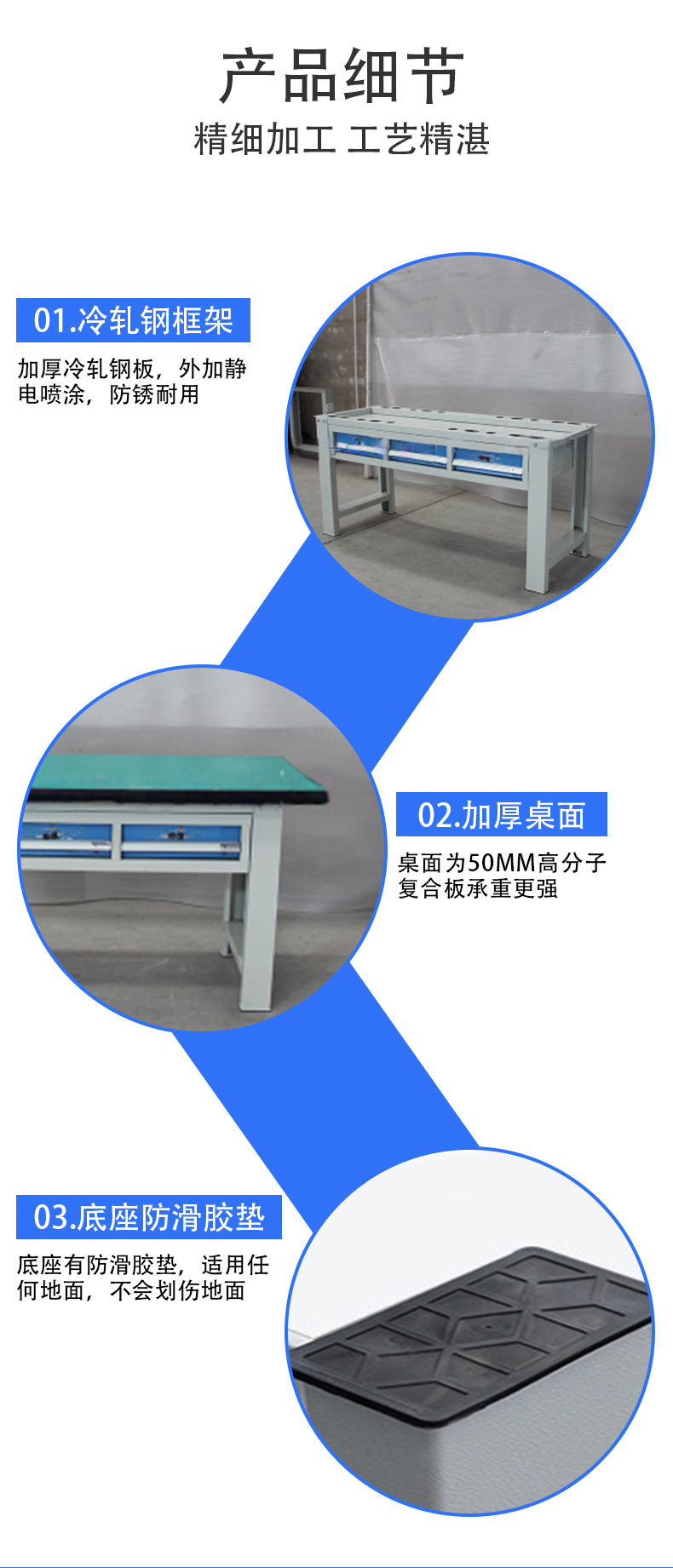 정전기 방지 무거운 의무 두꺼운 냉간 압연 강철 3 서랍 작업 테이블 전기 기술자 운영 공장 유지 보수 테이블 서랍