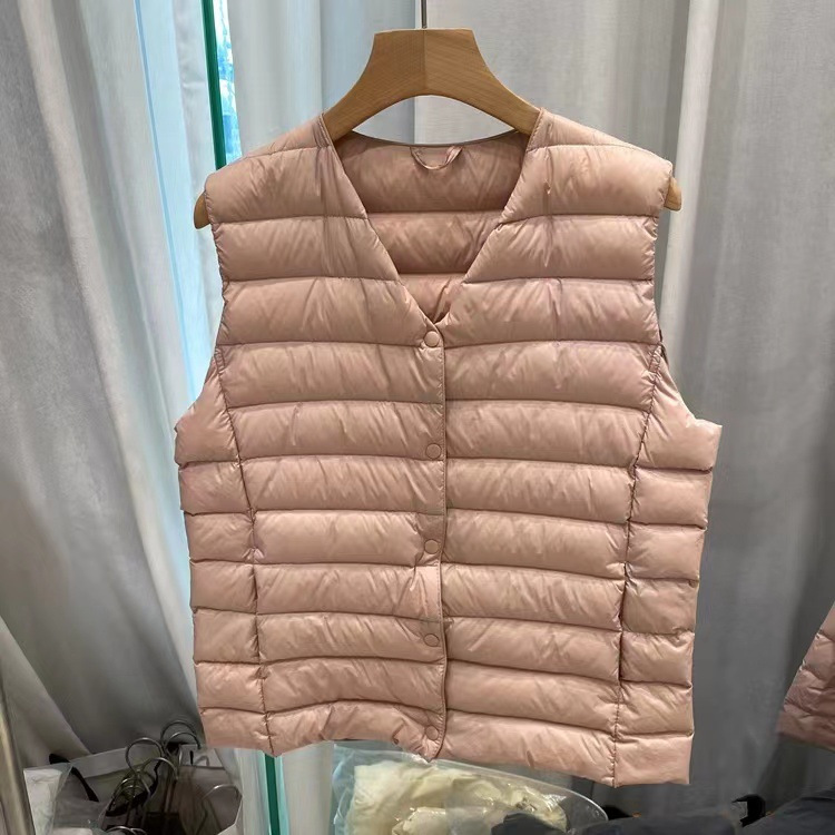 Pinghu 얇은 다운 조끼 2025 가을 겨울 신상 화이트 오리 다운 조끼, 가변 브이넥 안감스토어 가기