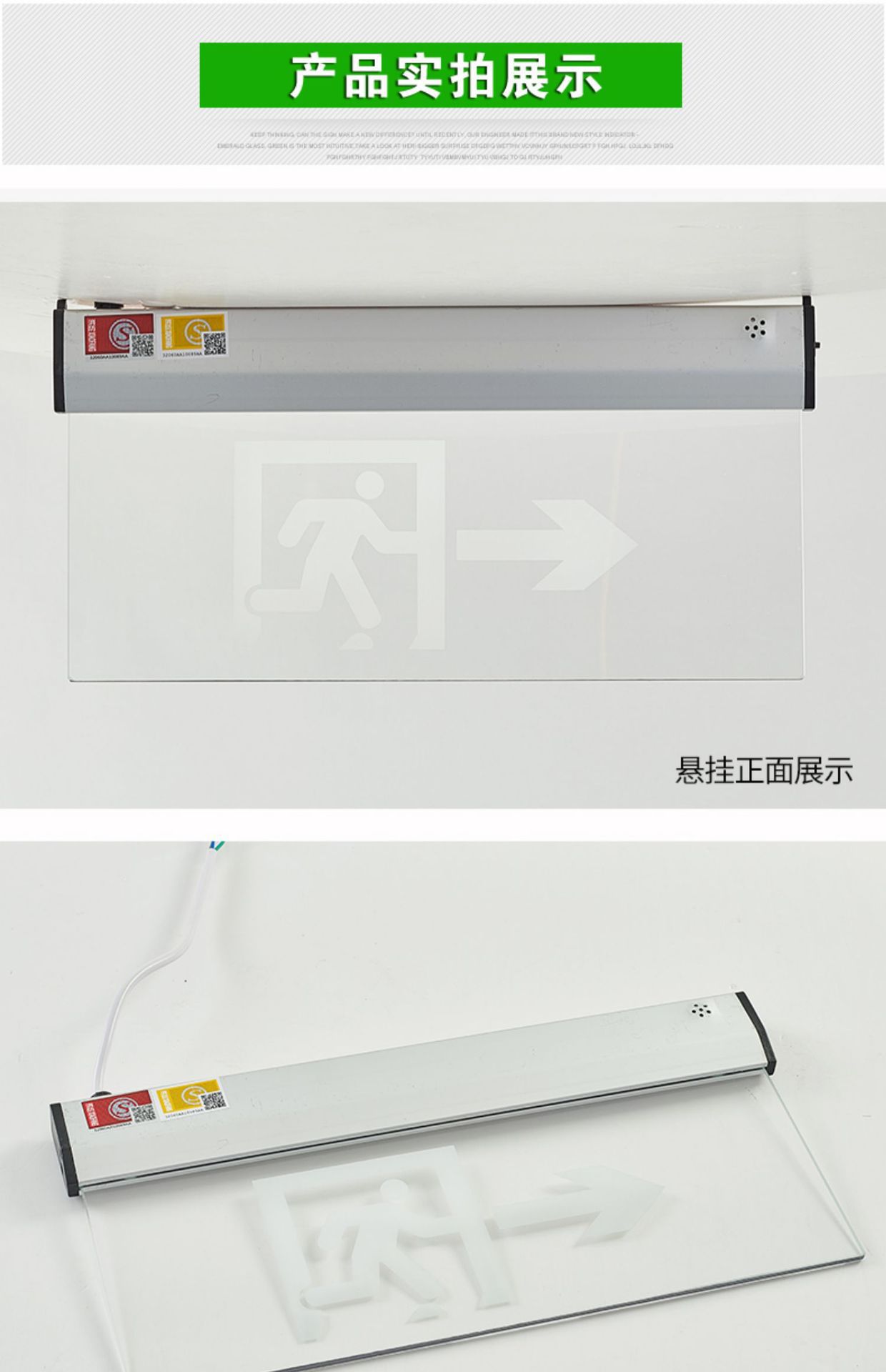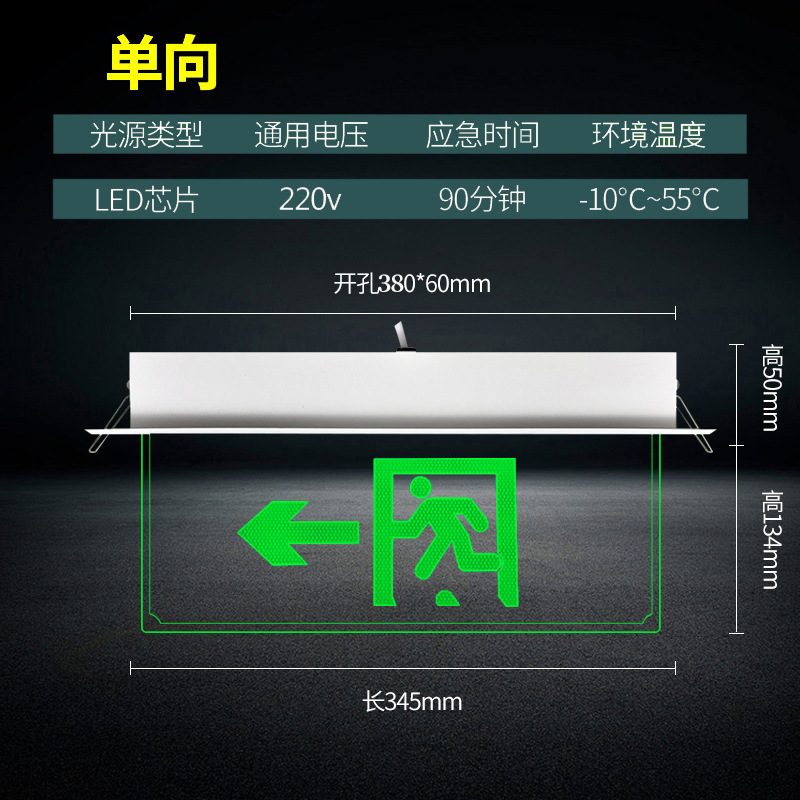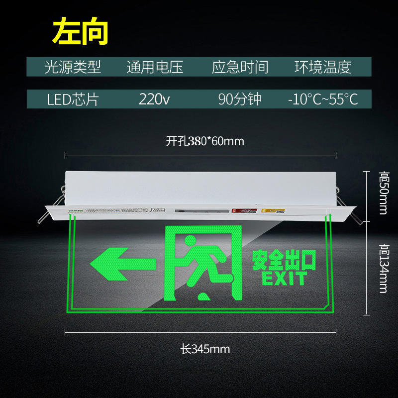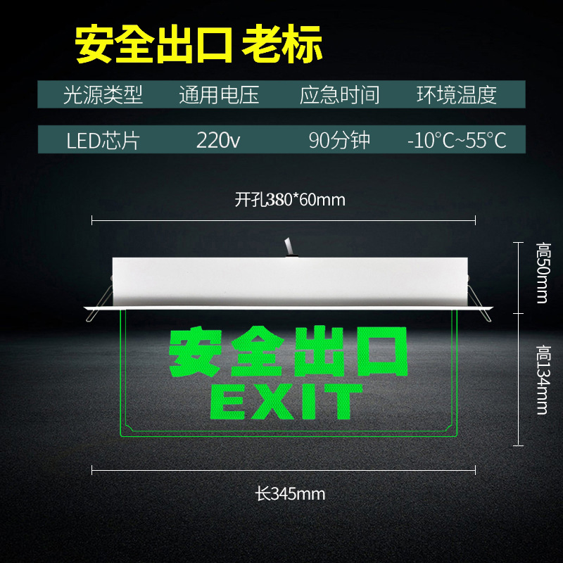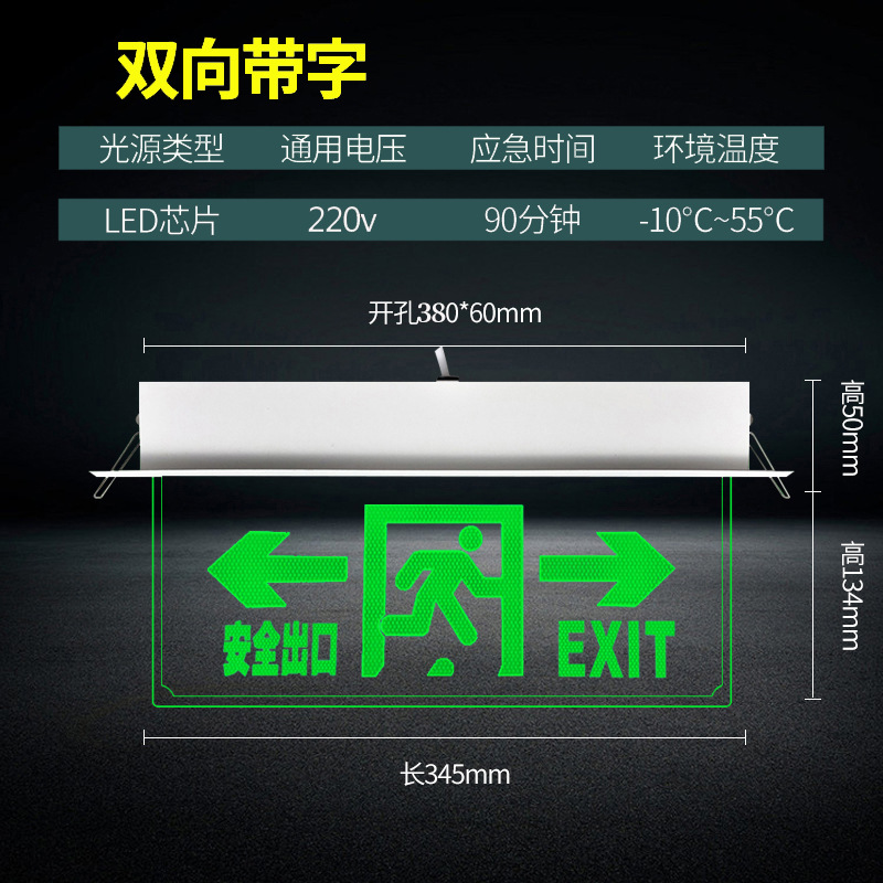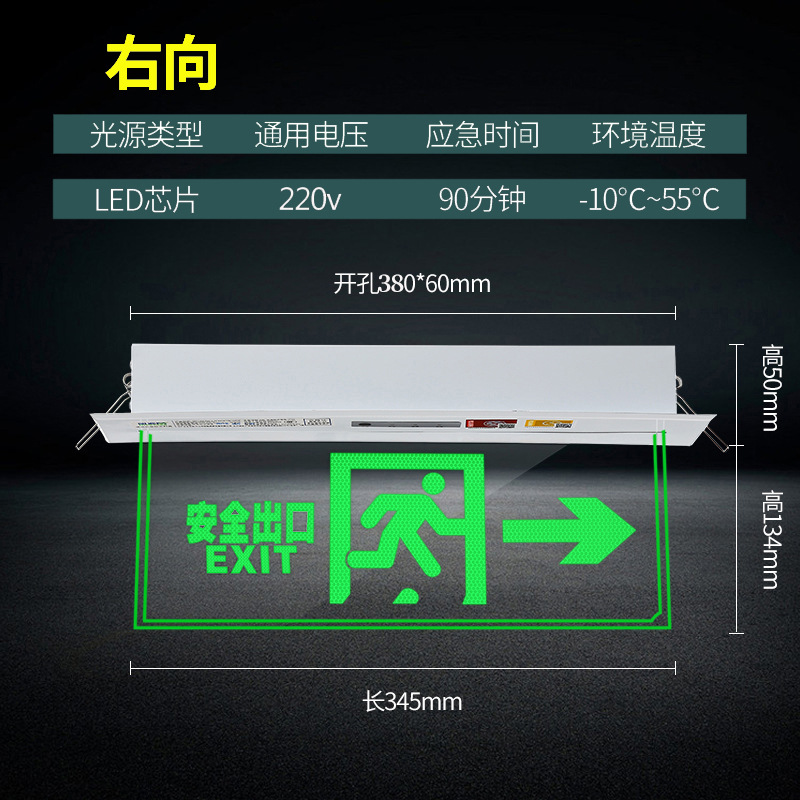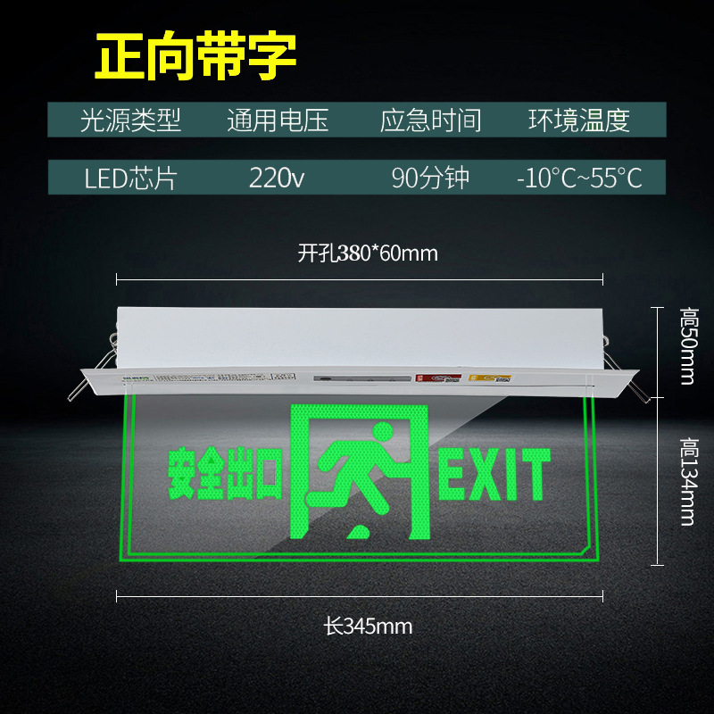 천장 매립형 대피 표시등, 천장 안전 출구, 투명 강화 유리 태그 표지판, 화재 비상등