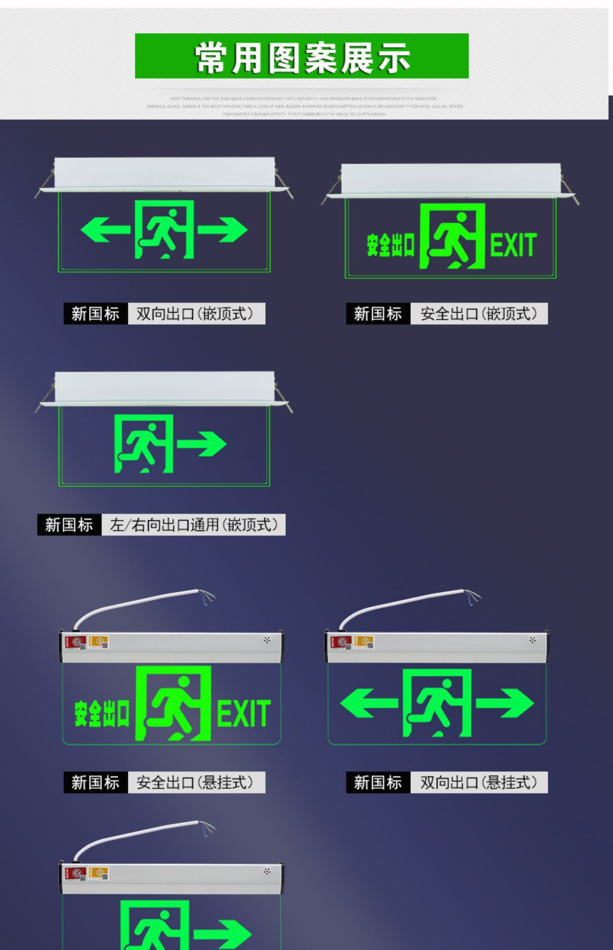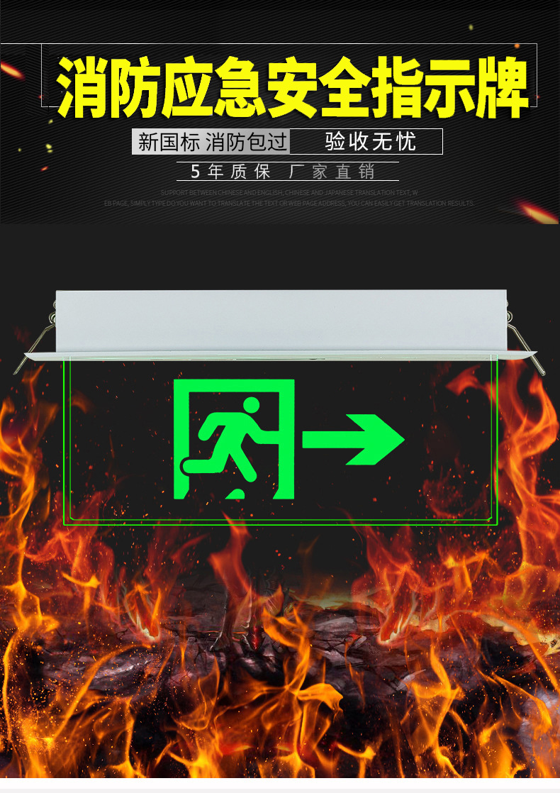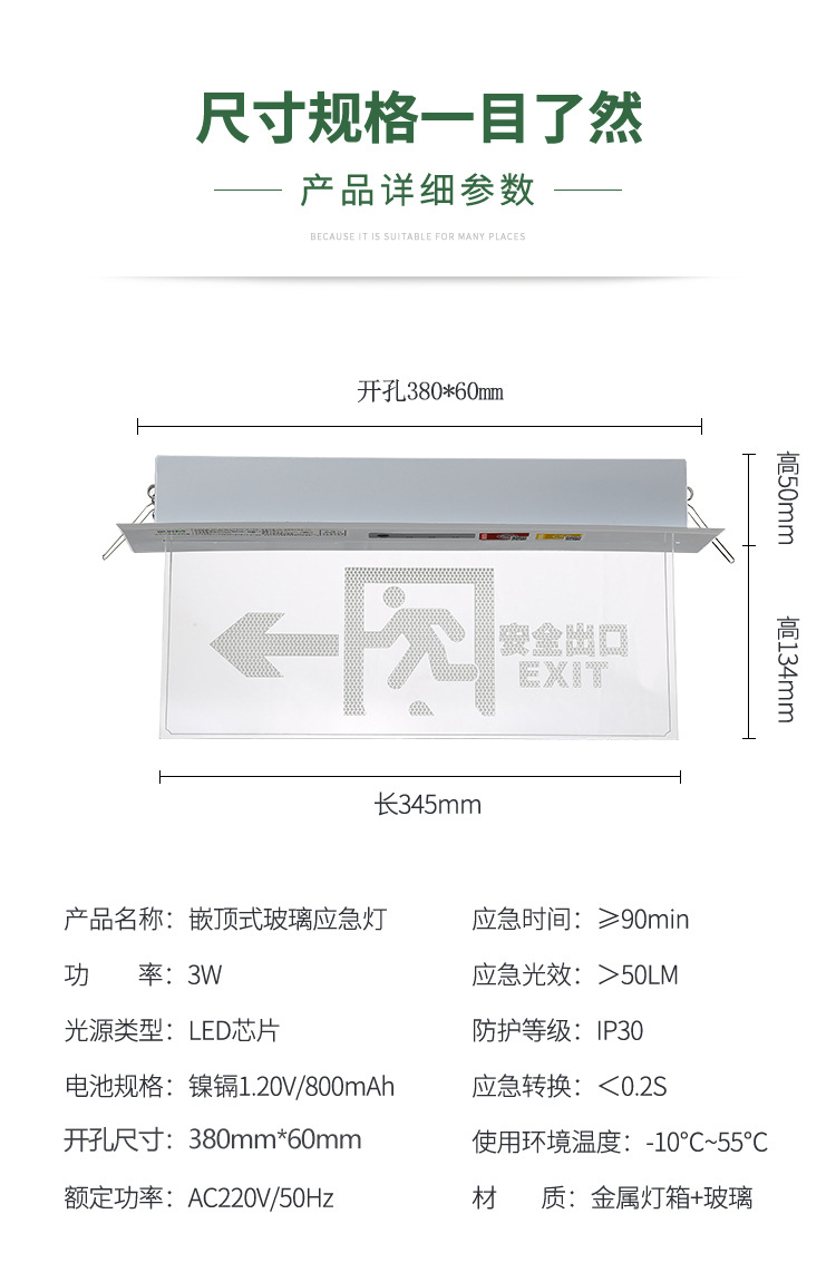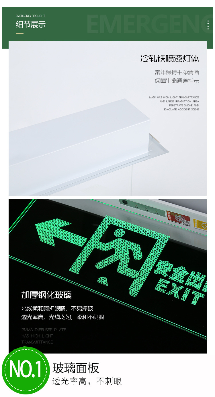 천장 매립형 대피 표시등, 천장 안전 출구, 투명 강화 유리 태그 표지판, 화재 비상등