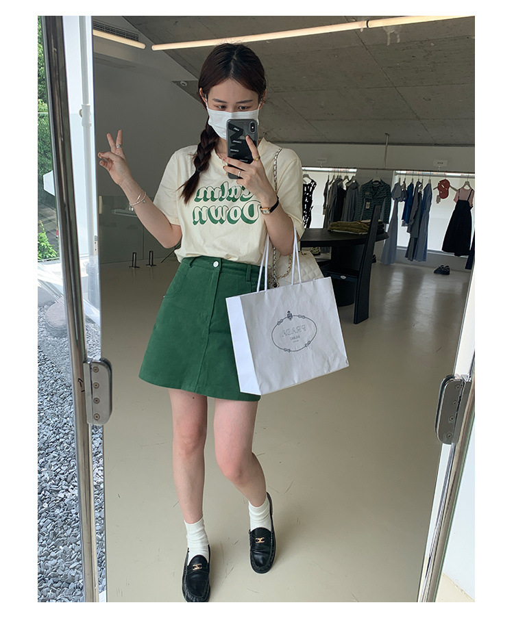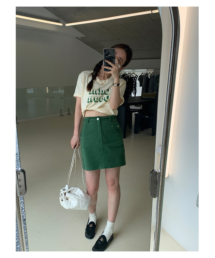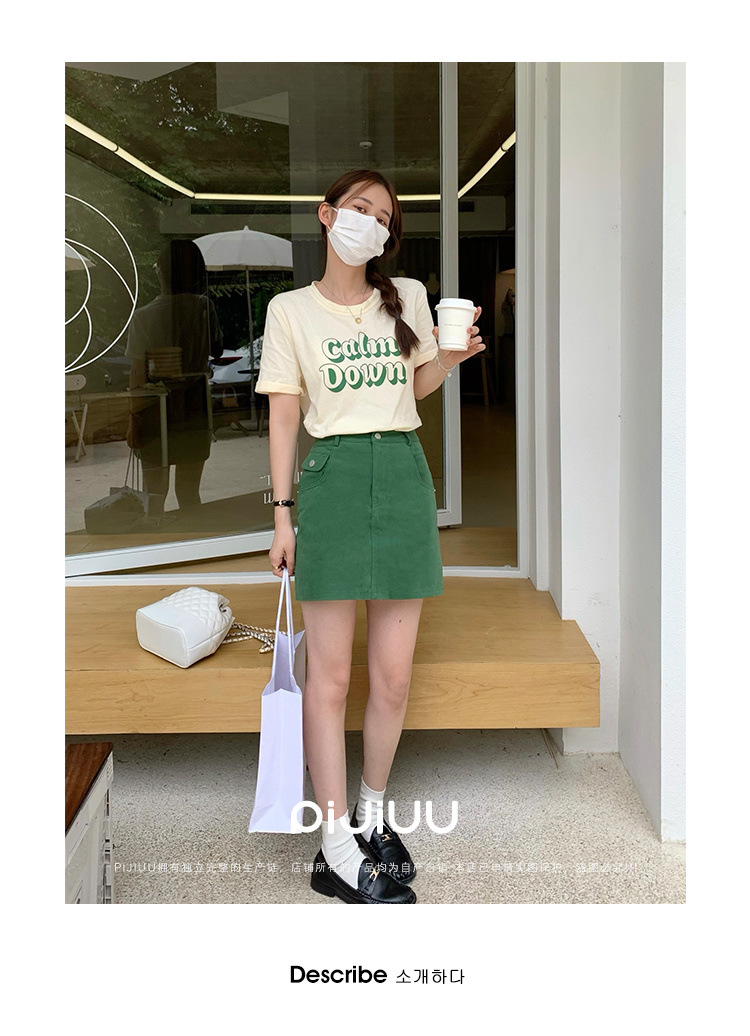 BF 홍콩 스타일 그린 트렌디 미니스커트 여성용 여름 새로운 슬림핏 핫 걸 스커트 한국 A-라인 스커트스토어 가기