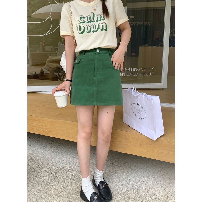 BF 홍콩 스타일 그린 트렌디 미니스커트 여성용 여름 새로운 슬림핏 핫 걸 스커트 한국 A-라인 스커트