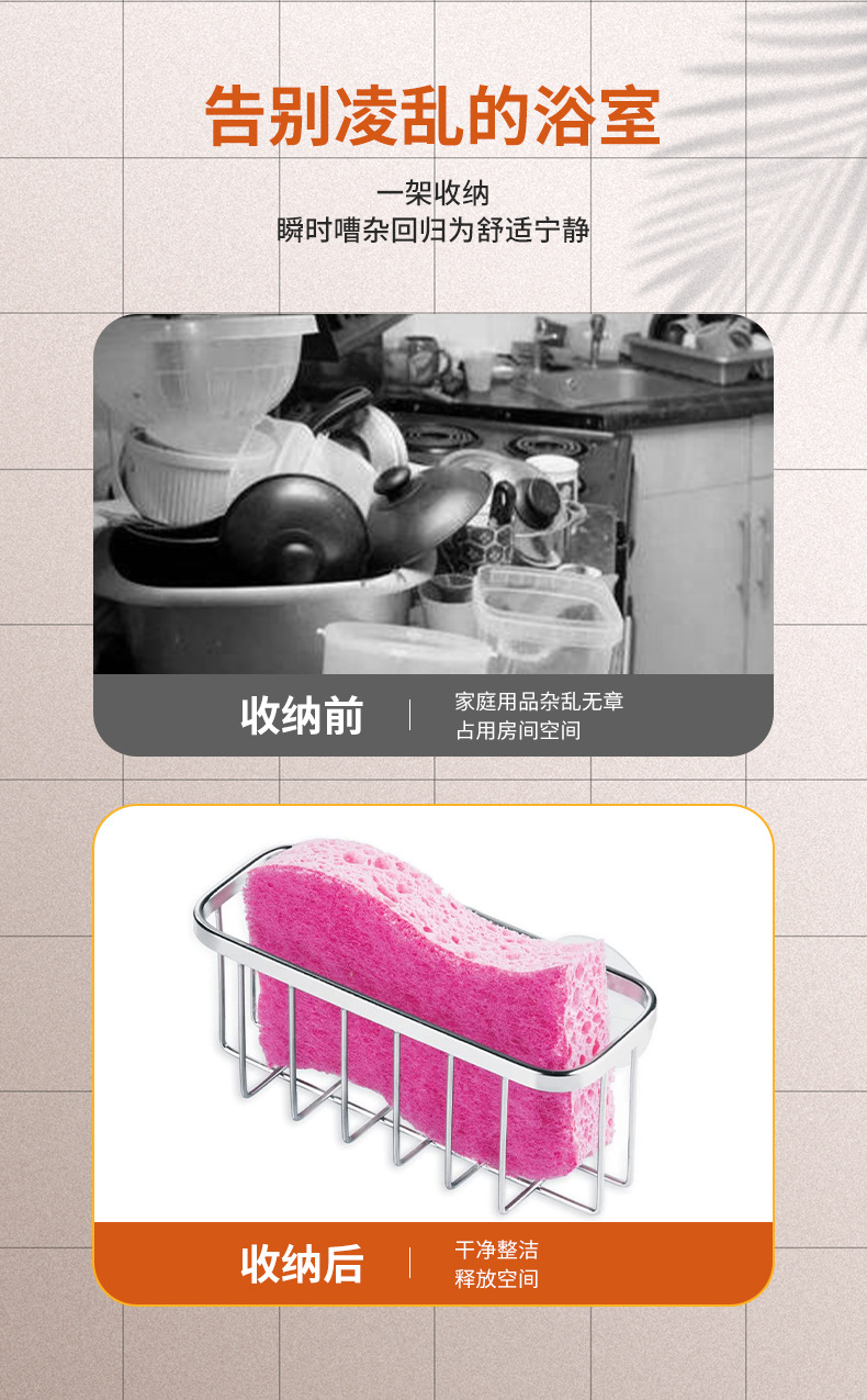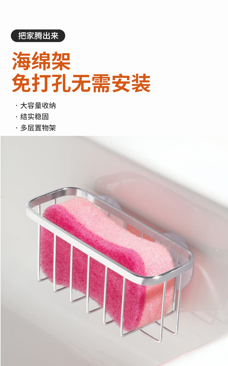 스테인레스 스틸 주방 걸레 건조 랙 스토리지 랙 펀치 프리 가정용 벽 장착 스폰지 랙 싱크 스토리지 바구니