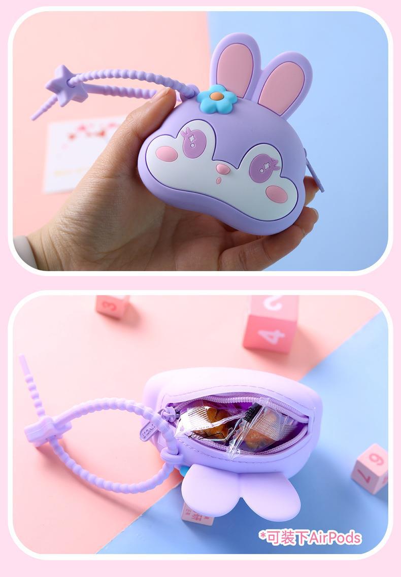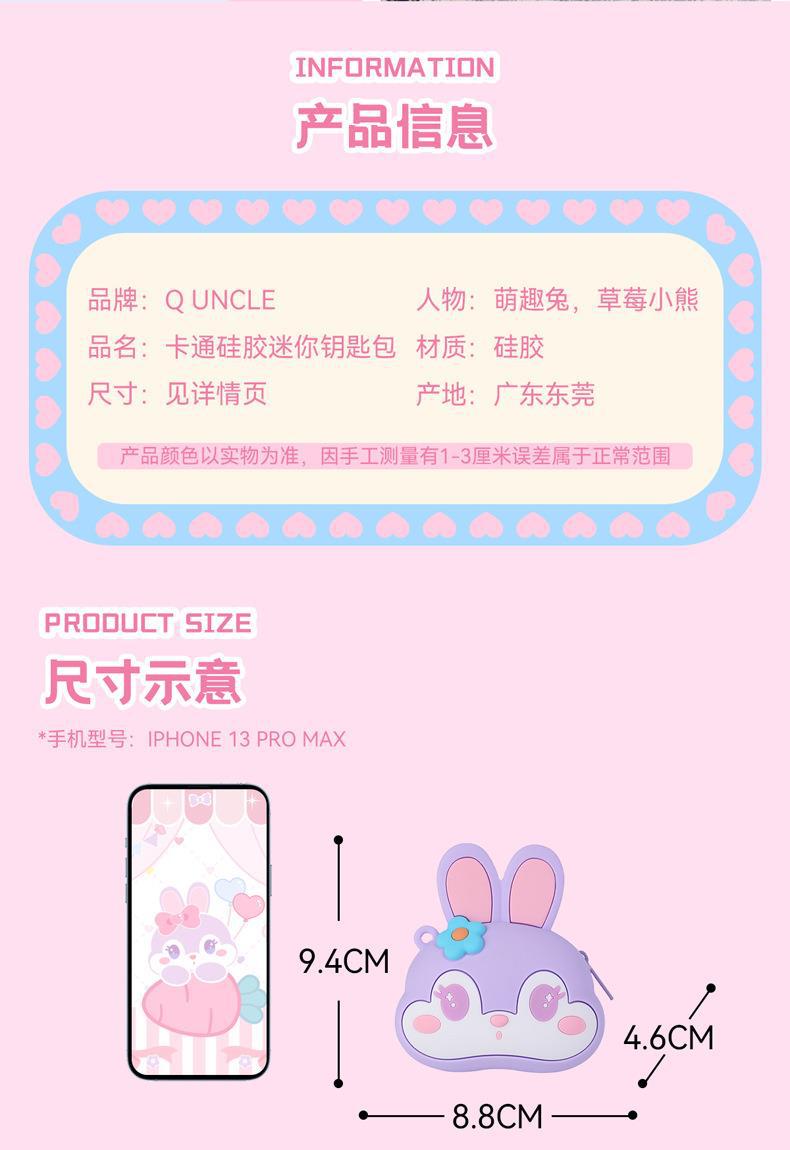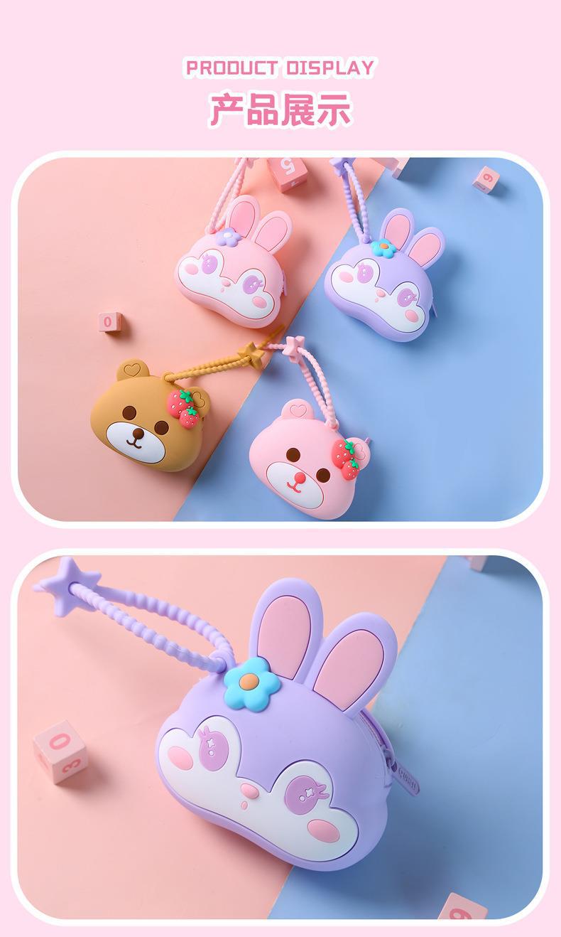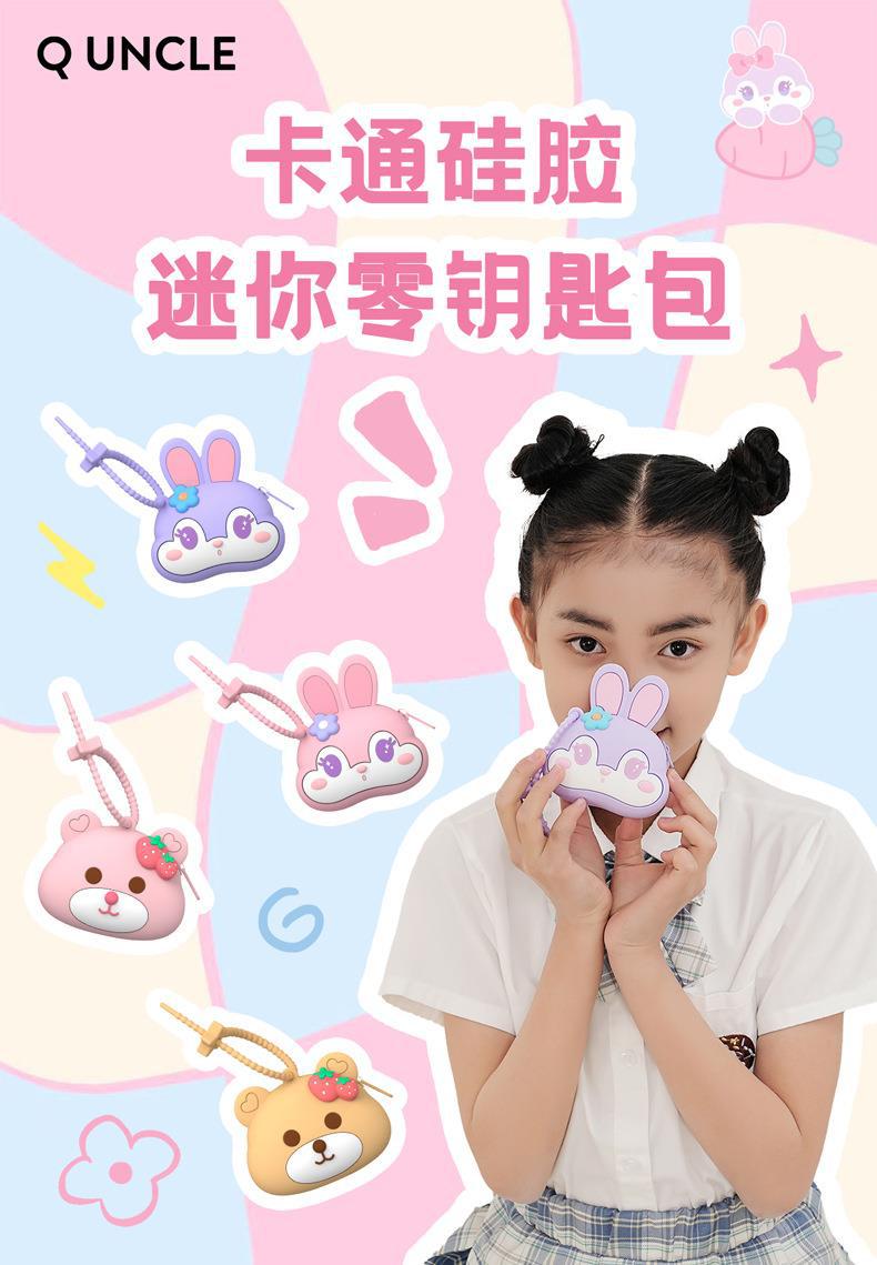 Q UNCLE 어린이 만화 미니 실리콘 가방 귀여운 토끼 동전 지갑 딸기 곰 이어폰 보관 가방스토어 가기