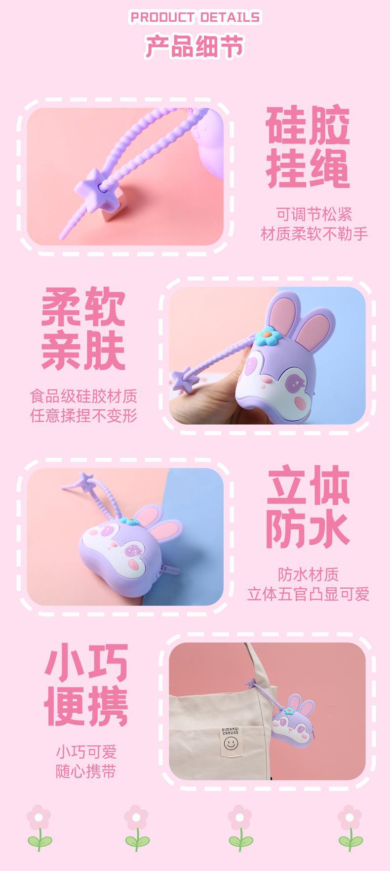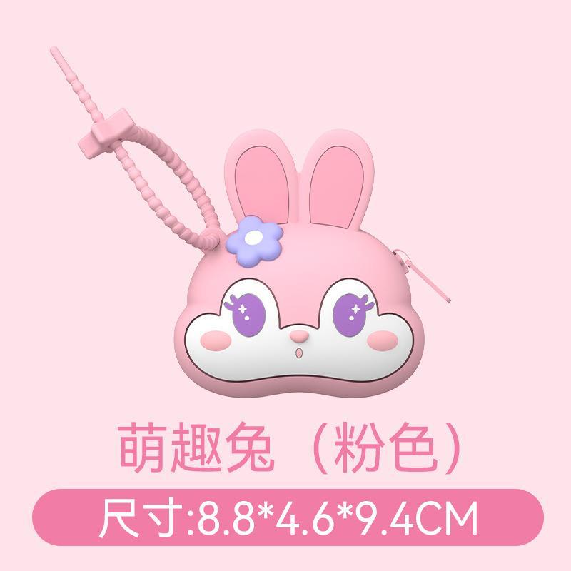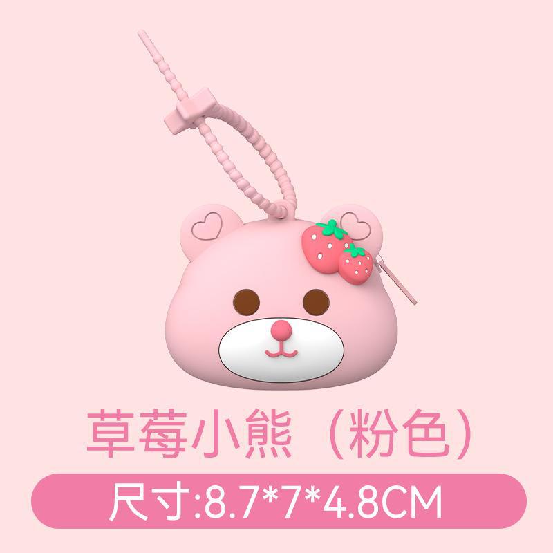 Q UNCLE 어린이 만화 미니 실리콘 가방 귀여운 토끼 동전 지갑 딸기 곰 이어폰 보관 가방