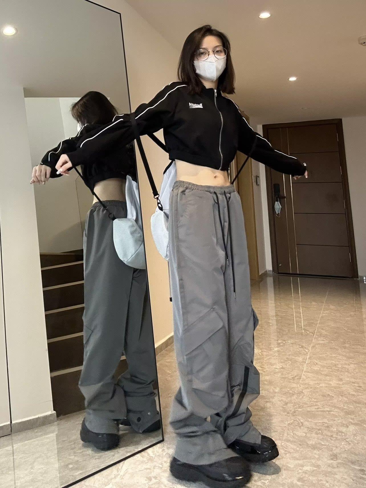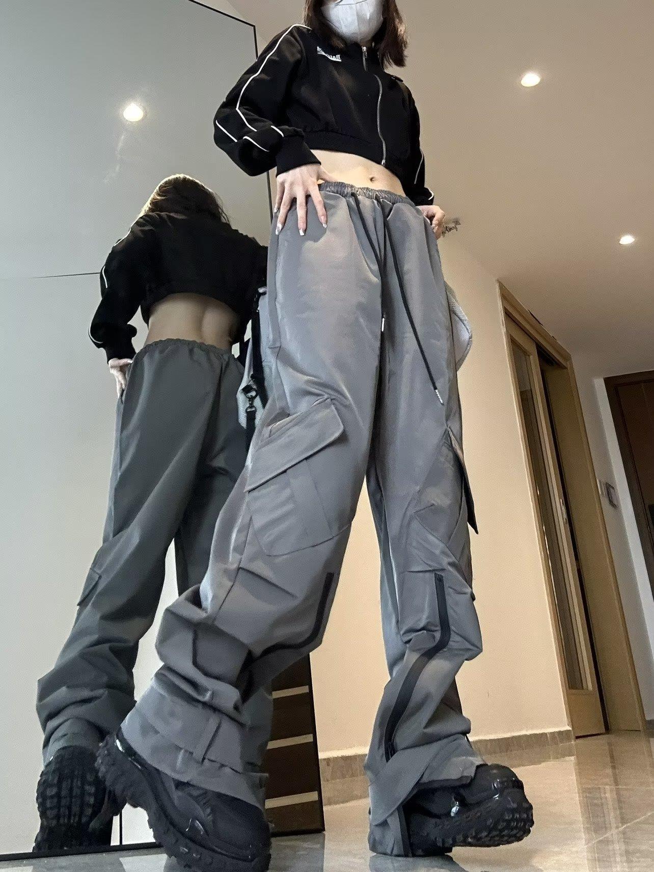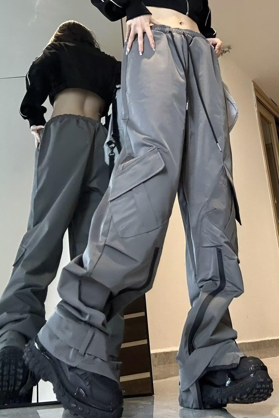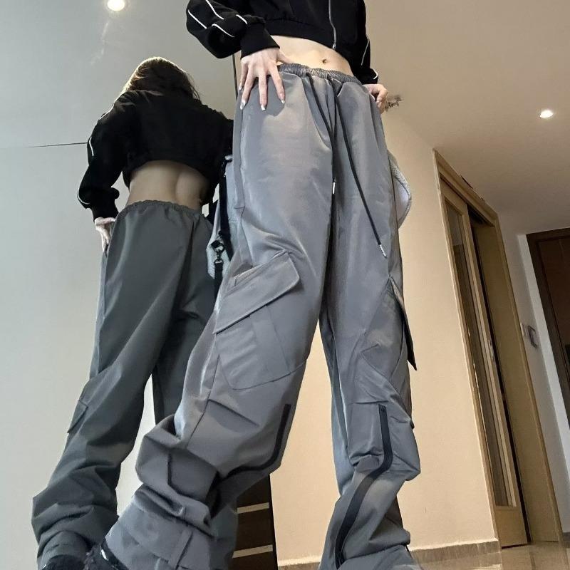 아메리칸 스타일 바이브 그레이 기능성 툴링 팬츠 여성용 아웃도어 방수 스트레이트 하이 스트리트 힙합 디자인 팬츠스토어 가기