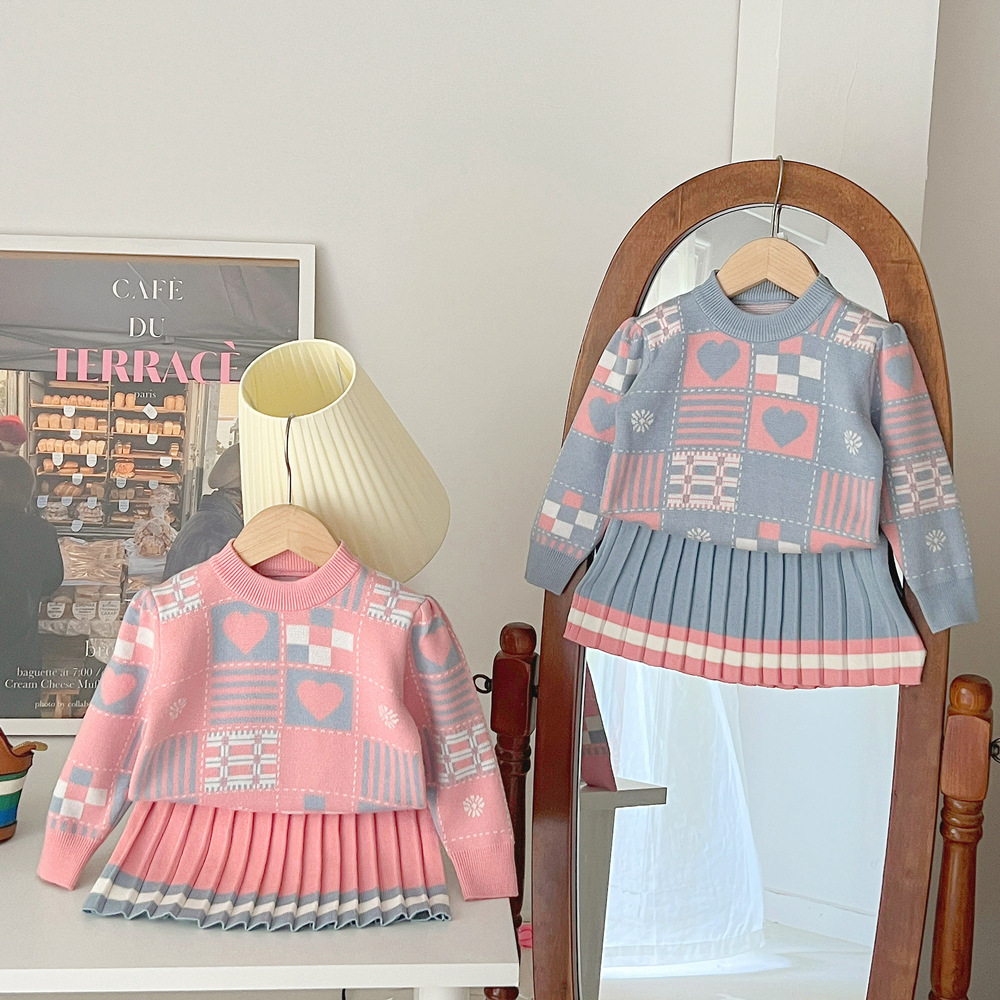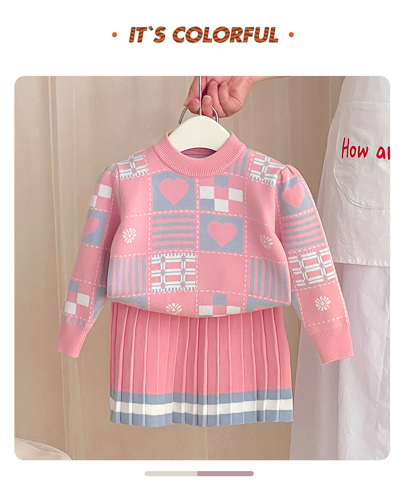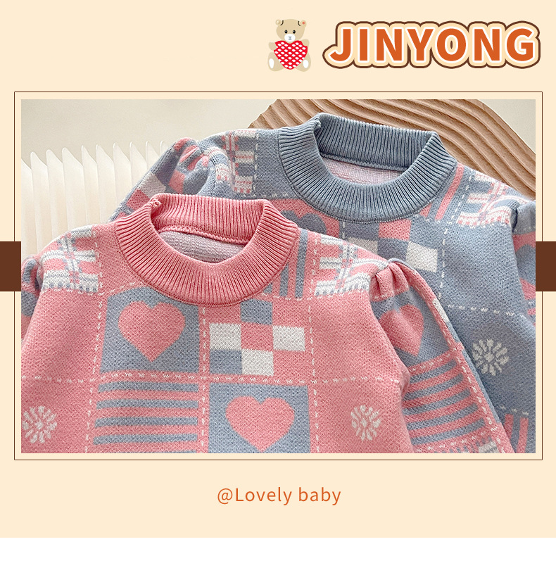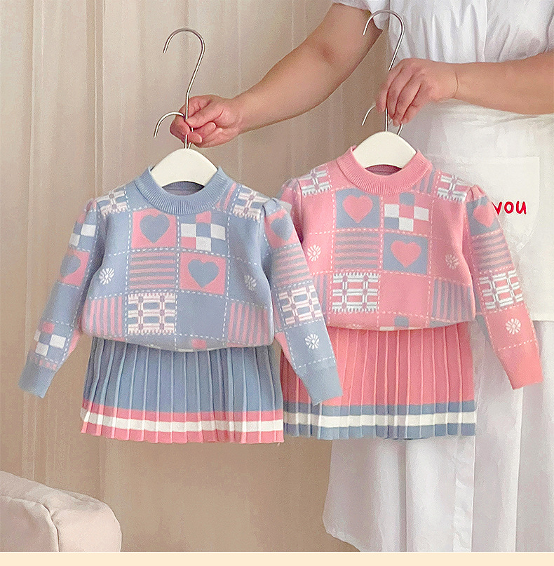 JINYONG 아기 소녀 스웨터 원피스 어린이의 새로운 니트 투피스 귀여운 기하학 스웨터 원피스 대외 무역