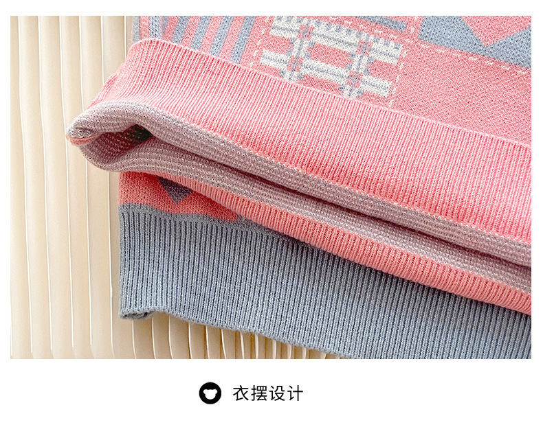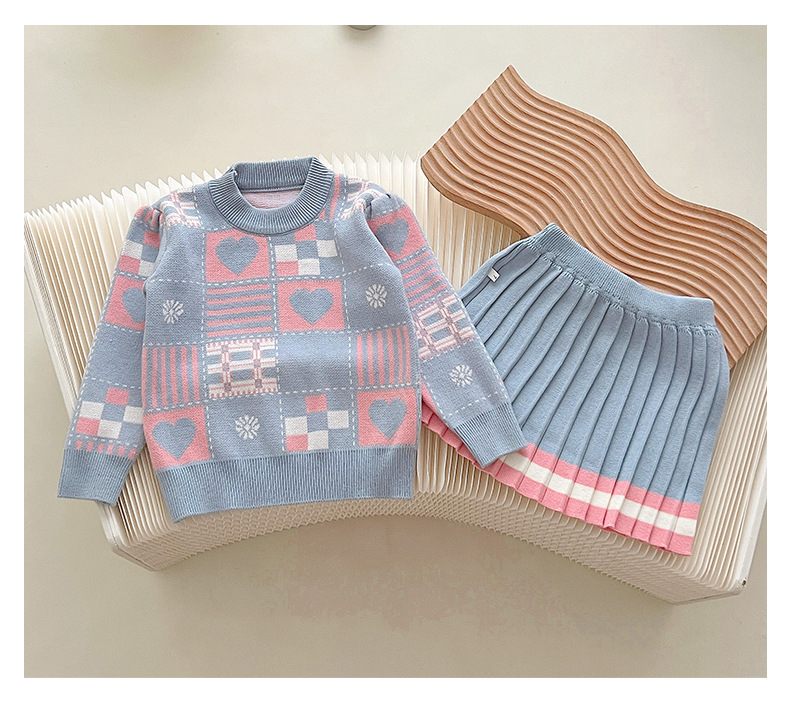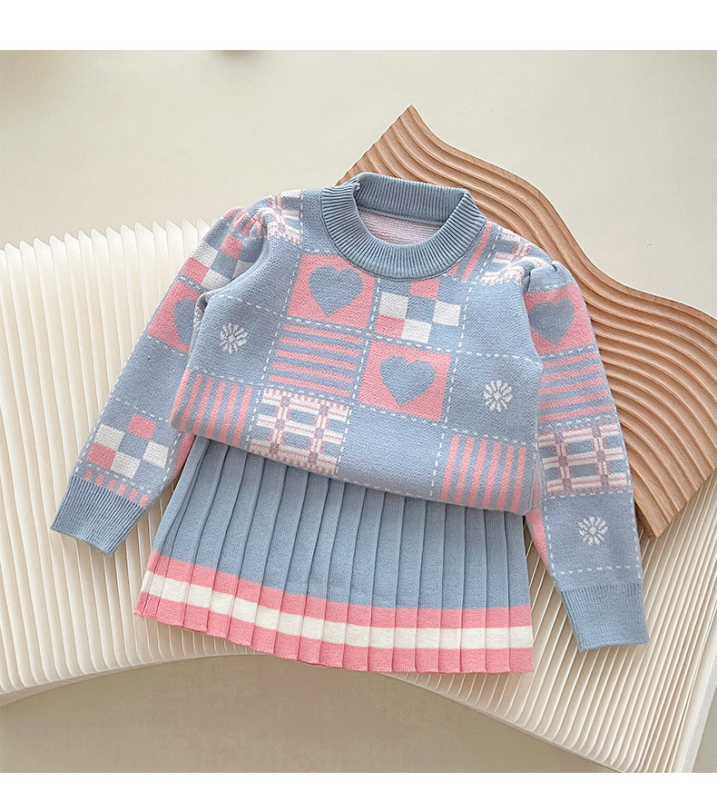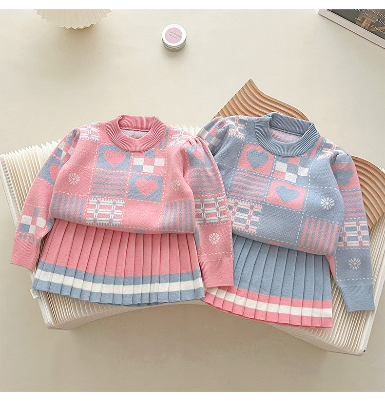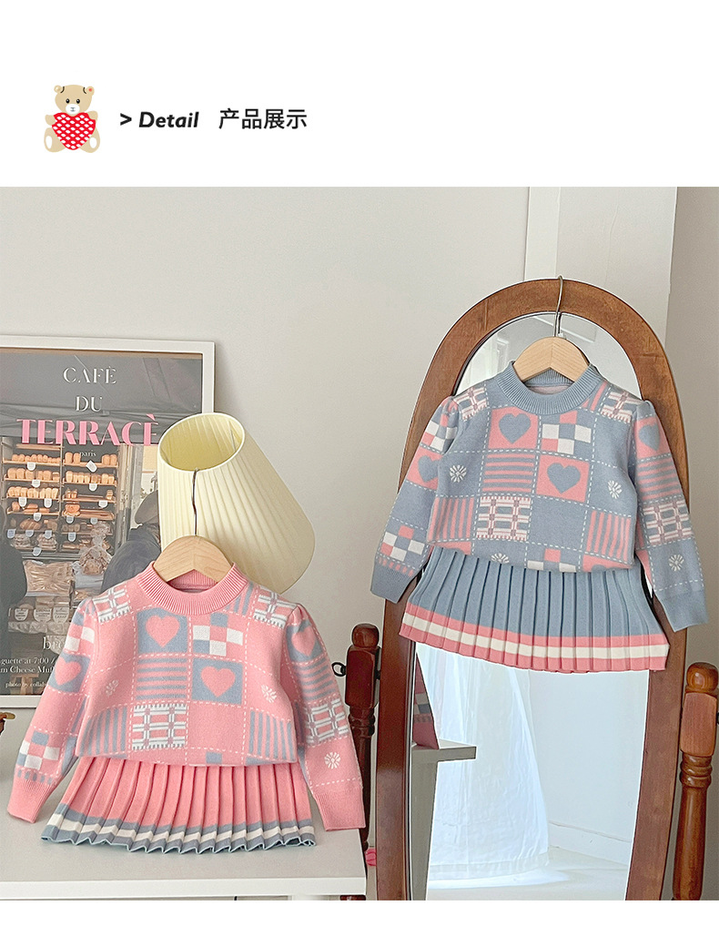 JINYONG 아기 소녀 스웨터 원피스 어린이의 새로운 니트 투피스 귀여운 기하학 스웨터 원피스 대외 무역스토어 가기