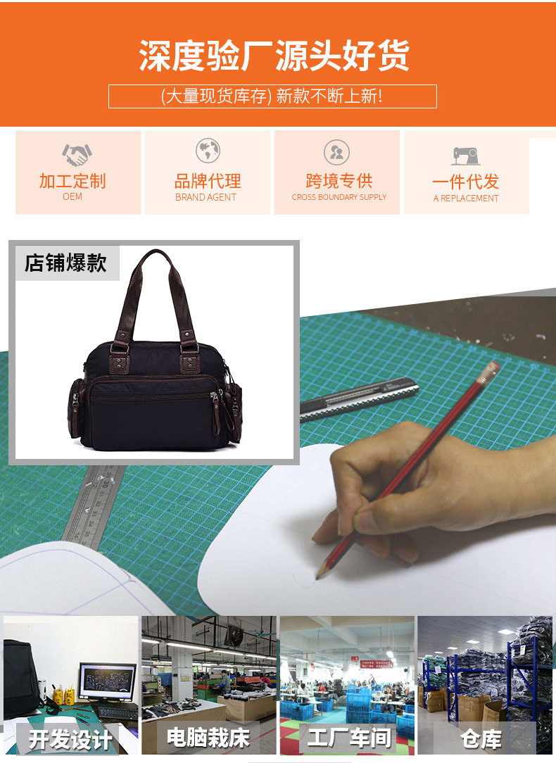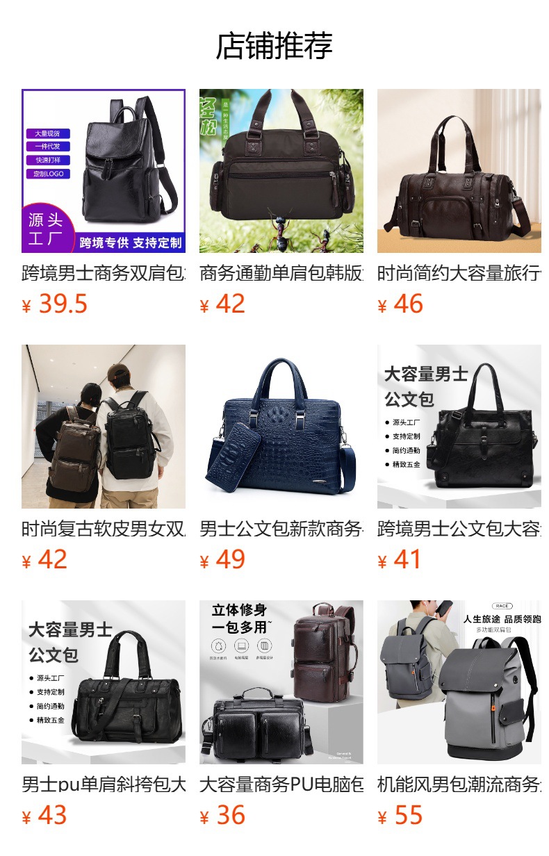 本公司是一家生产型企业拥有自己的独立厂房,主营产品:公文包、电脑包、双肩包、斜挎包等产品。