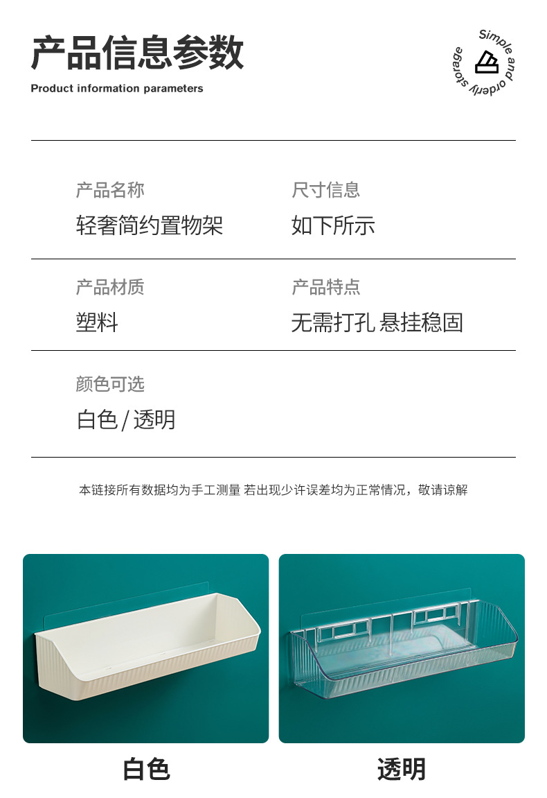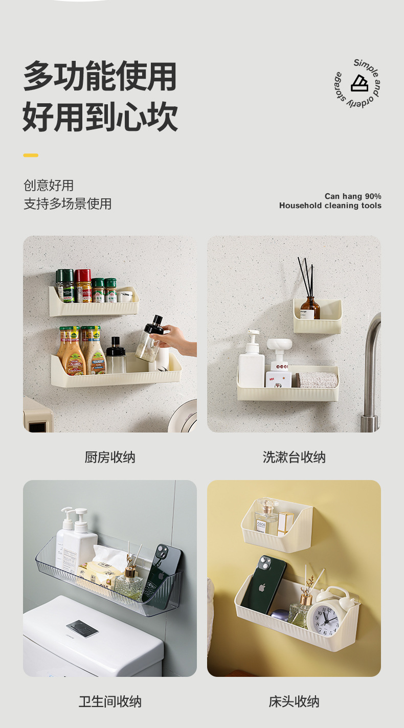 펀치 없는 욕실 수납 랙 욕실 세면도구 보관함 주방 침실 벽걸이 형 수납 선반