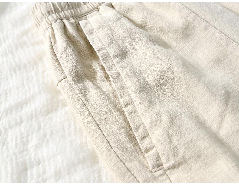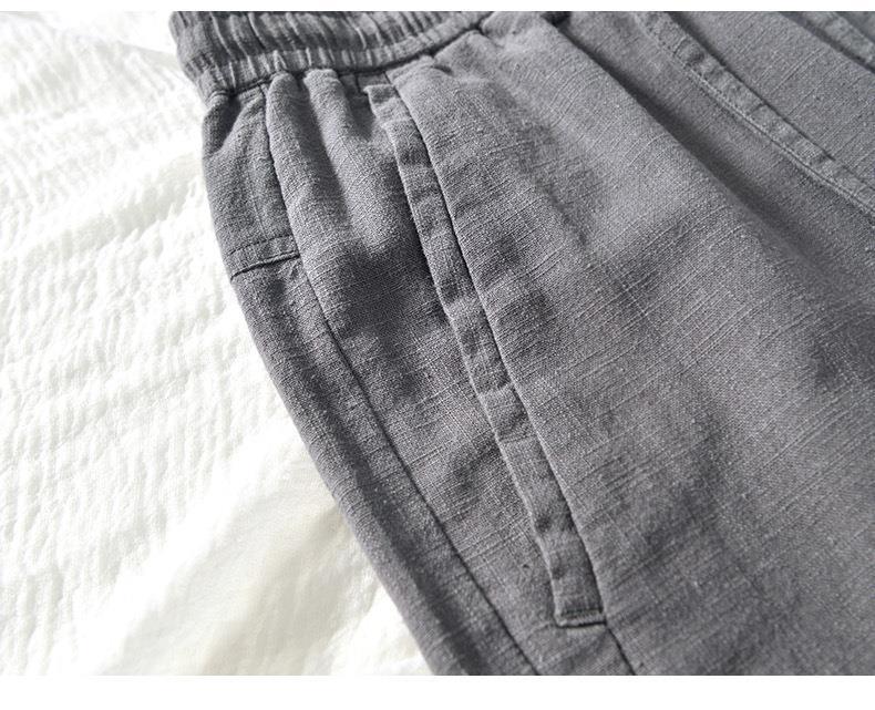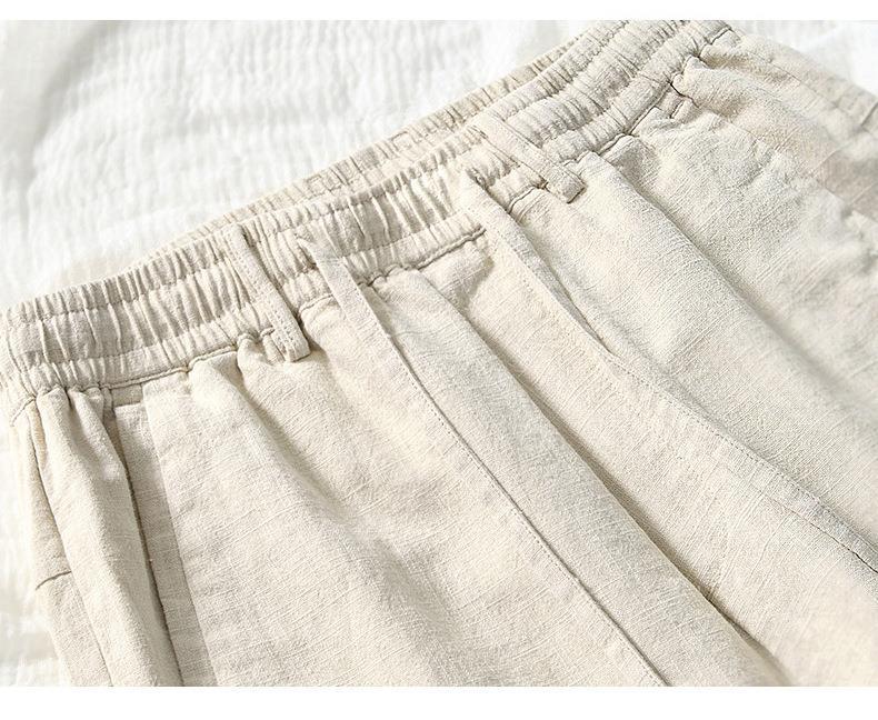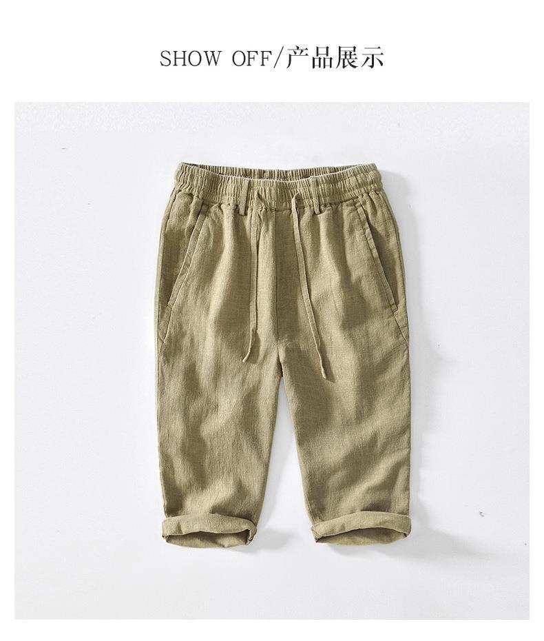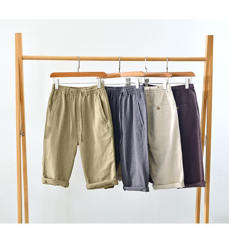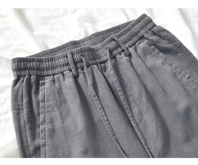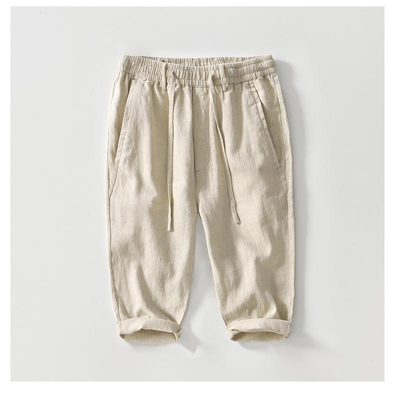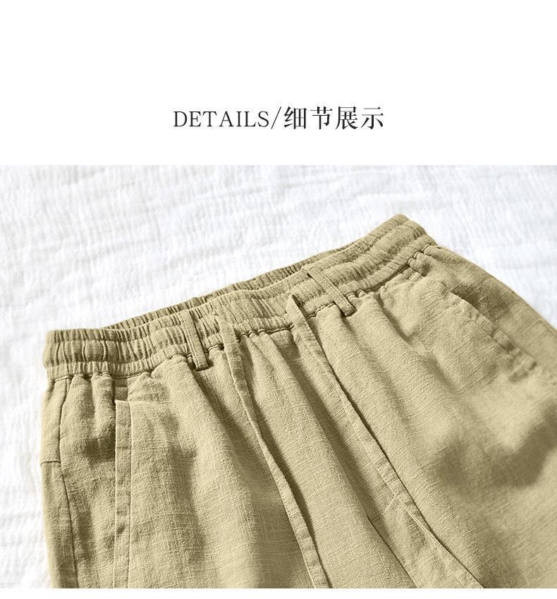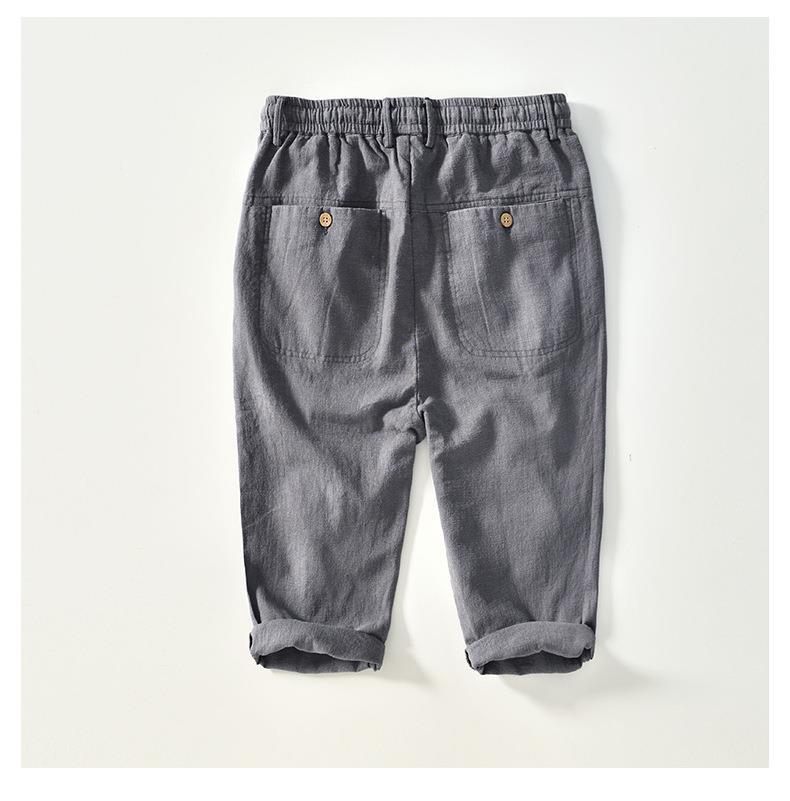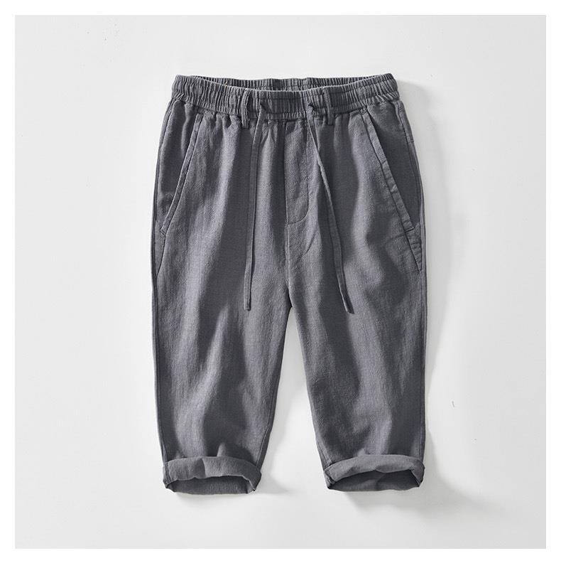 L8238 탄성 허리 스트레이트 튜브 면 및 린넨 캐주얼 바지 조커 느슨한 솔리드 컬러 크롭 팬츠 남성용 헤어 세대스토어 가기