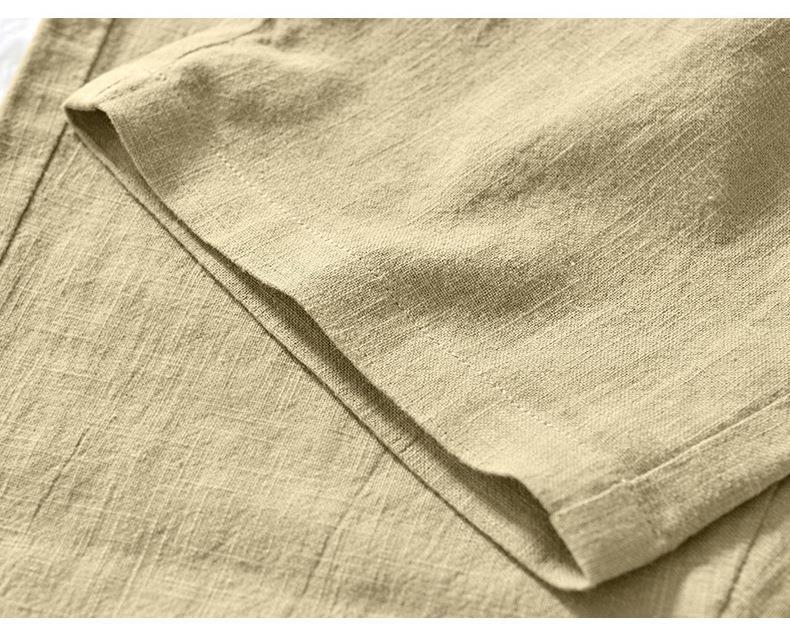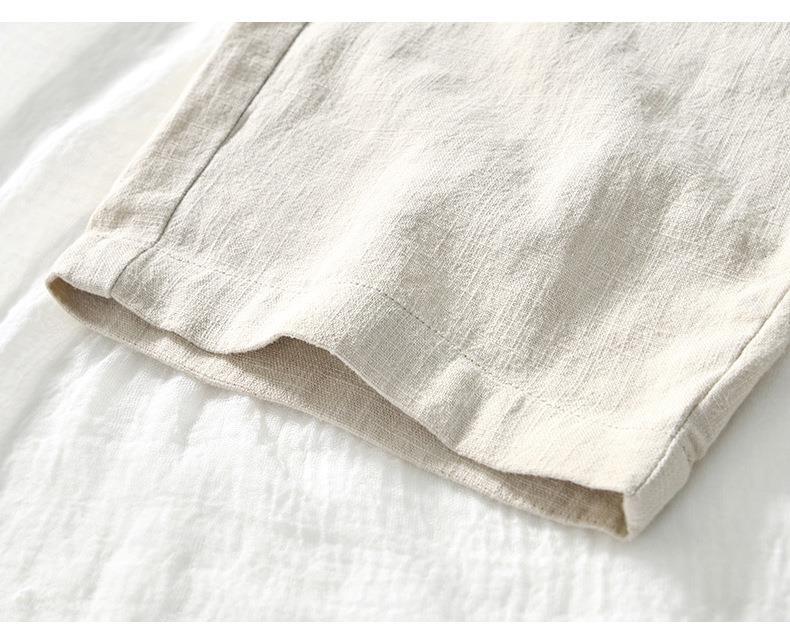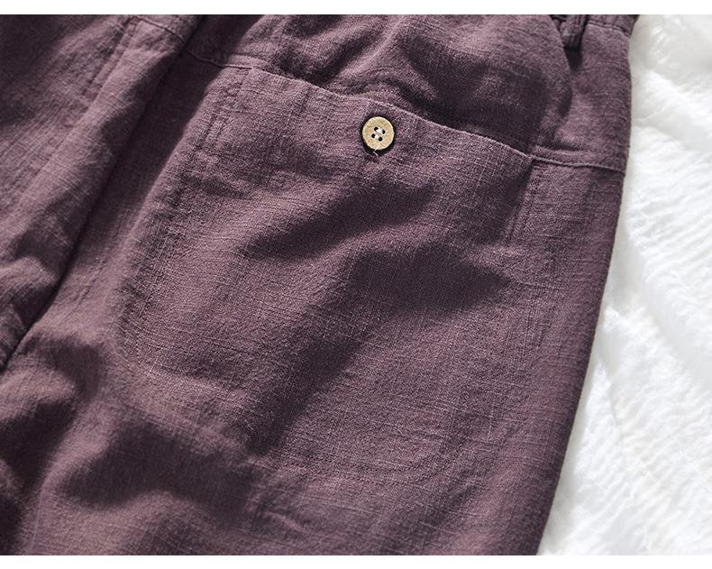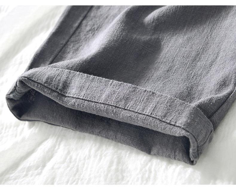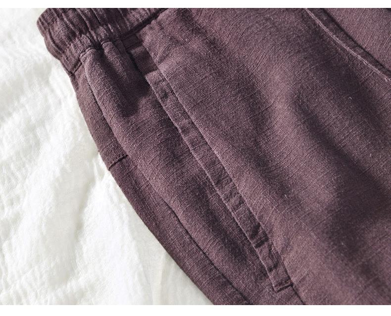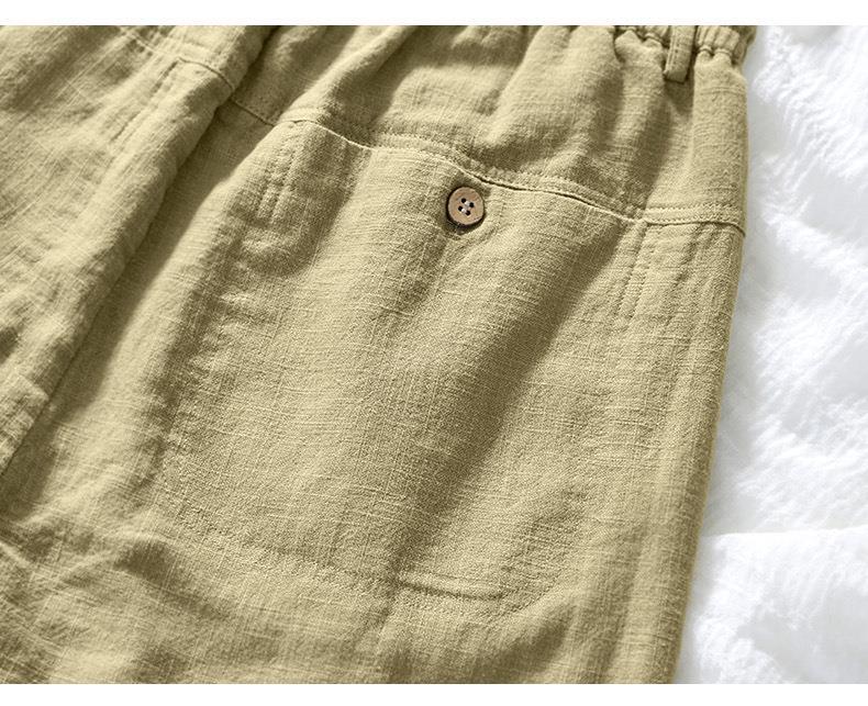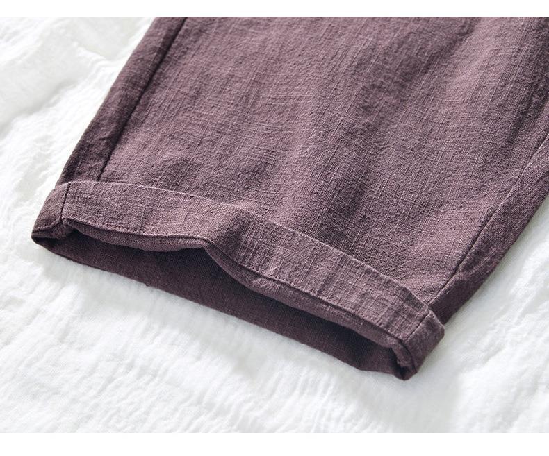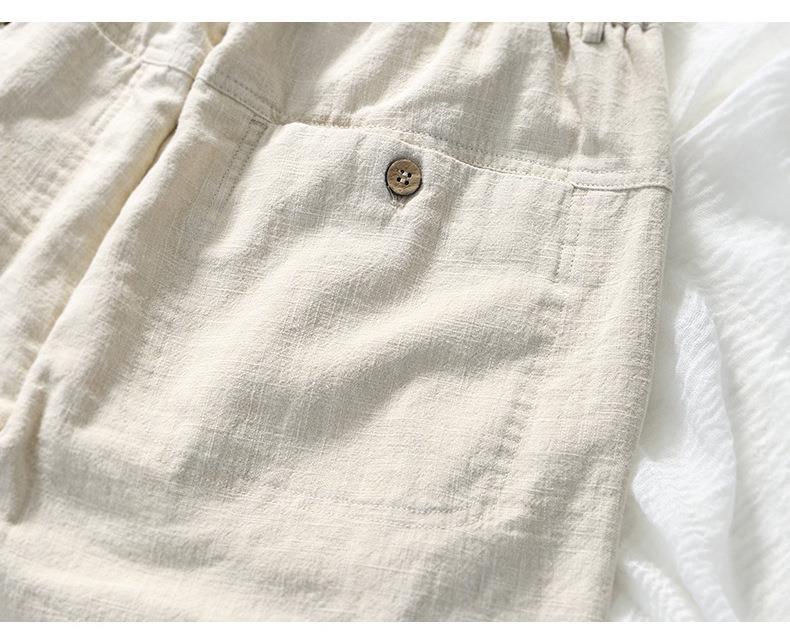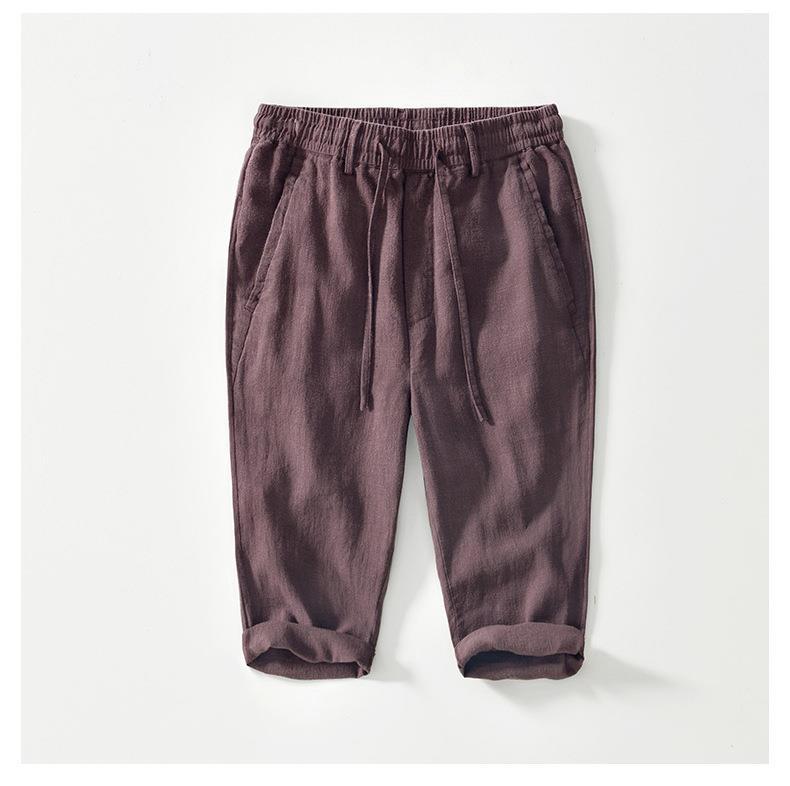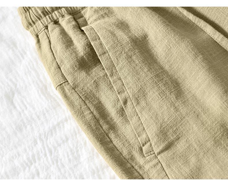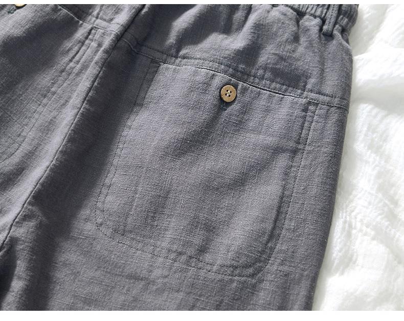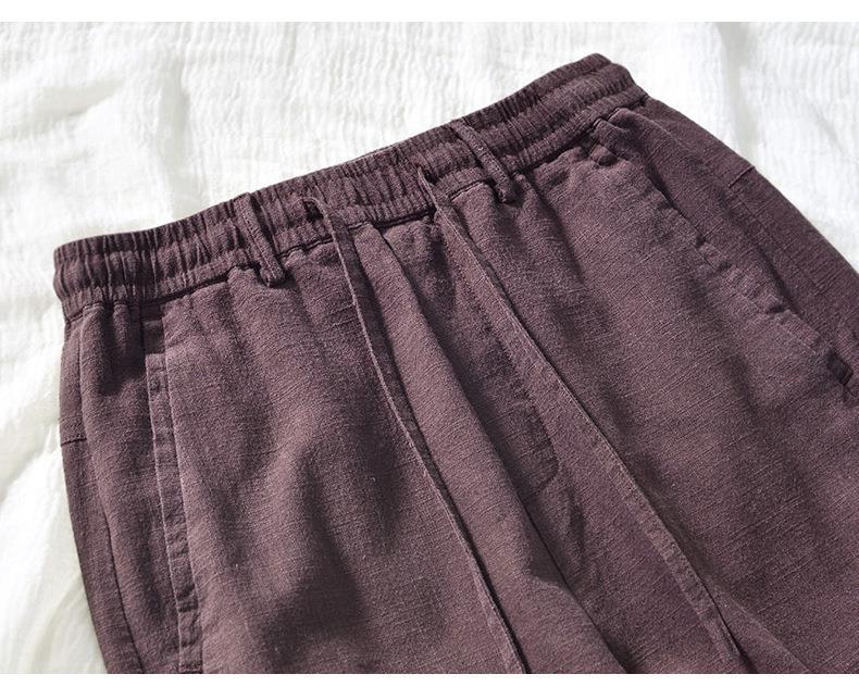 L8238 탄성 허리 스트레이트 튜브 면 및 린넨 캐주얼 바지 조커 느슨한 솔리드 컬러 크롭 팬츠 남성용 헤어 세대스토어 가기