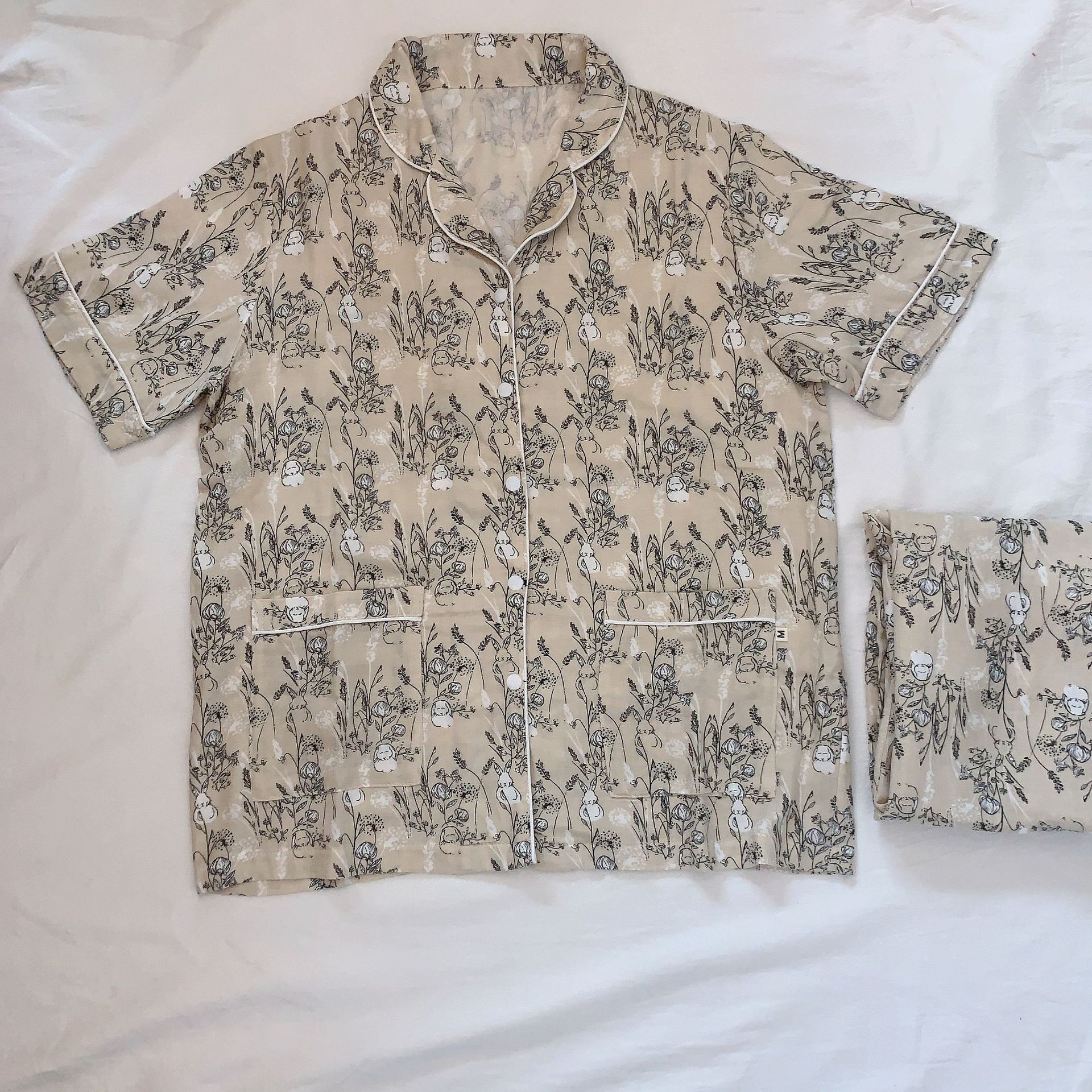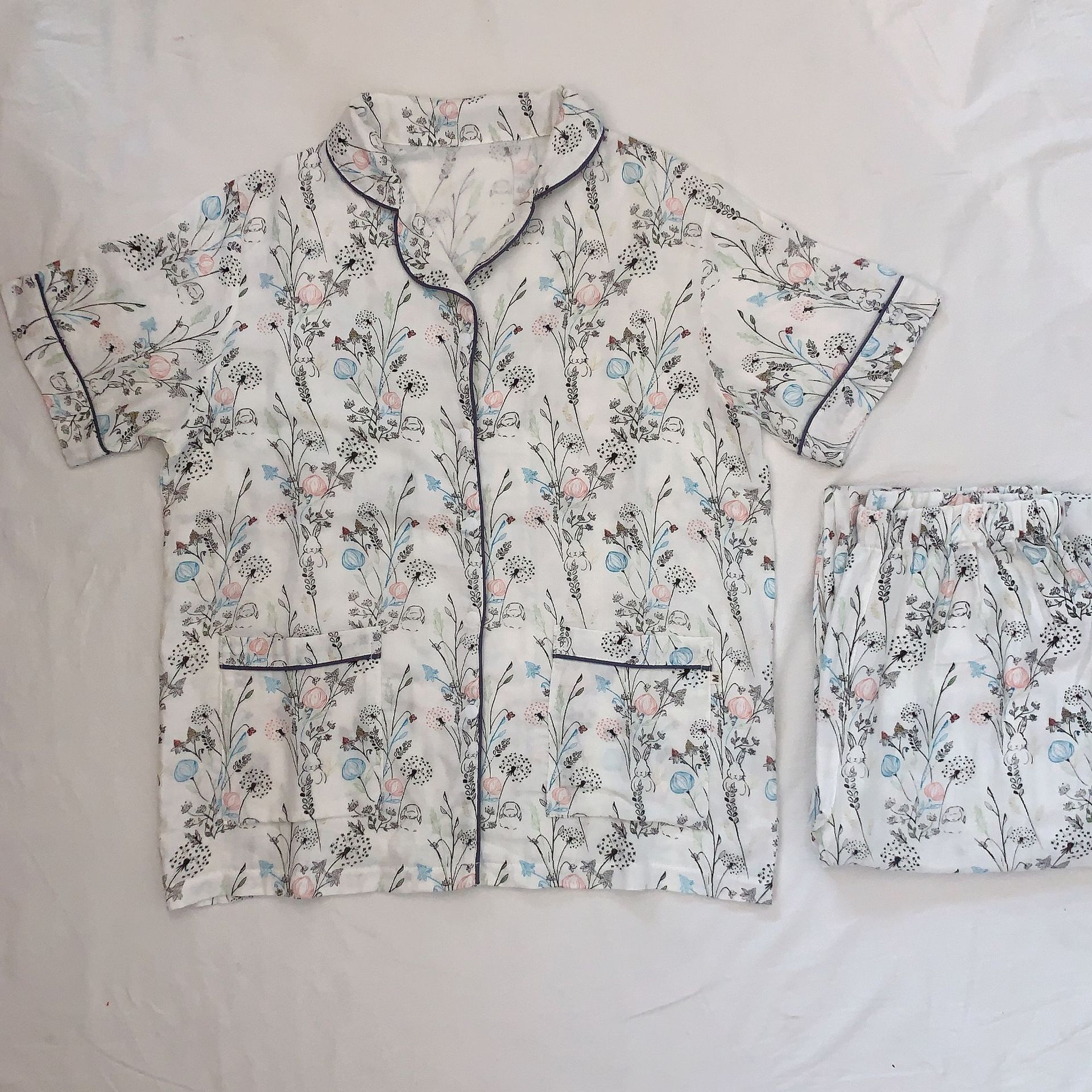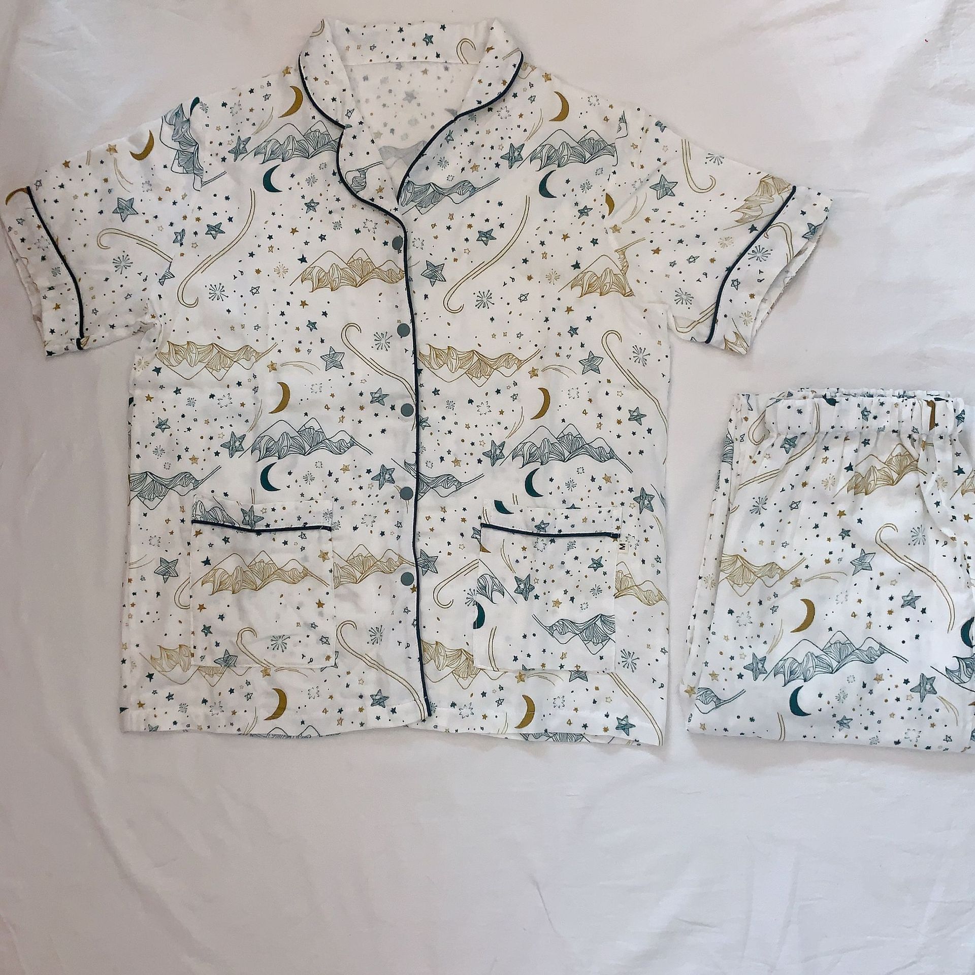 벤벤무 여름 2 층 반팔 바지 대나무 면 여성용 잠옷 둥지 같은 스타일 편안한 성인 홈 의류 세트