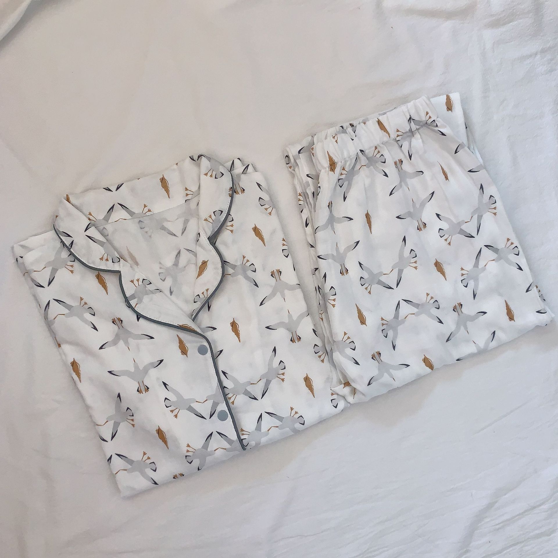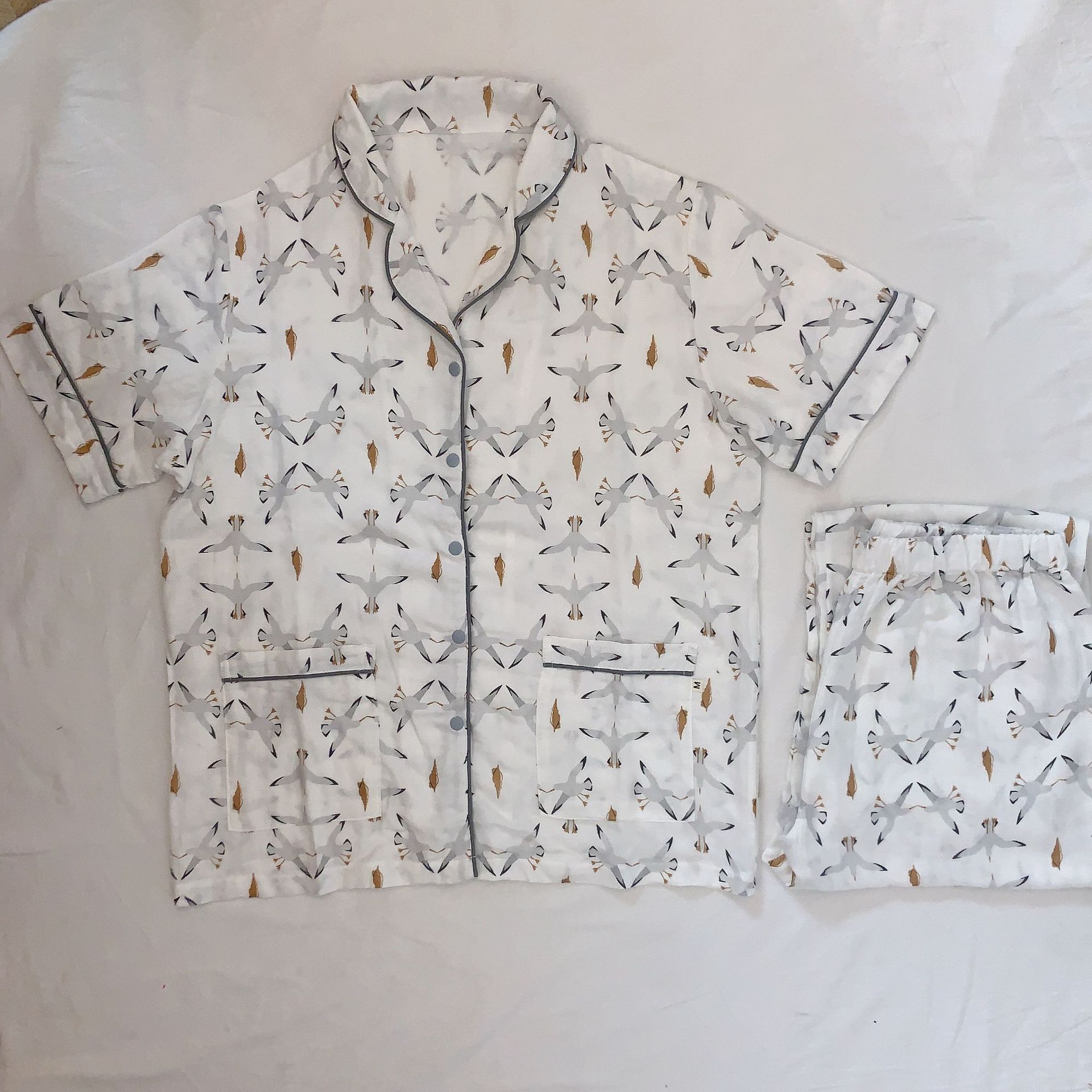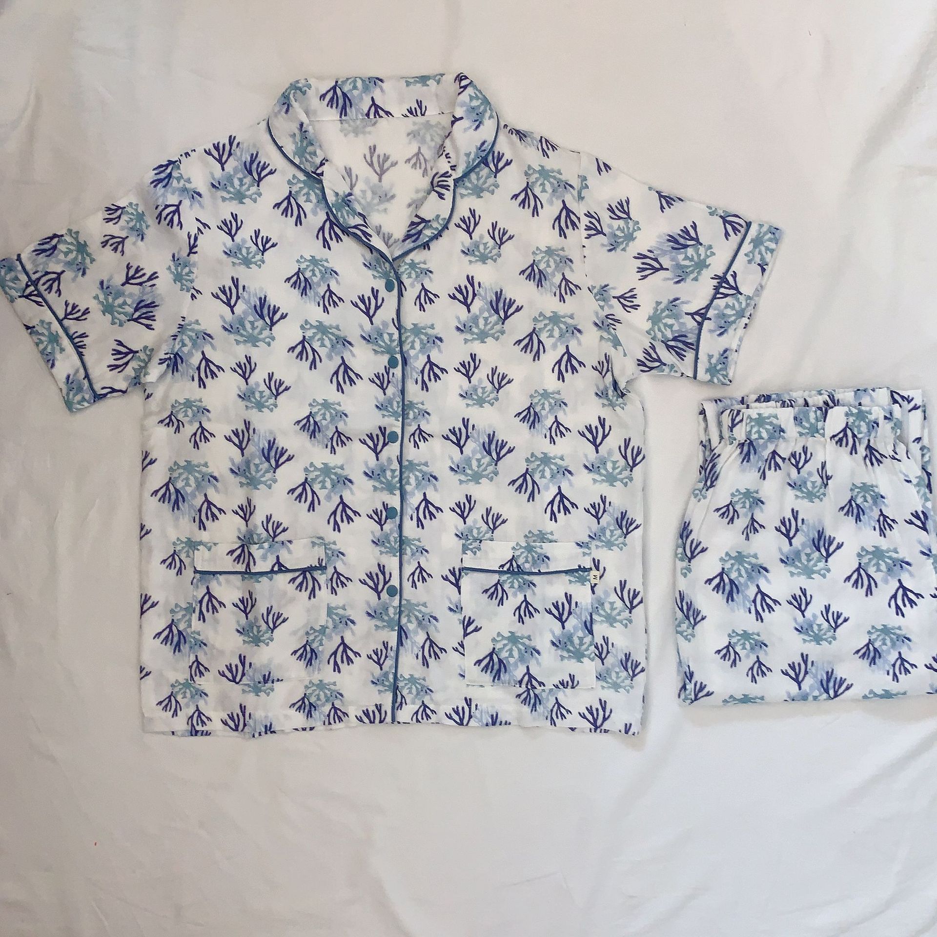 벤벤무 여름 2 층 반팔 바지 대나무 면 여성용 잠옷 둥지 같은 스타일 편안한 성인 홈 의류 세트