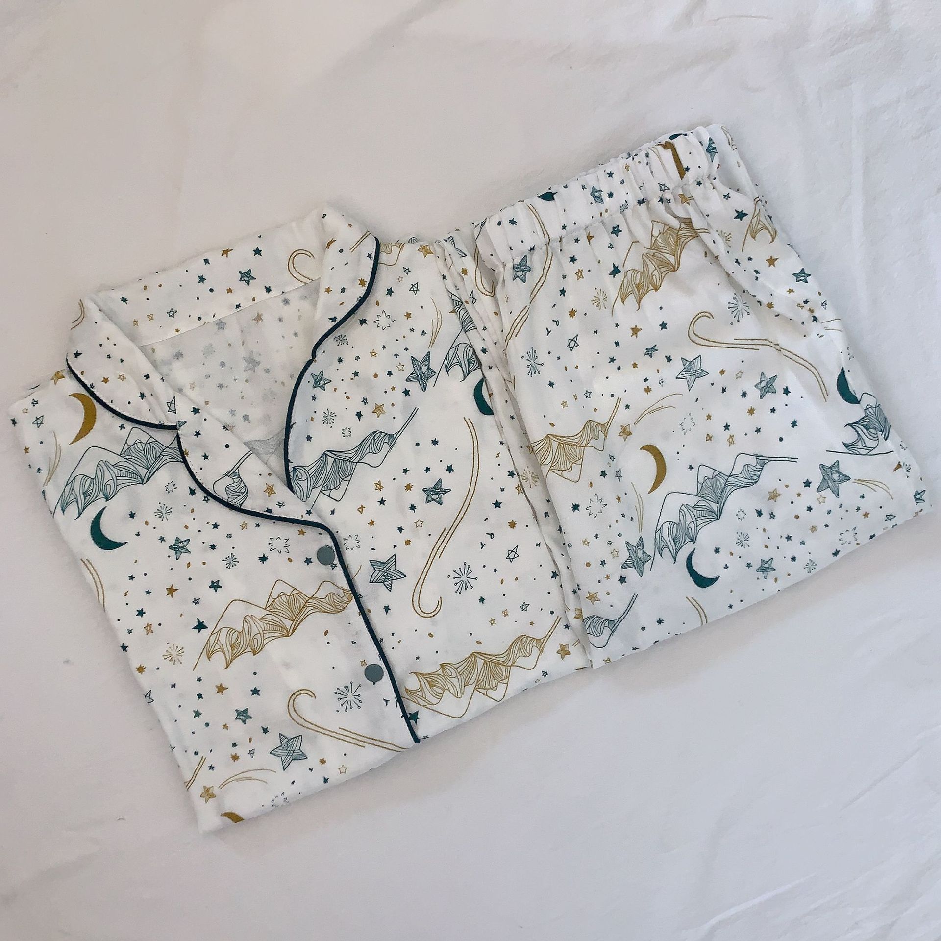 벤벤무 여름 2 층 반팔 바지 대나무 면 여성용 잠옷 둥지 같은 스타일 편안한 성인 홈 의류 세트스토어 가기