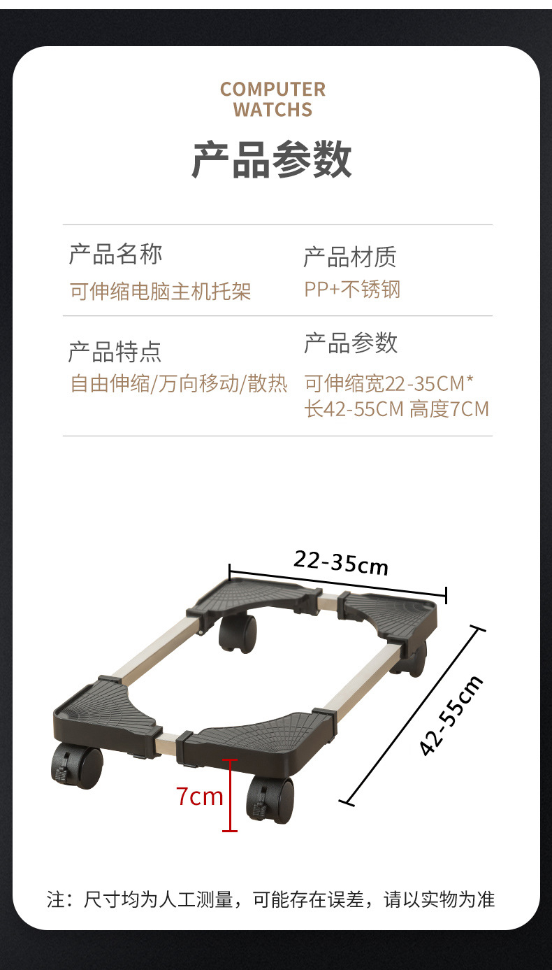 컴퓨터 호스트 모바일 브래킷 크기 조정 가능한 범용 높이베이스 데스크탑 섀시 브래킷 범용 휠 도매