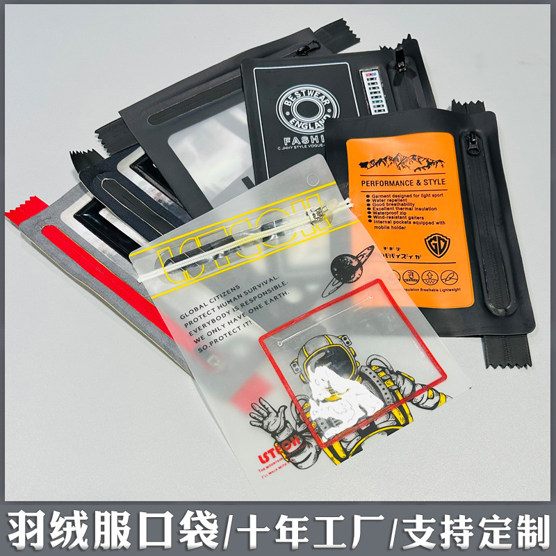 다운 재킷 포켓 온도계 10 년 공장 TPU 지퍼 백 깃털 충전 표준 의류 내 휴대 전화 가방