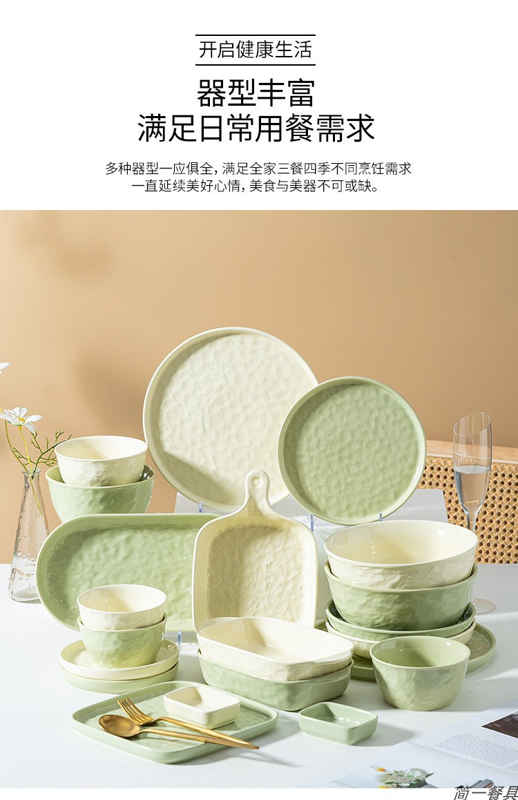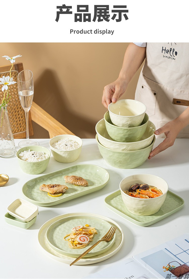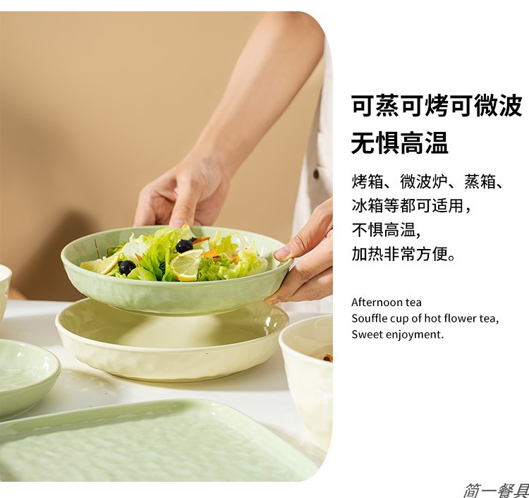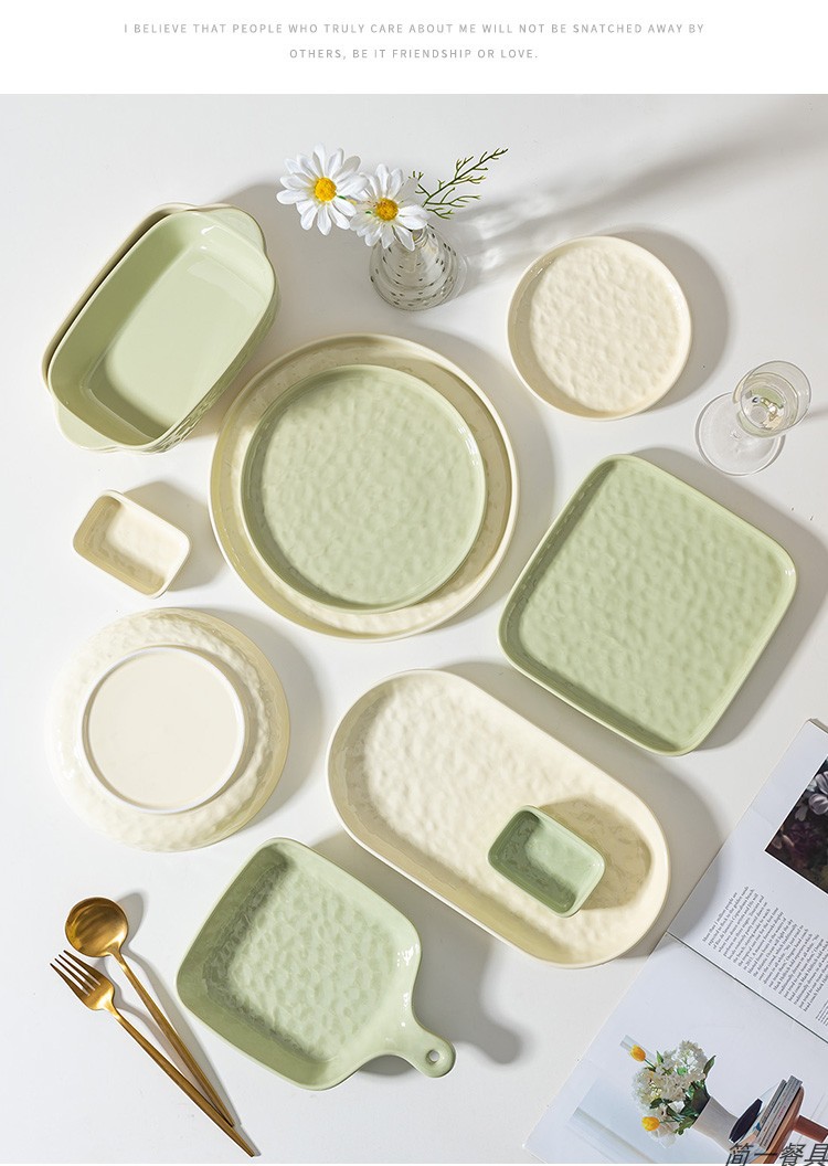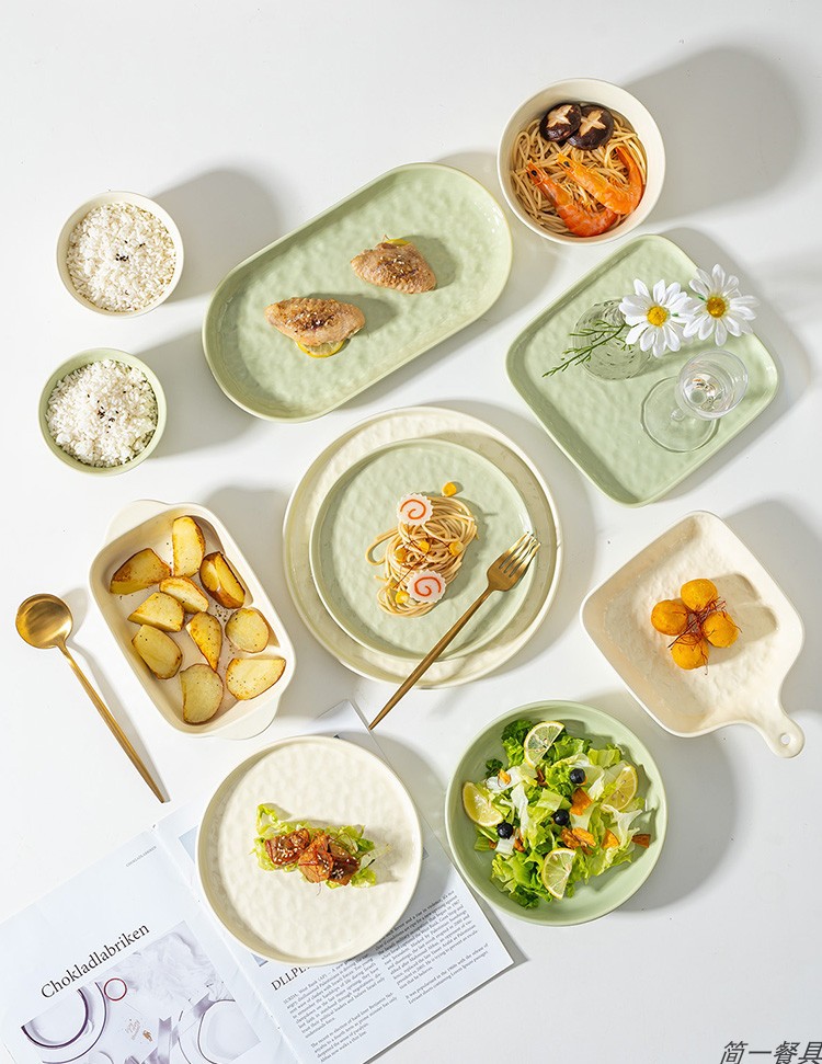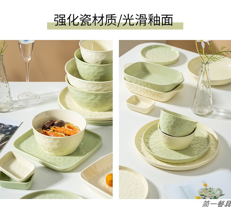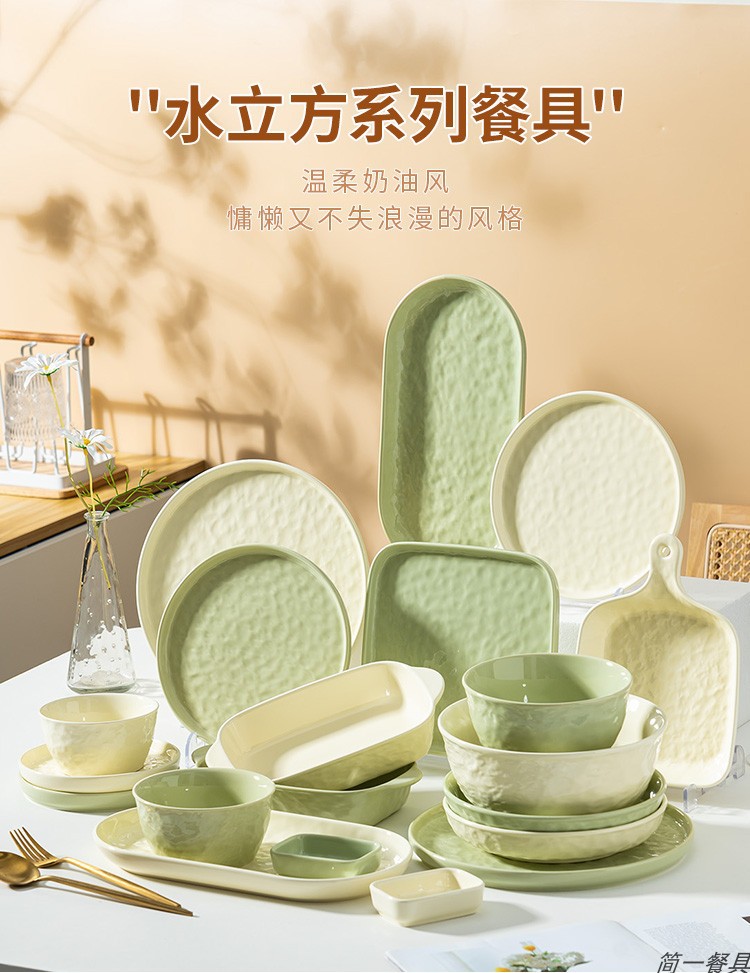 크림 스타일 세라믹 식기 세트 높은 색상 가치 요리 간단한 가정용 밥 그릇 접시 수프 그릇 국수 그릇 베이킹 그릇