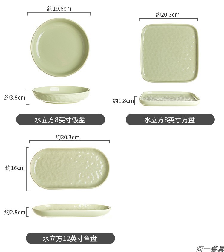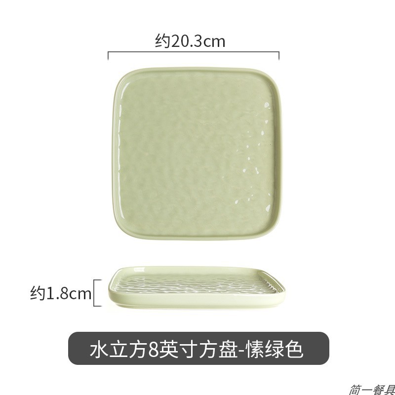 • 8 인치 사각 접시-크림 그린