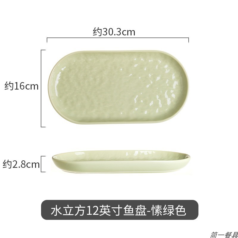 • 12 인치 생선 접시-크림 그린