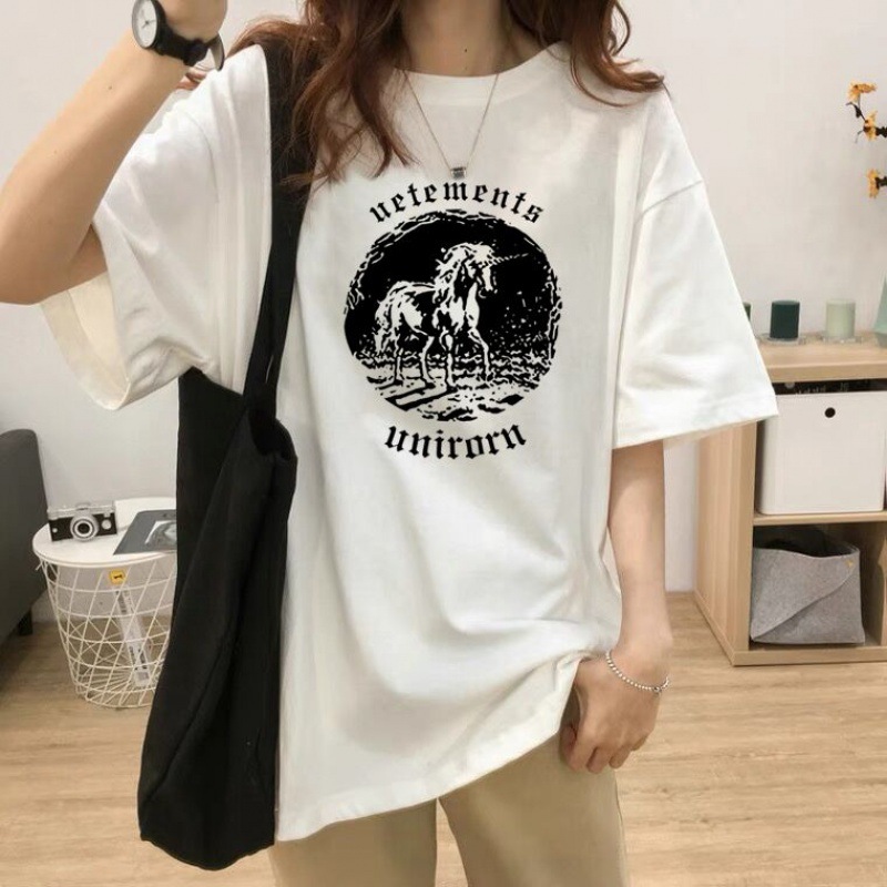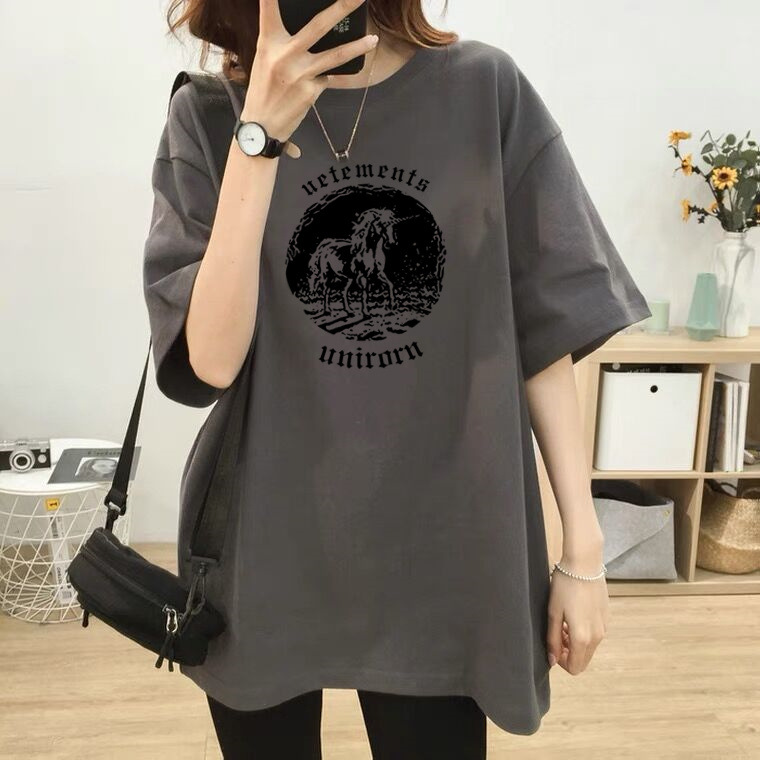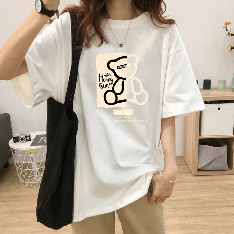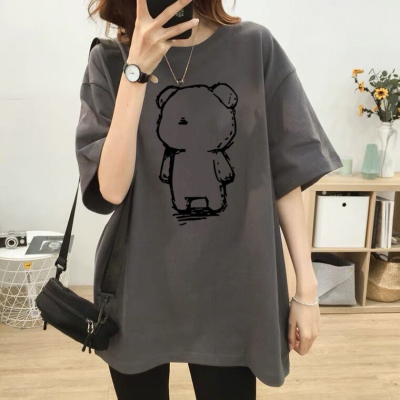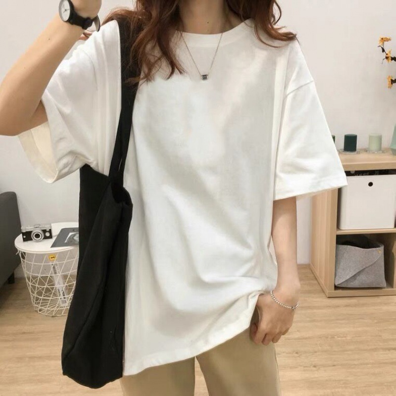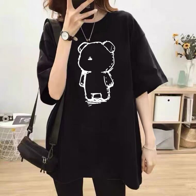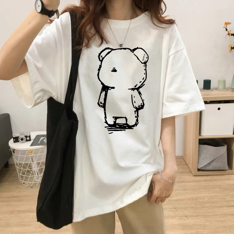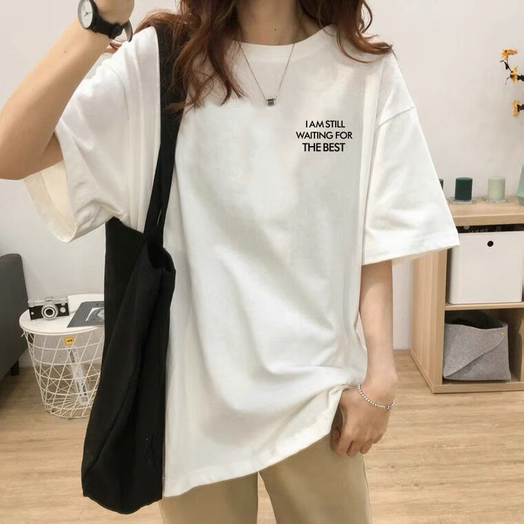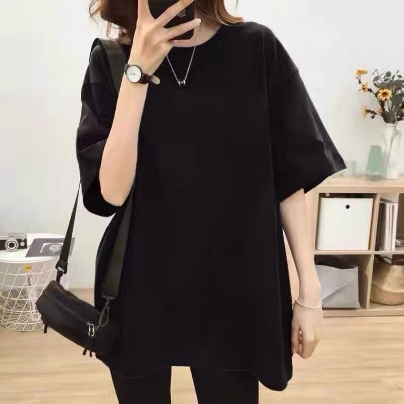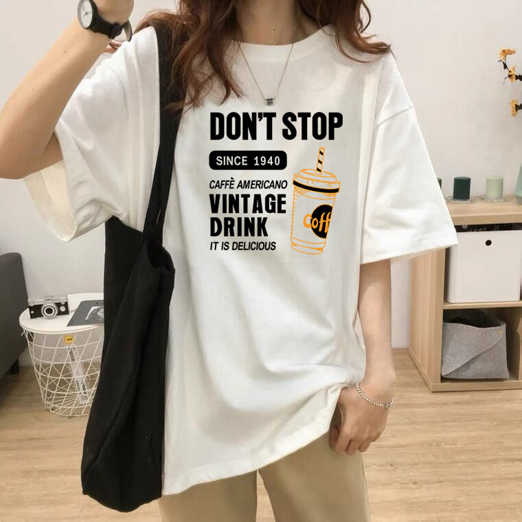 새로운 한국식 인 코튼 티셔츠 여성용 반팔 올매치 에이지 리듀싱 탑 루즈한 슬리밍 여름 패셔너블한 숄더 반소매스토어 가기