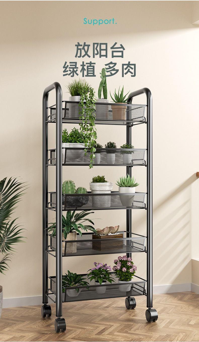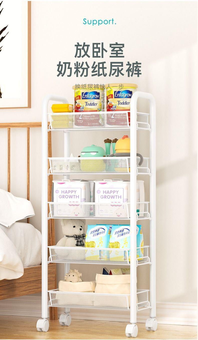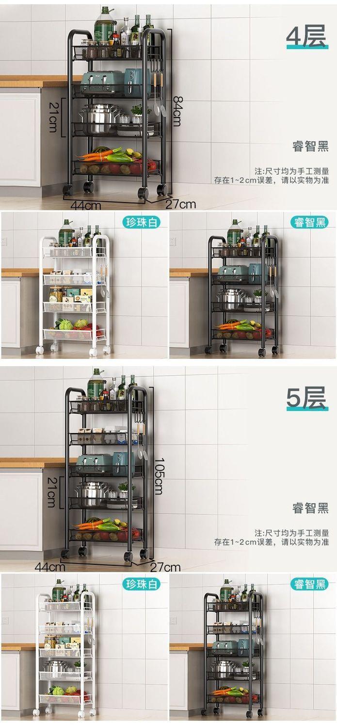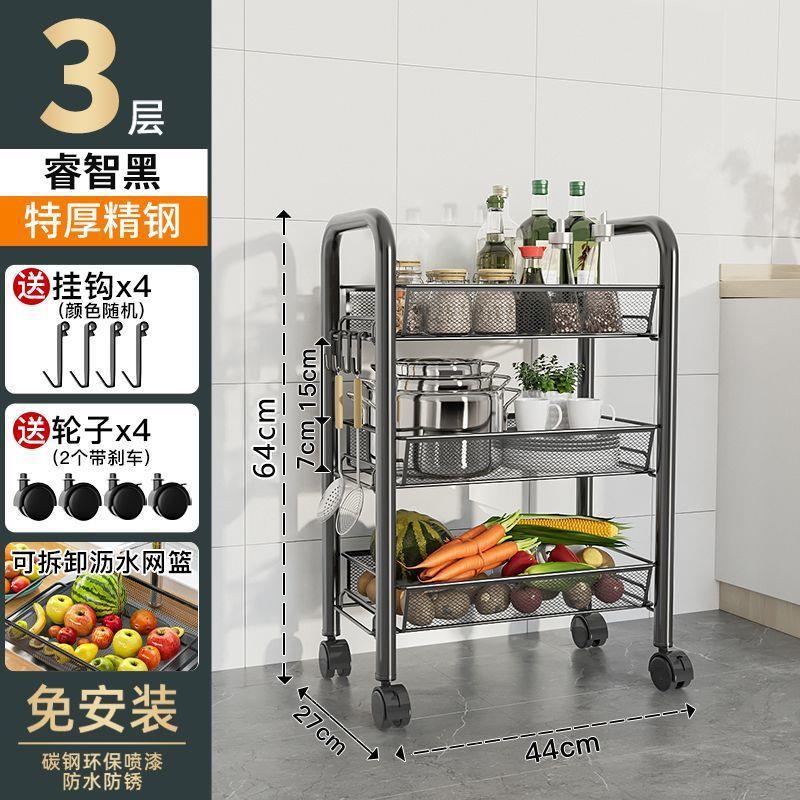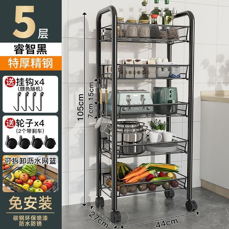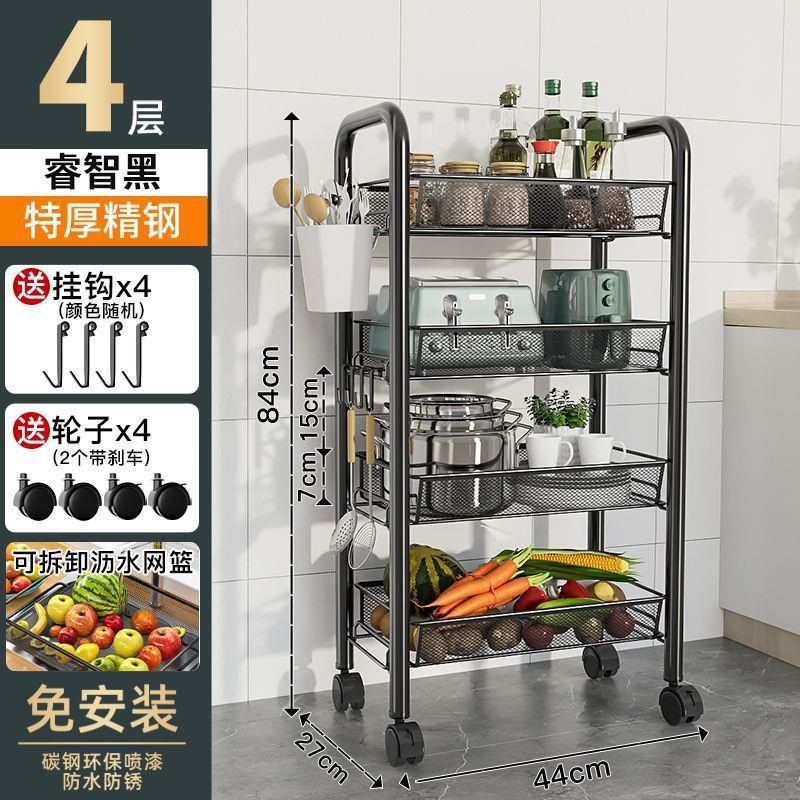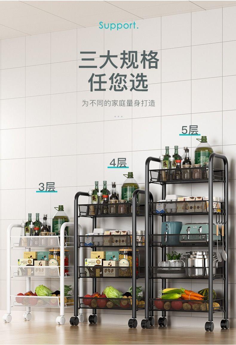 주방 수납 랙 바닥 다층 가정용 전자 레인지 선반 야채 보관 랙 바퀴가있는 오븐 랙 보관 랙